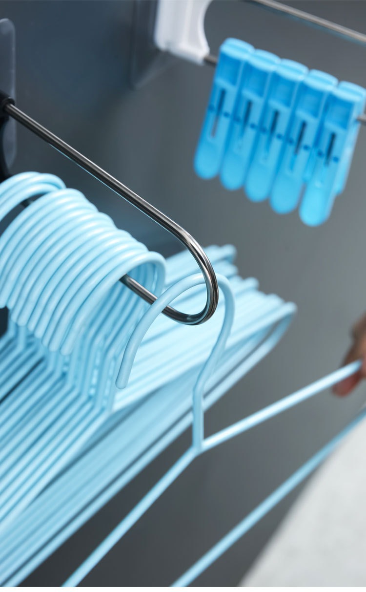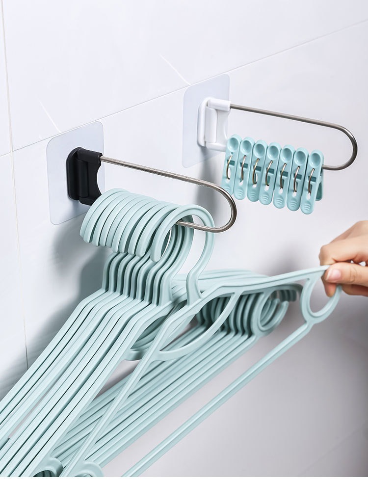 맞춤형 벽걸이형 수납 옷걸이 스테인리스 무자국 정리대 무타공 접이식 선반 도매