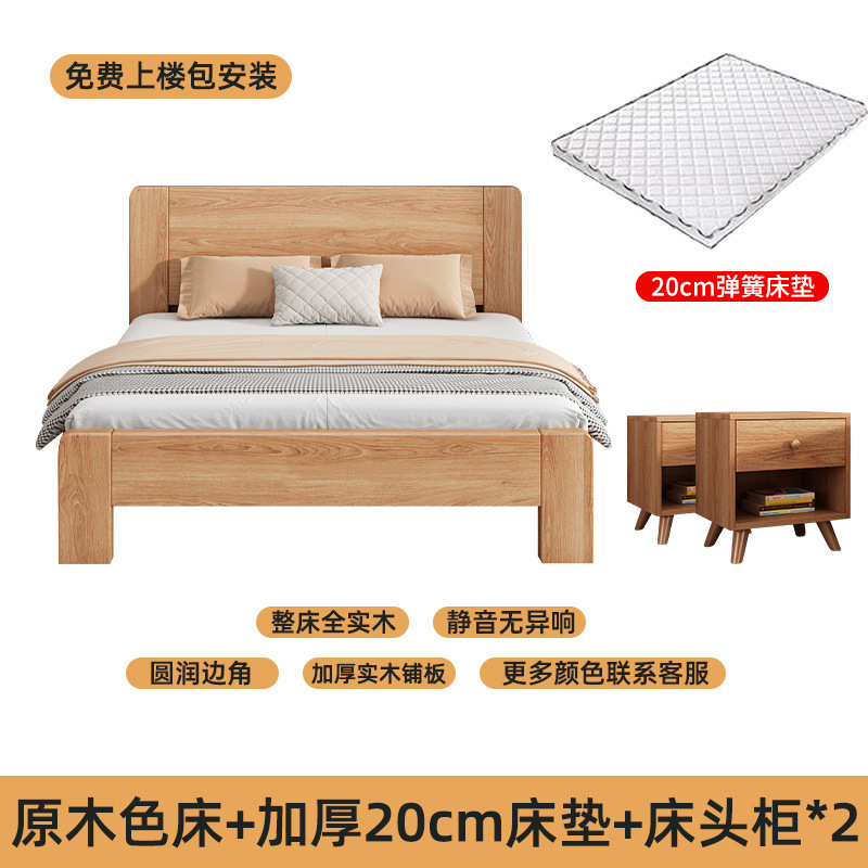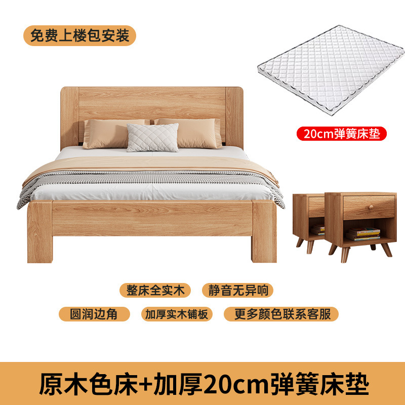 • 모델 A 원목 원목 침대 + 침대 옆 탁자 2개 + 20CM 스프링 매트리스 [위층 패키지 설치].