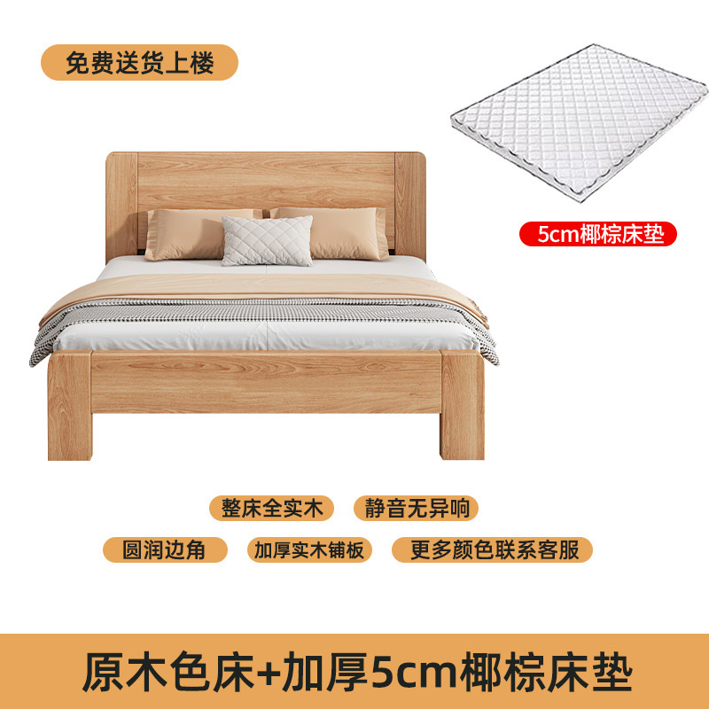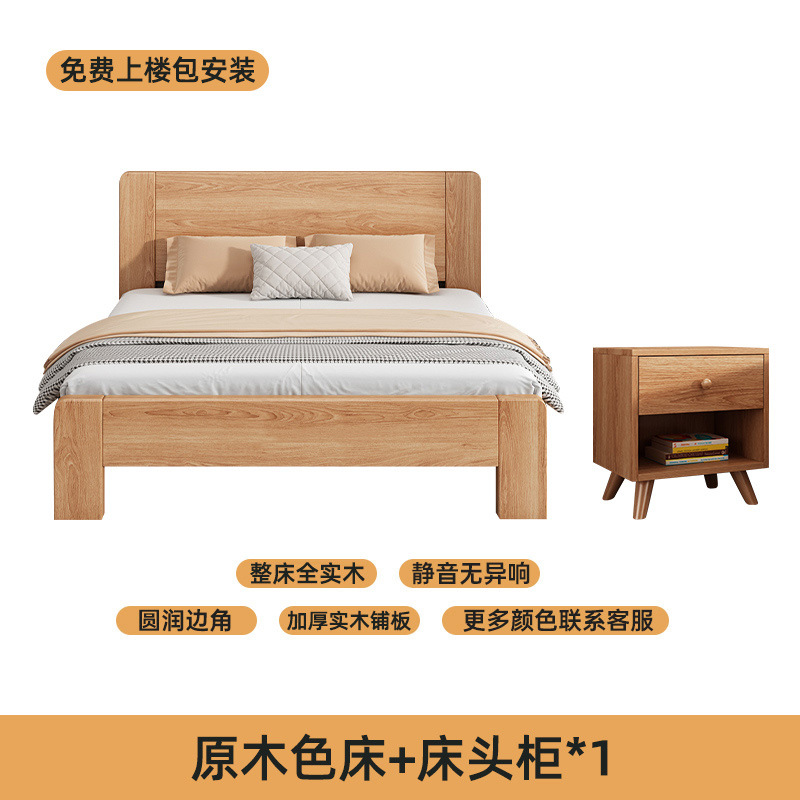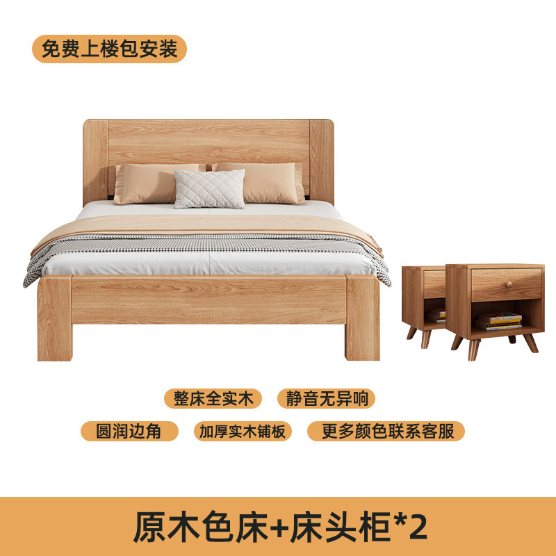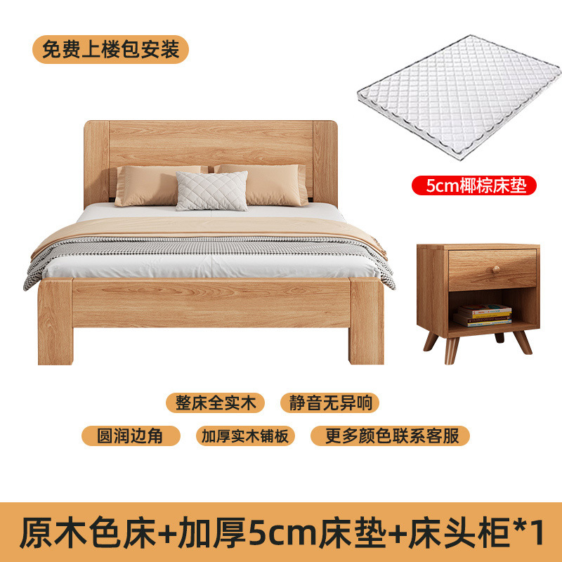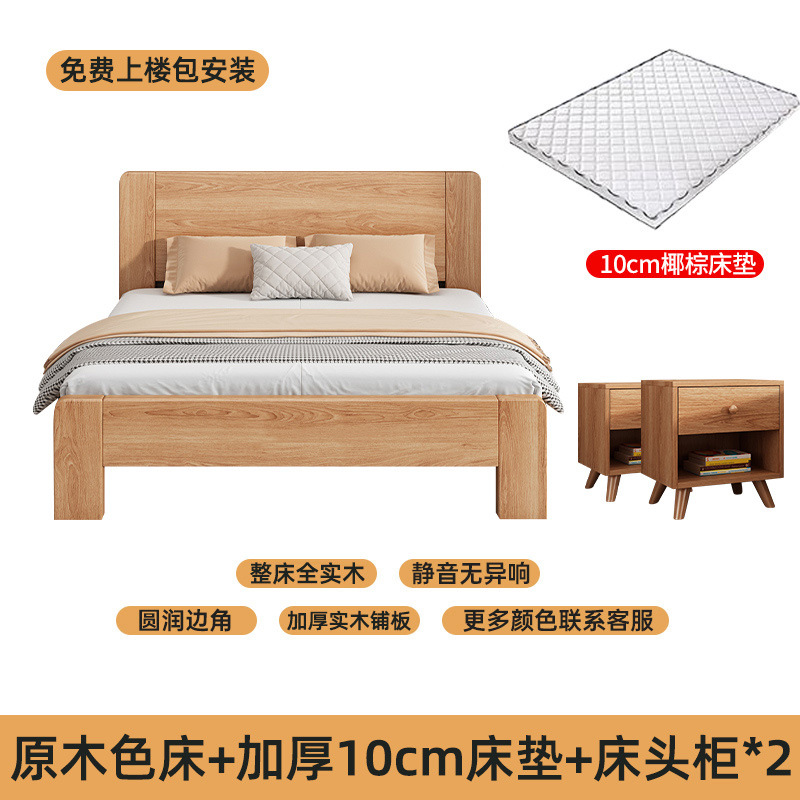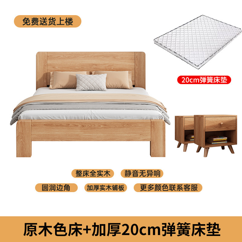 원목 침대 모던 심플 1.5m 더블 침대 1.8m 마스터 침실 고무나무 임대실 기숙사 1.2 싱글 도매