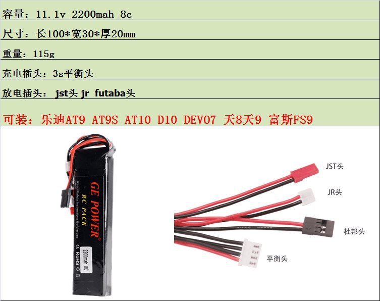 자동차 모델 항공기 모델 원격 제어 리튬 배터리 3.7v 7.4v 11.1v Ledybus mc6 Walkera Tian 9 전기 제어