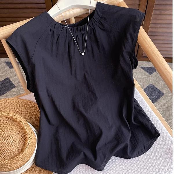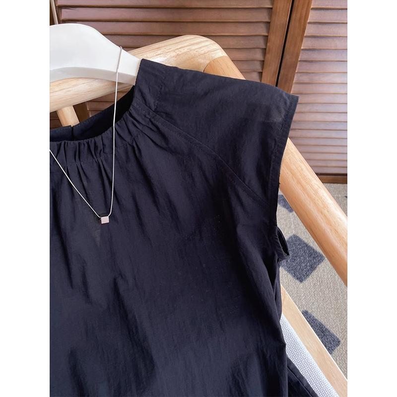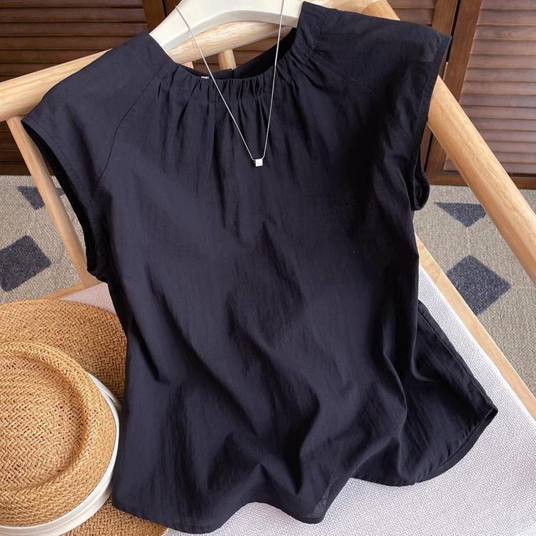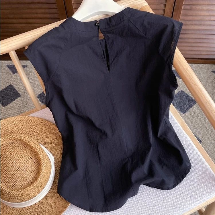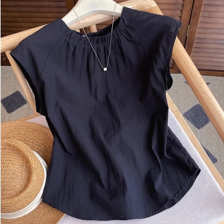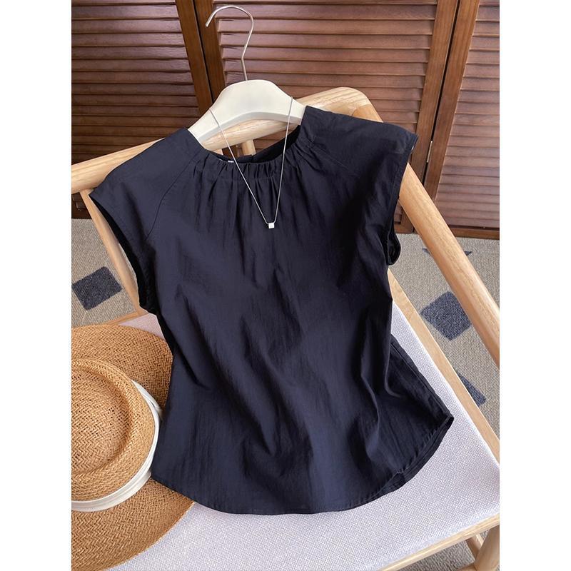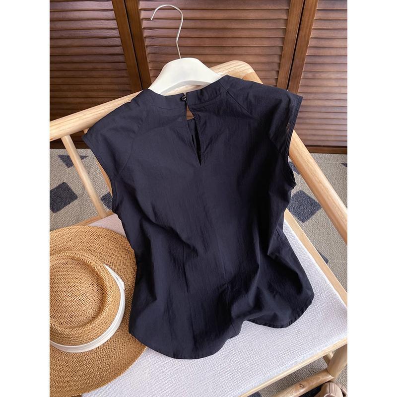 프렌치 레트로 블랙 쉬폰 셔츠 여성용 여름 2026 신상 디자인 루즈핏 캐주얼 스몰 플라잉 슬리브 탑 얇은스토어 가기