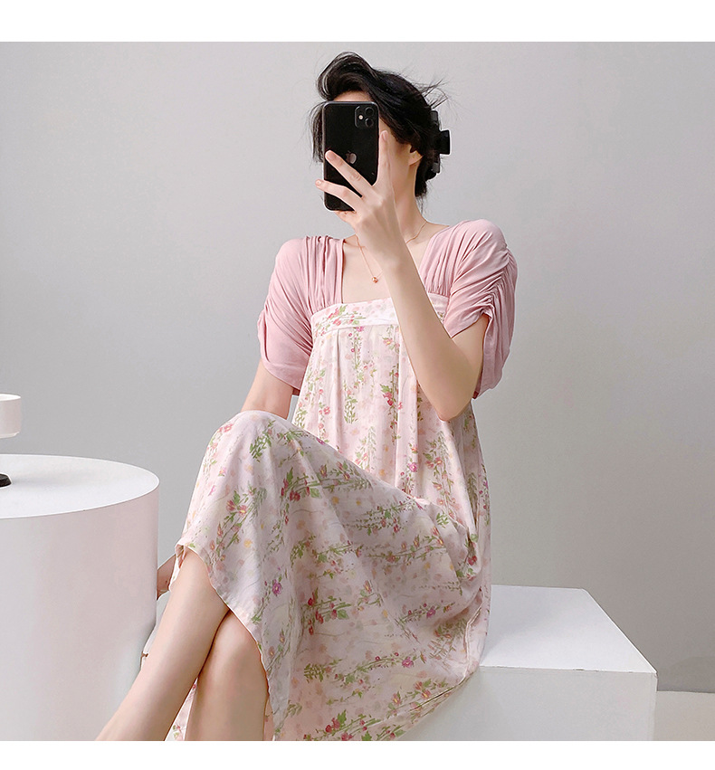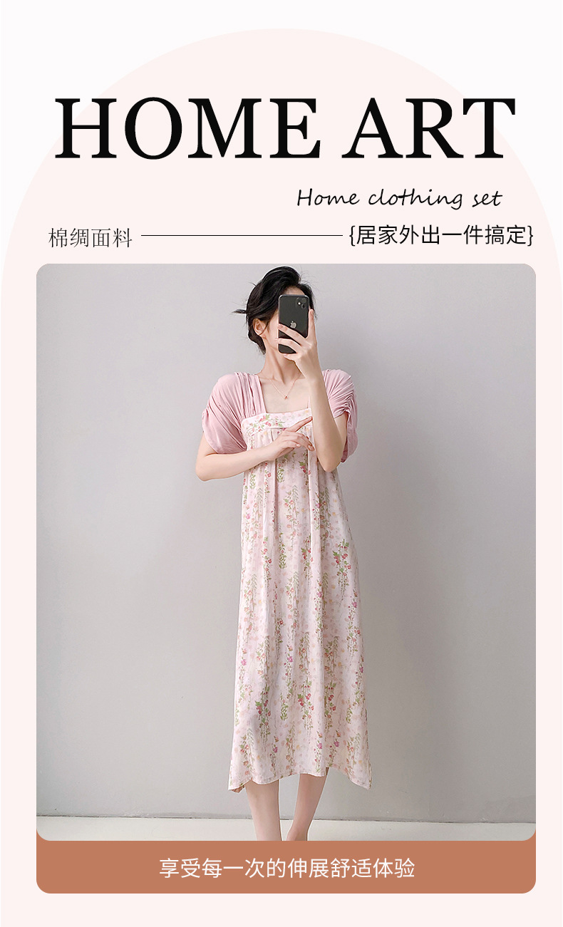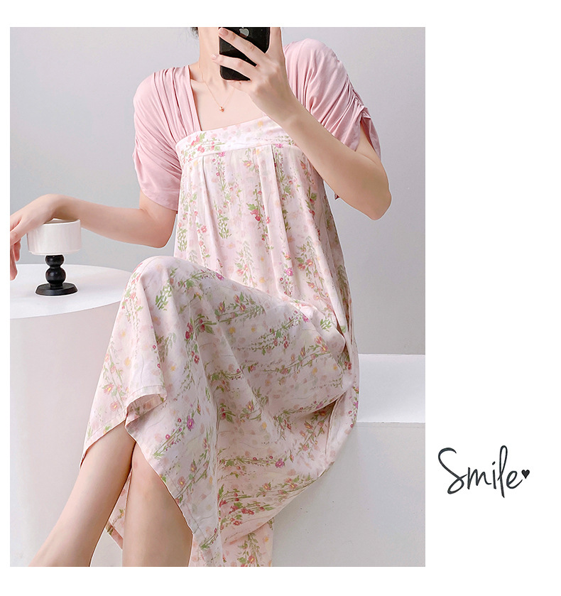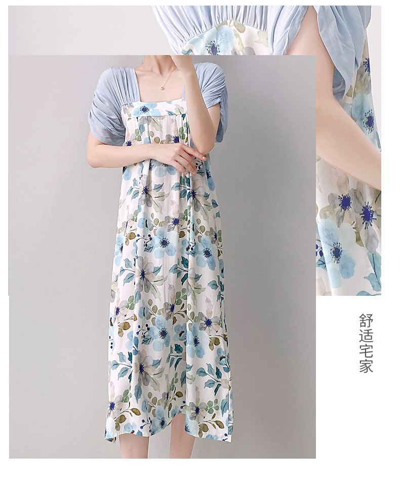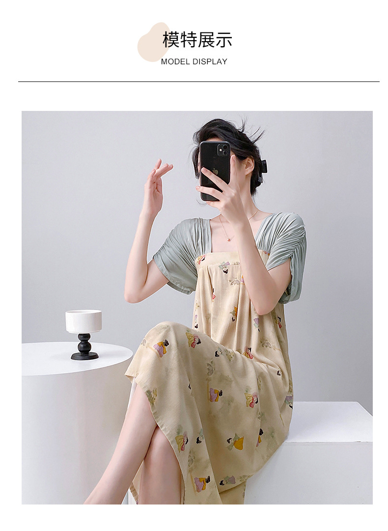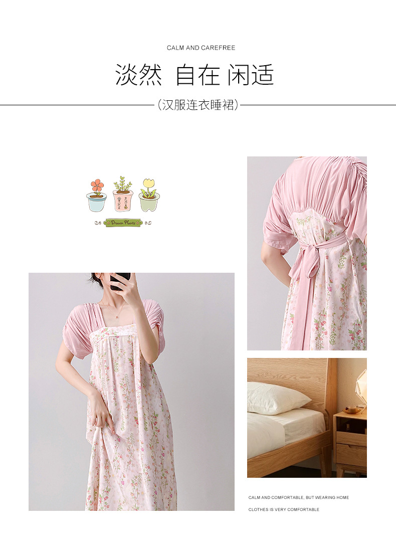 새로운 중국 스타일의 상큼한 분위기의 개량 한복 면 실크 잠옷 여성용 여름 루즈핏 중국풍 달콤한 홈웨어 롱 드레스