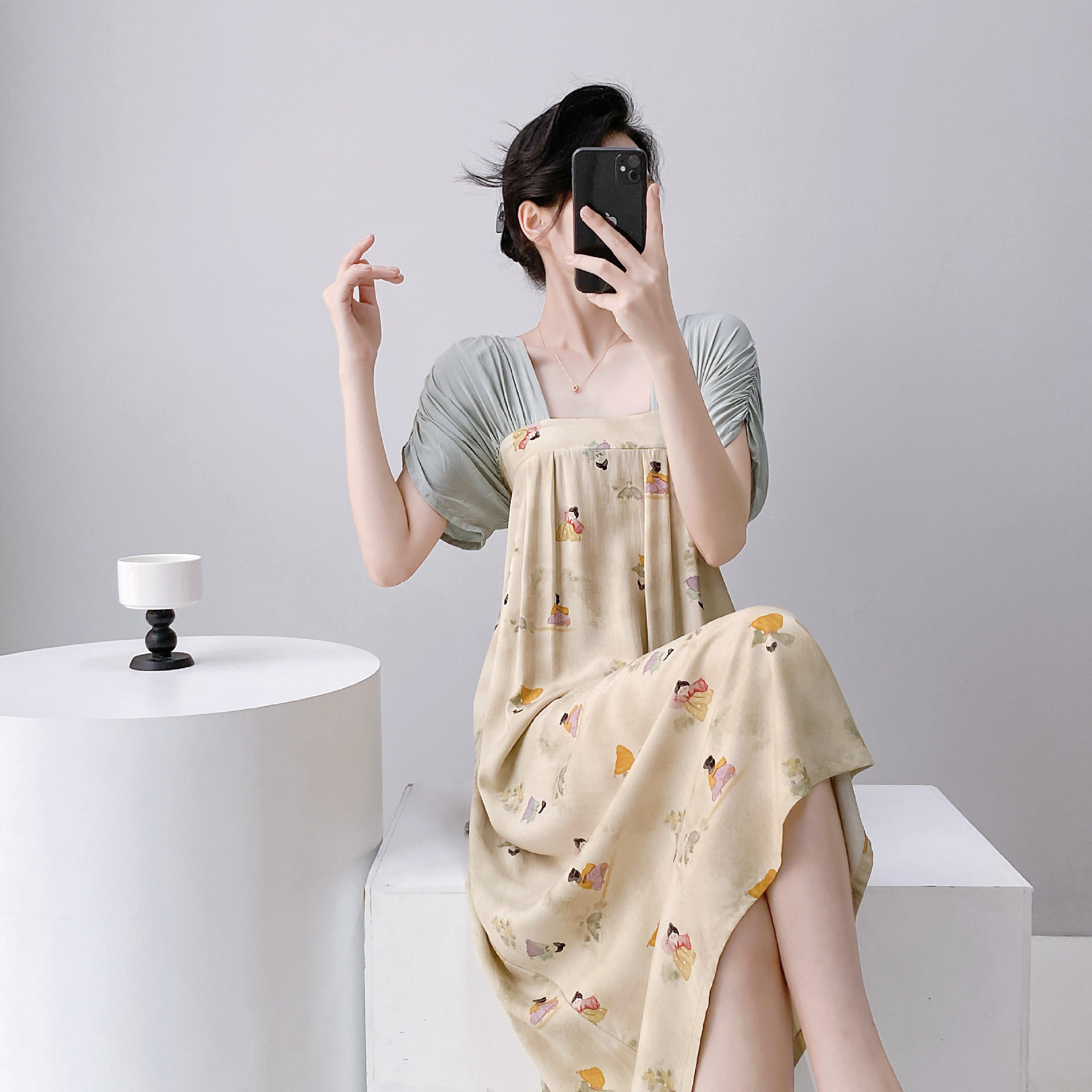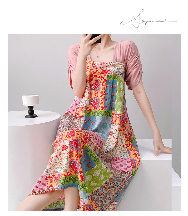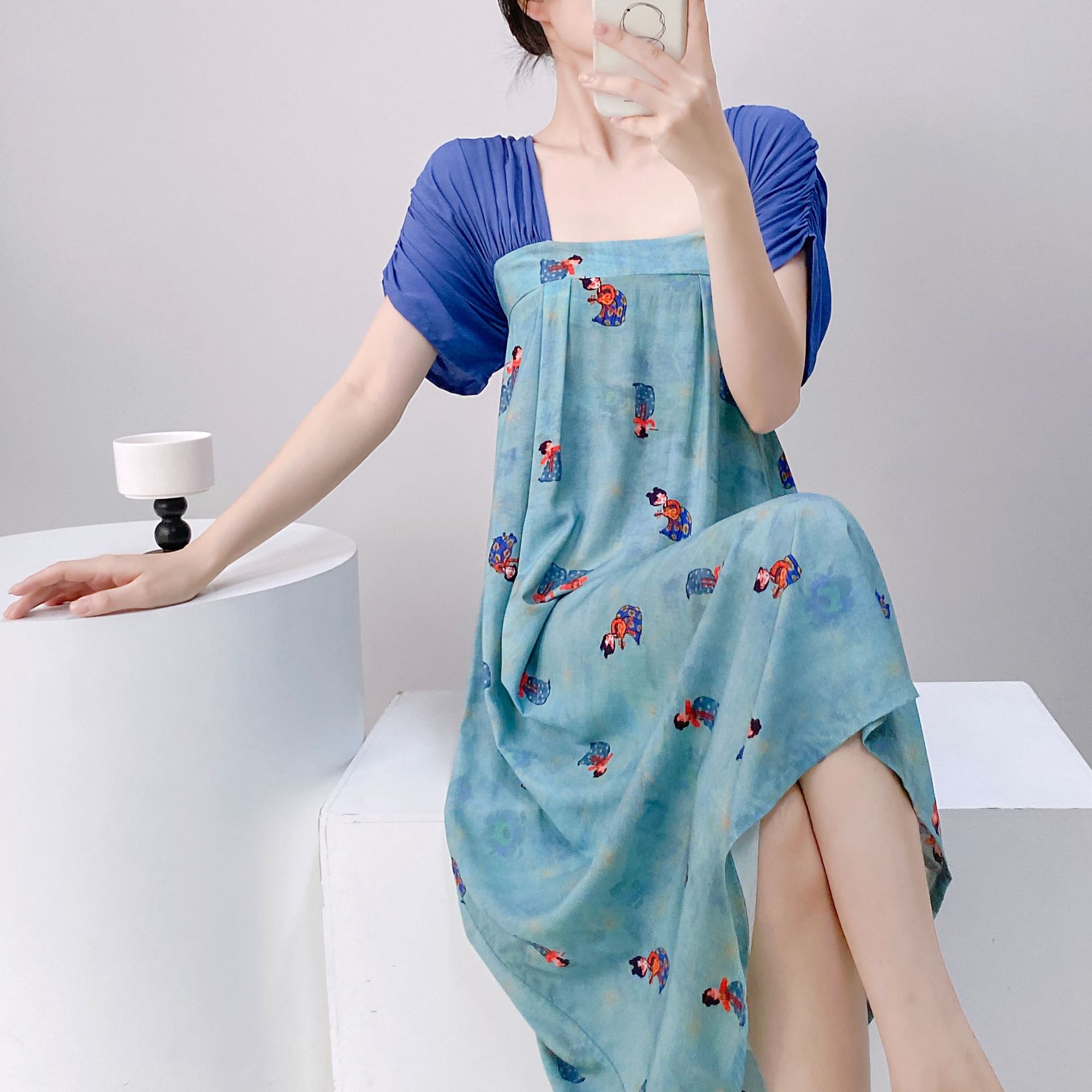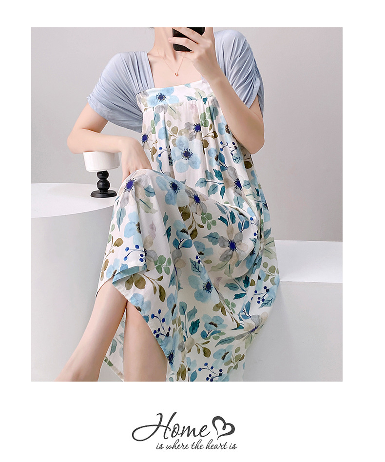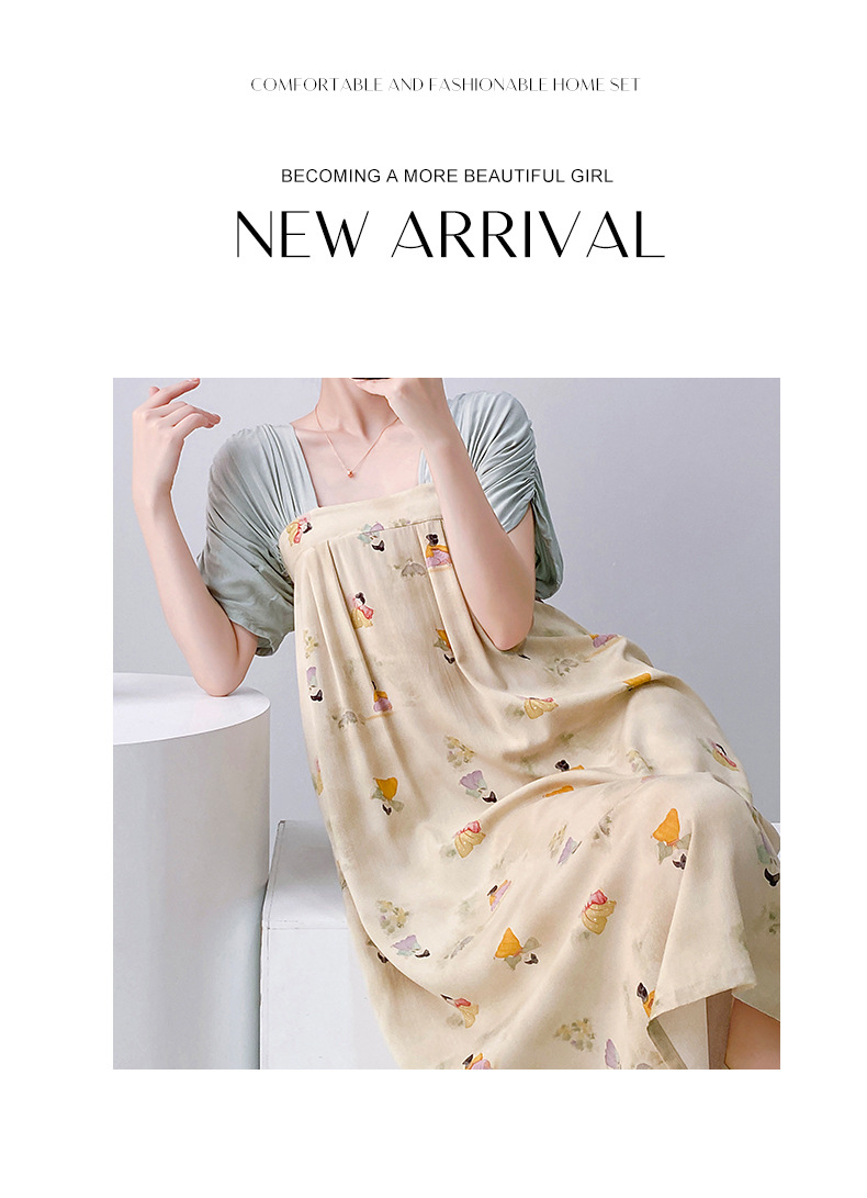 새로운 중국 스타일의 상큼한 분위기의 개량 한복 면 실크 잠옷 여성용 여름 루즈핏 중국풍 달콤한 홈웨어 롱 드레스