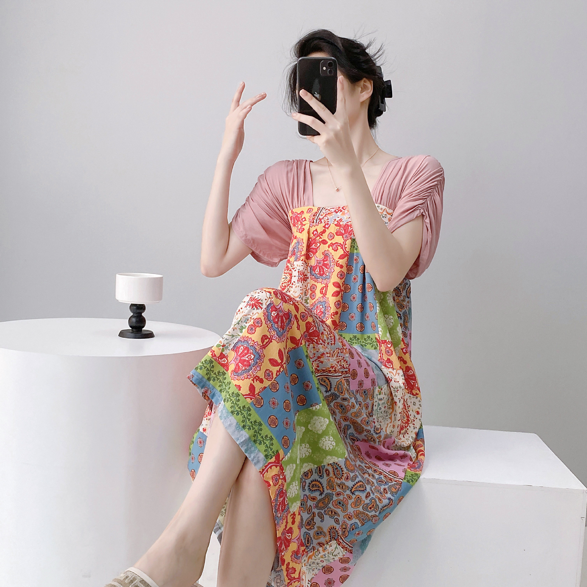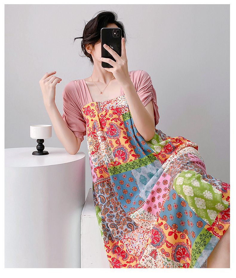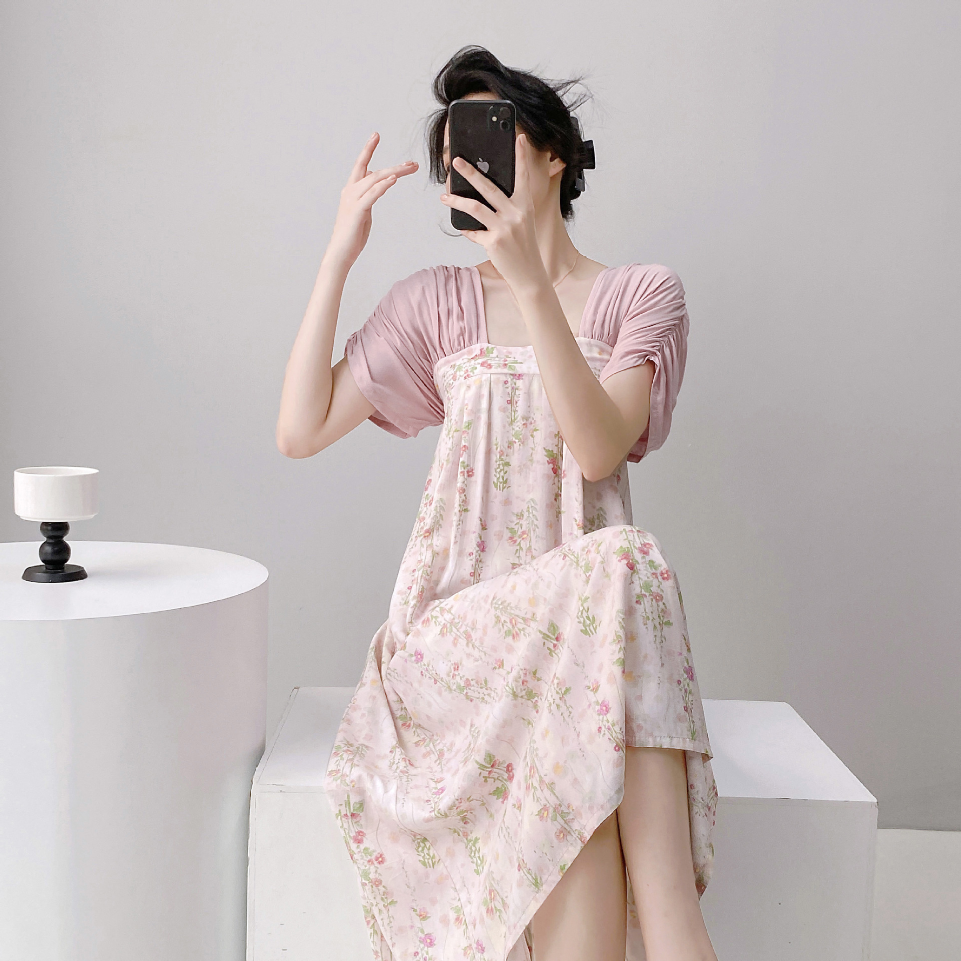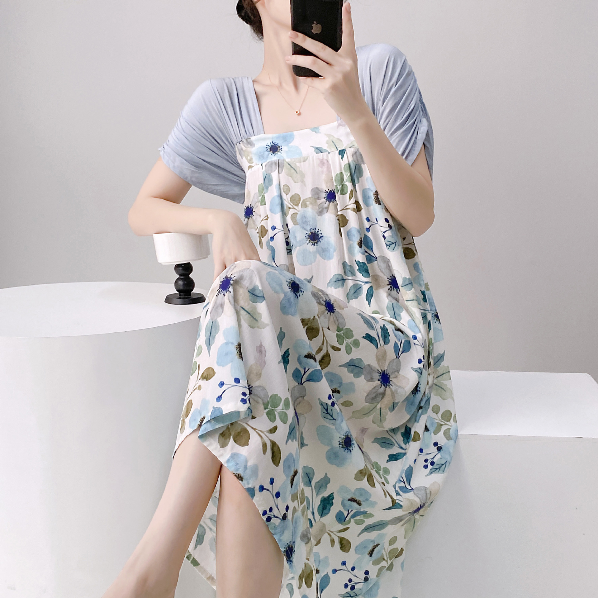새로운 중국 스타일의 상큼한 분위기의 개량 한복 면 실크 잠옷 여성용 여름 루즈핏 중국풍 달콤한 홈웨어 롱 드레스스토어 가기