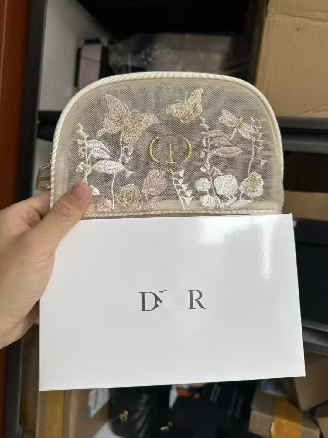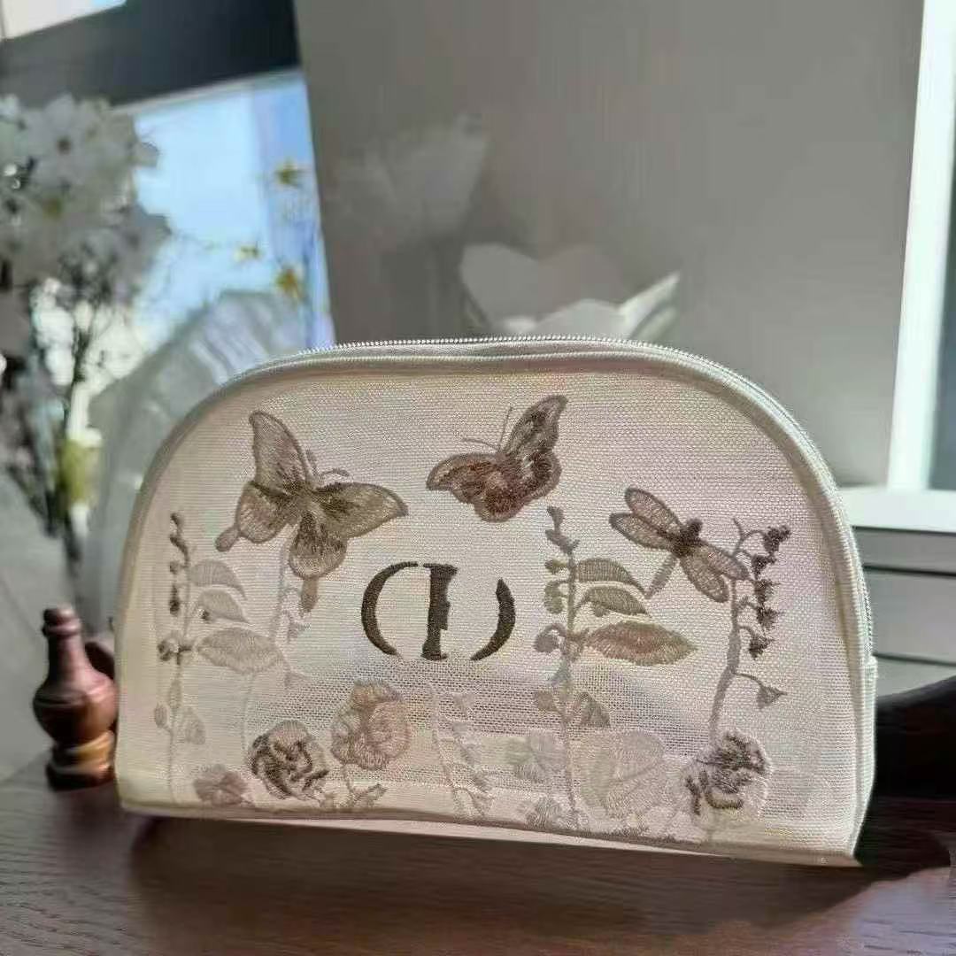 2025 신제품 Dijia 메쉬 화장품 가방 자수 나비 휴대용 메이크업 가방 보관 가방