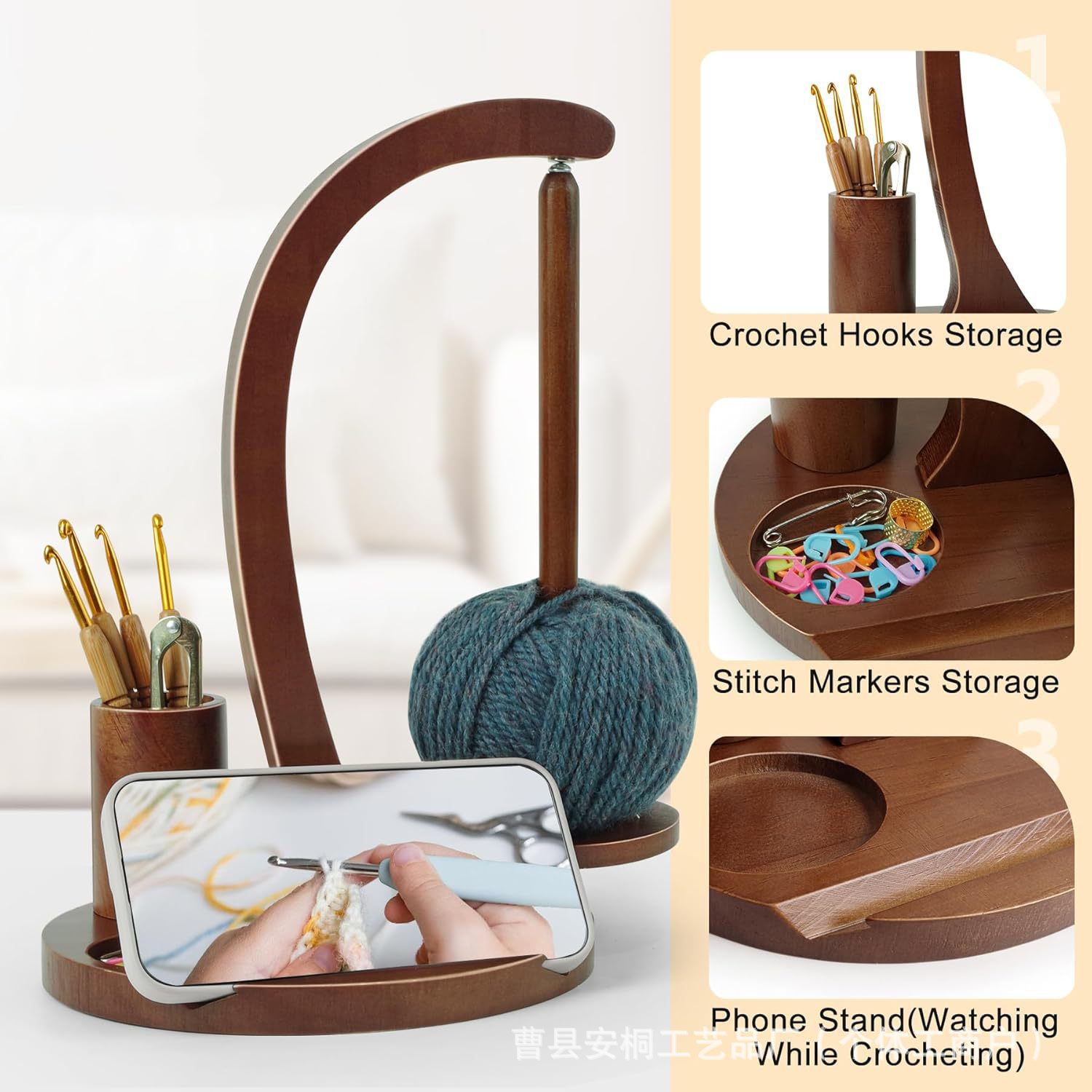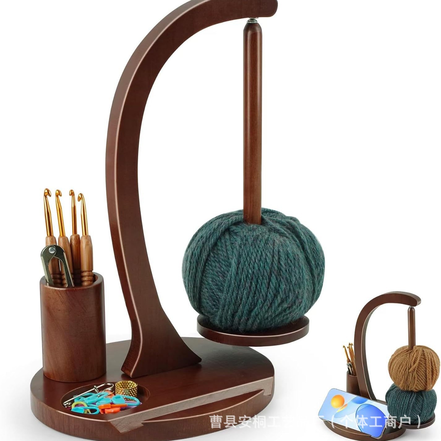 나무 수제 양모 뜨개질 회전 랙 휴대용 양모 원사 보관 랙 단단한 나무 양모 원사 보관 랙