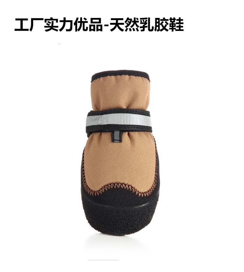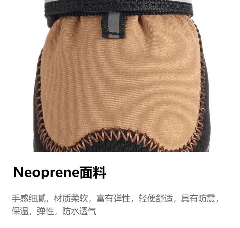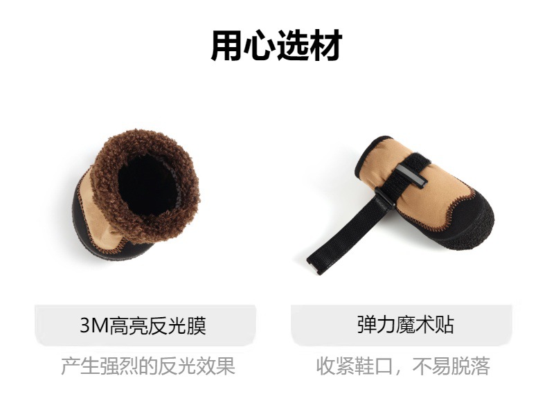 【产品材质】:优质潜水料+防泼水面料+泰迪绒+围带反光条+弹力收缩魔术贴+天然乳胶鞋底