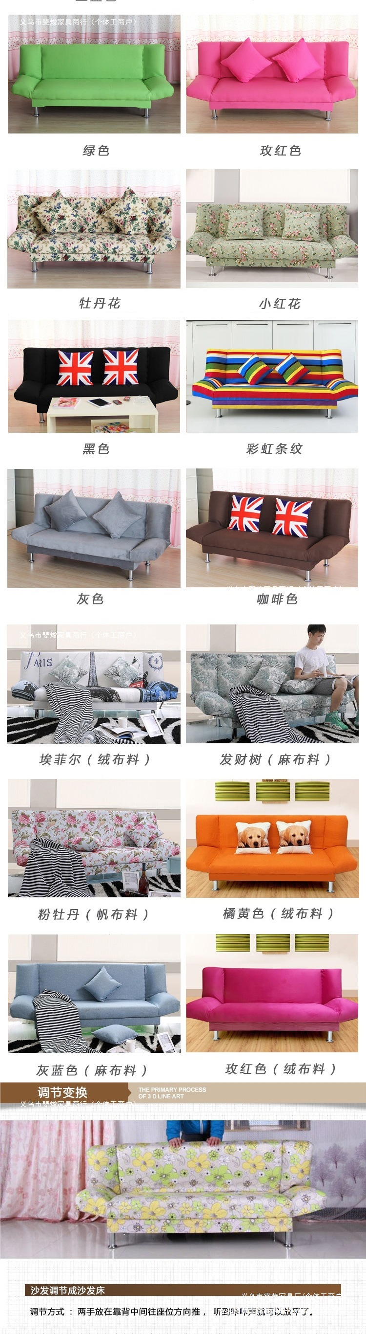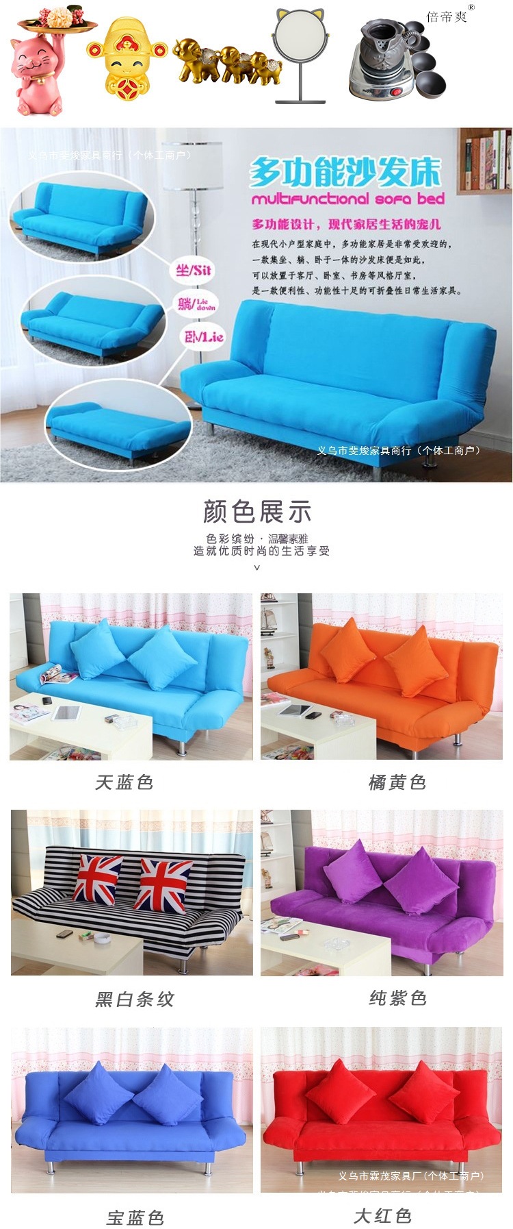 현대적인 간단한 소형 가족 접이식 소파 침대. 미 싱글 더블 패브릭 원목 다기능 이중 목적 실크 꽃스토어 가기