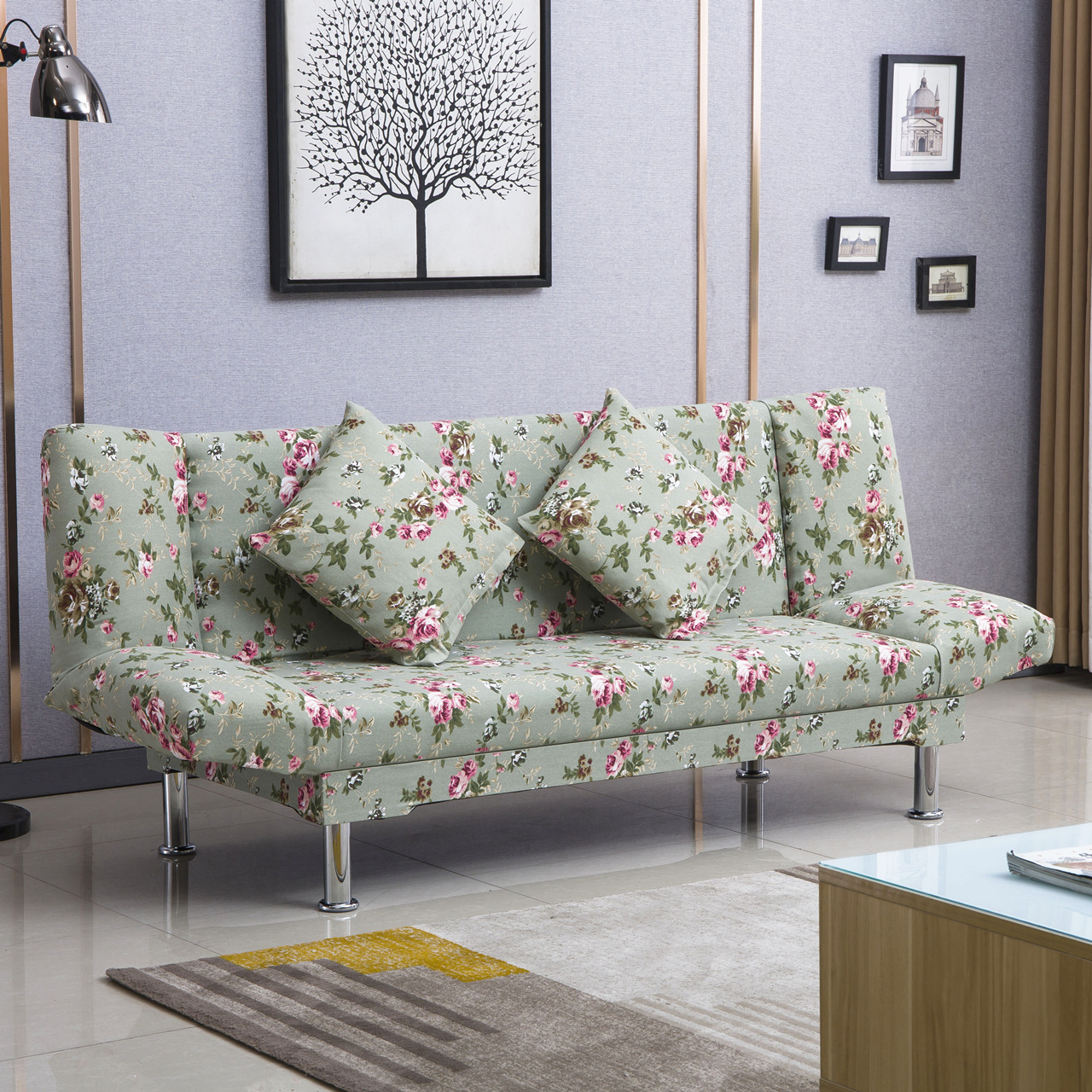현대적인 간단한 소형 가족 접이식 소파 침대. 미 싱글 더블 패브릭 원목 다기능 이중 목적 실크 꽃