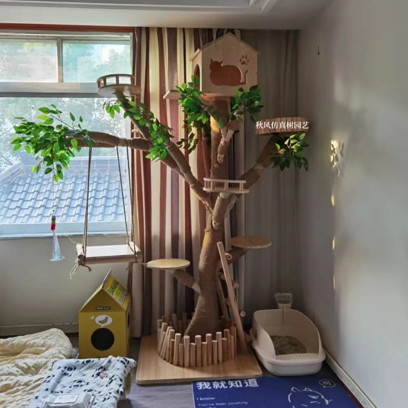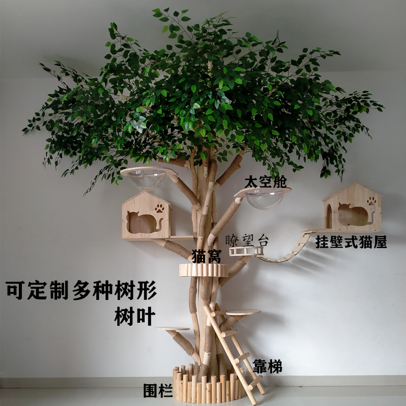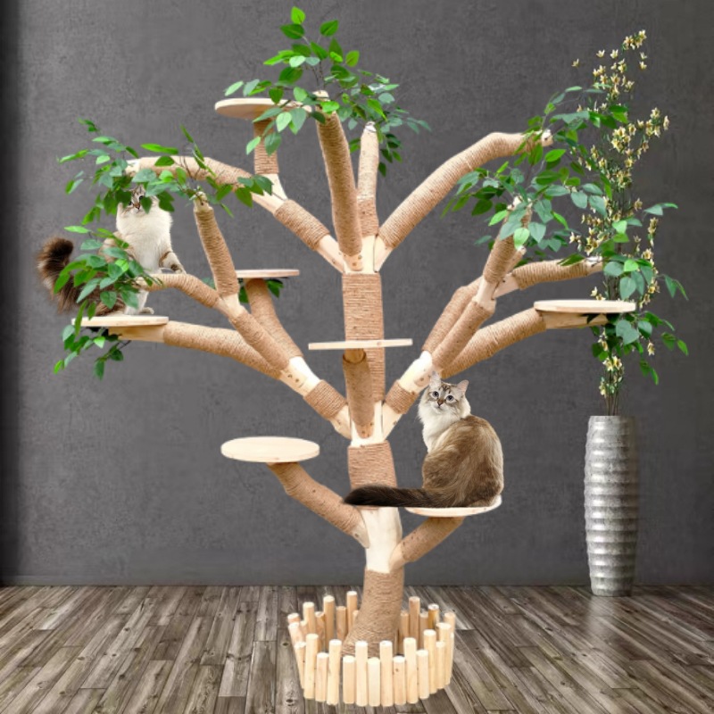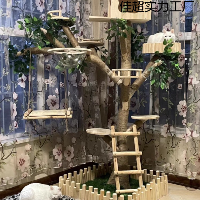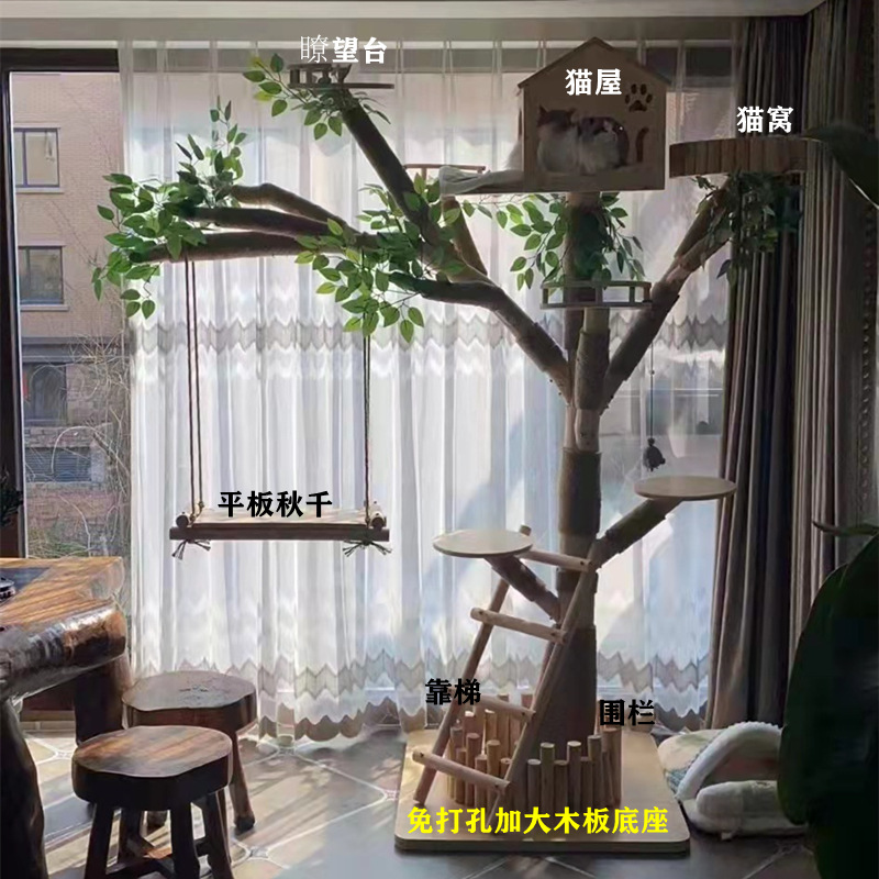 고양이 클라이밍 프레임, 내마모성, 붙지 않는 모피, 실제 나무 줄기, 원목 고양이 프레임, 대형 고양이 트리, 인터넷 연예인 고양이 클라이밍 트리, 애완동물 점프 플랫폼 일체형