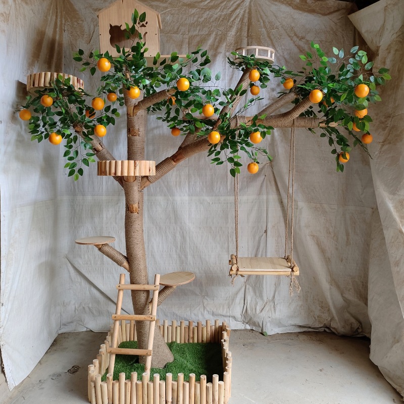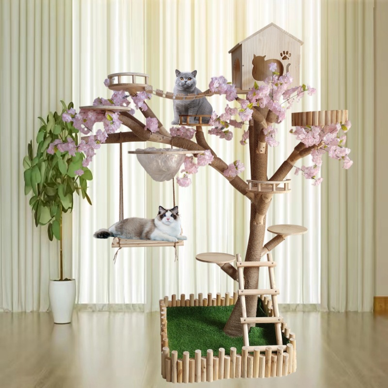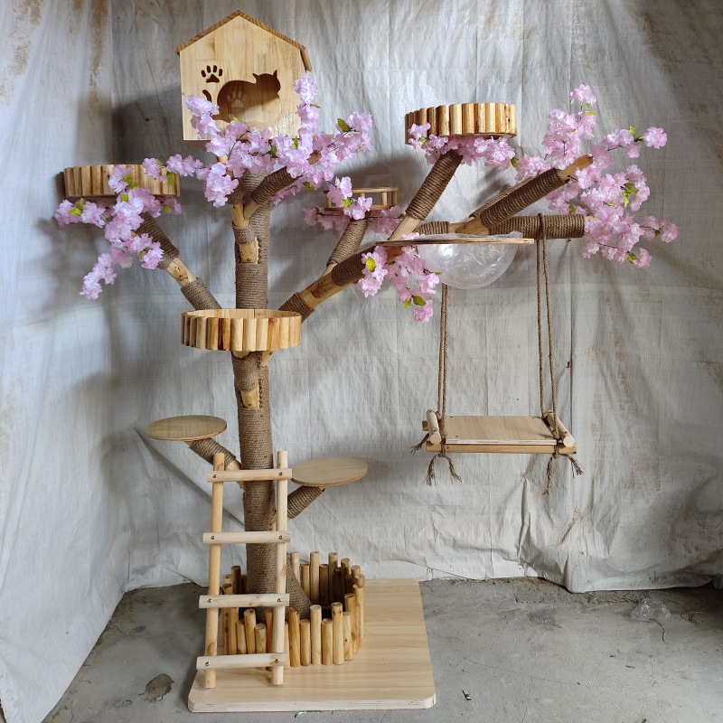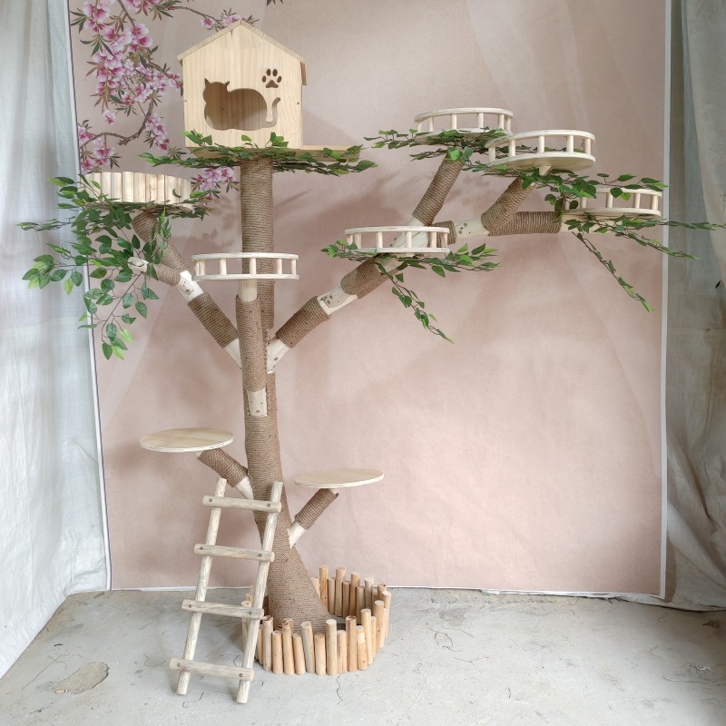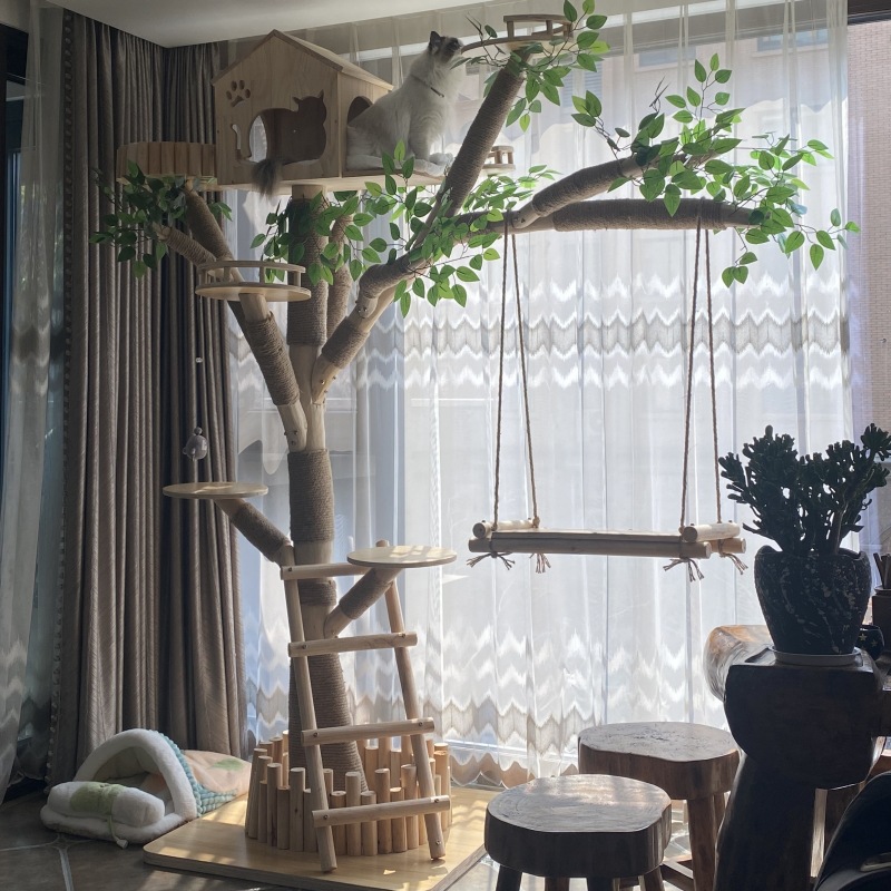 고양이 클라이밍 프레임, 내마모성, 붙지 않는 모피, 실제 나무 줄기, 원목 고양이 프레임, 대형 고양이 트리, 인터넷 연예인 고양이 클라이밍 트리, 애완동물 점프 플랫폼 일체형