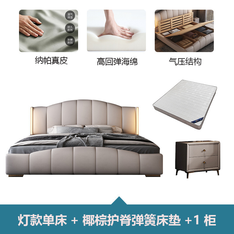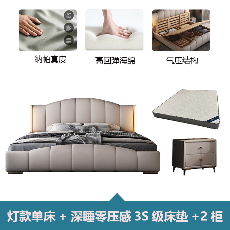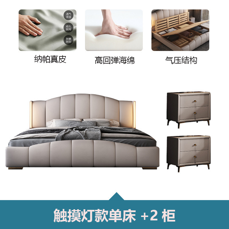 심플 모던 침대 옆 램프, 마스터 침실 럭셔리 침대, 모던 이탈리안 스타일 마스터 침실 침대, 더블, 가정용 베이지색 인터넷 연예인 가죽 침대