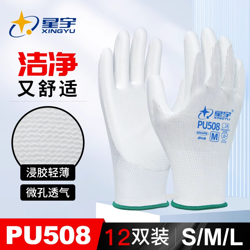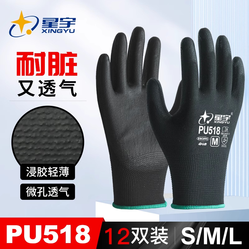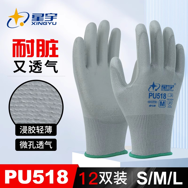 Xingyu 장갑 PU 정전기 방지 담근 노동 보호 내마모성 작업 코팅 손가락 코팅 손바닥 미끄럼 방지 통기성 얇은 전자 공장 여름