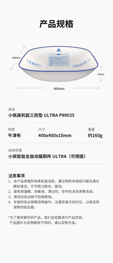 [ULTRA 적용 가능] Xiaopei 고성능 3방지 패드는 Xiaopei 스마트 고양이 화장실 ULTRA Easy Clean 교체에 적합합니다.