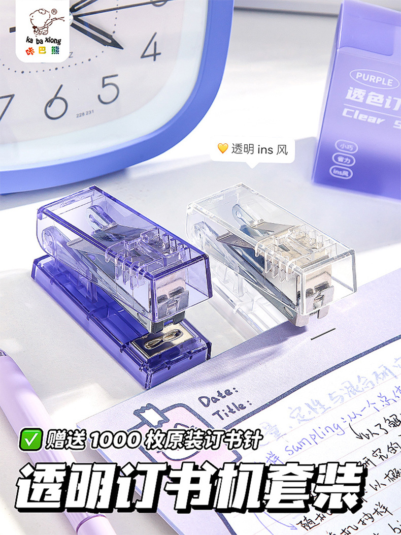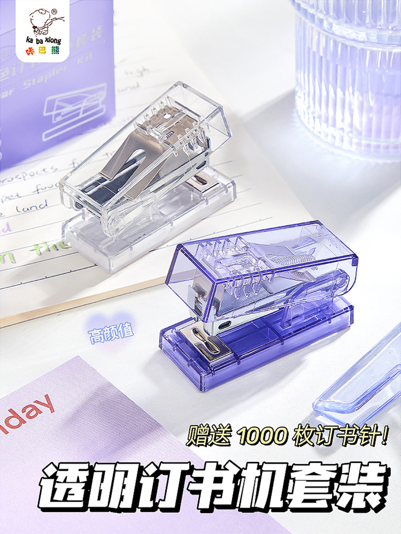 카바베어 스테이플러 ins 소형 스테이플러 투명 심플 사무용 제본기 휴대용 간편 제본 노력 절약형