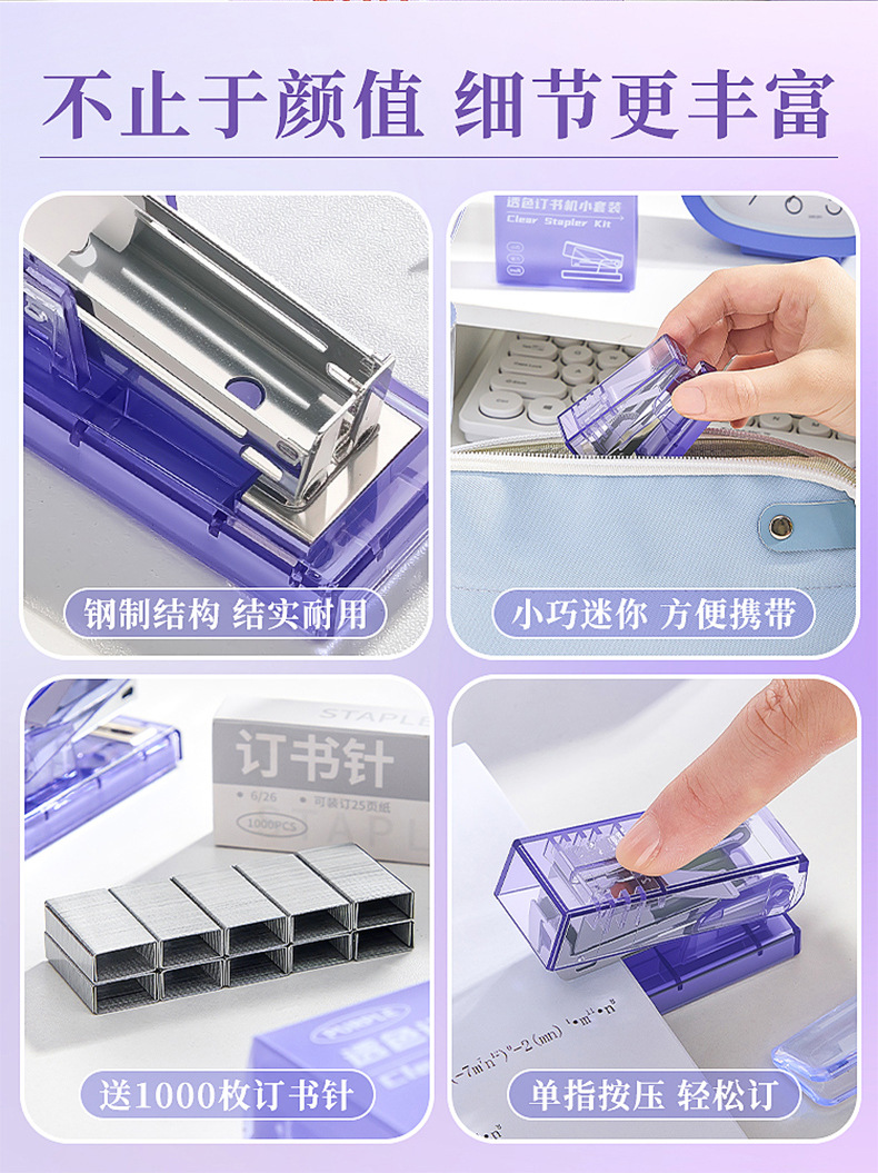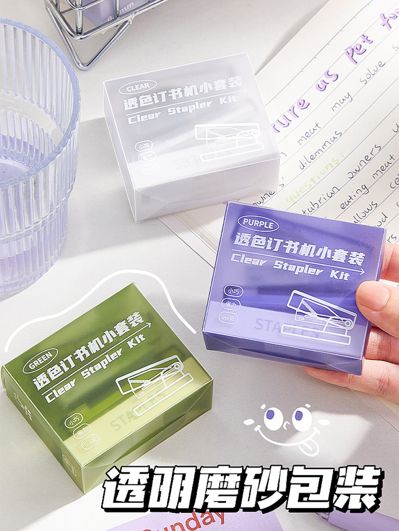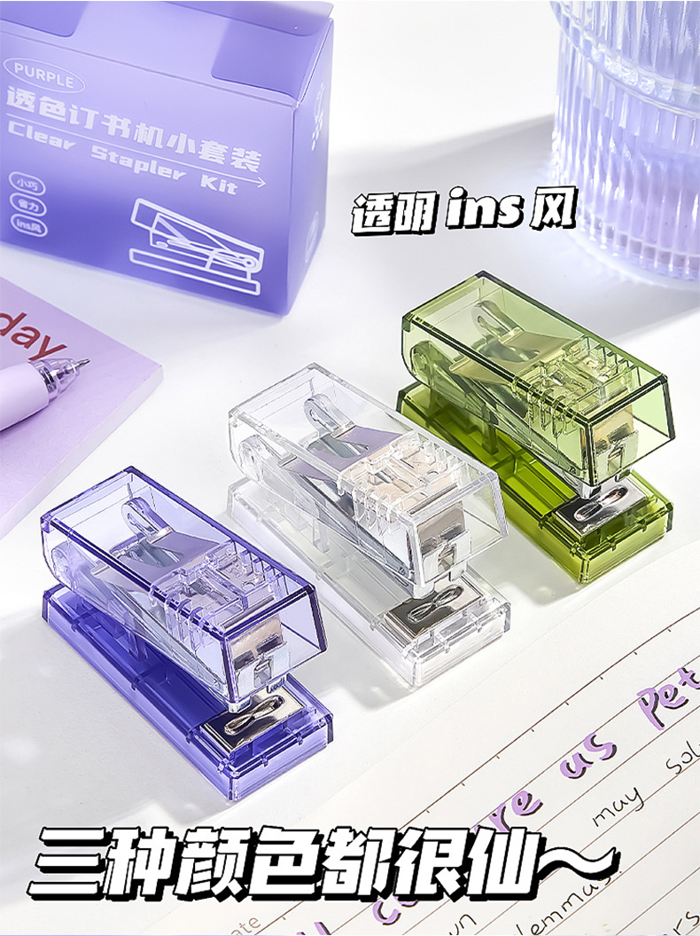 • 투명 스테이플러 소형 세트 투명 보라색
