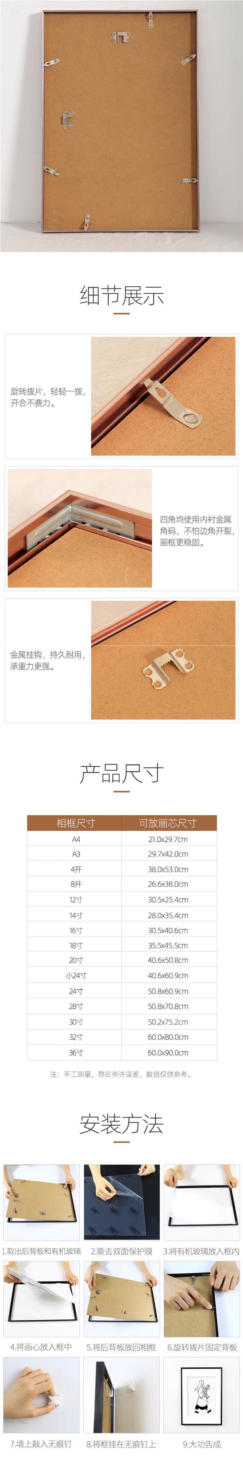 심플한 알루미늄 합금 액자 A4a3 벽걸이 우유 차 가게 포스터 사진 프레임 분해 없음 퍼즐 프레임 무료 배송스토어 가기