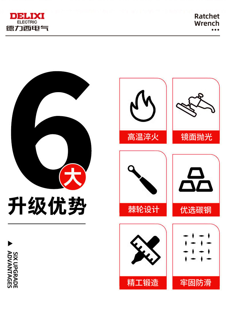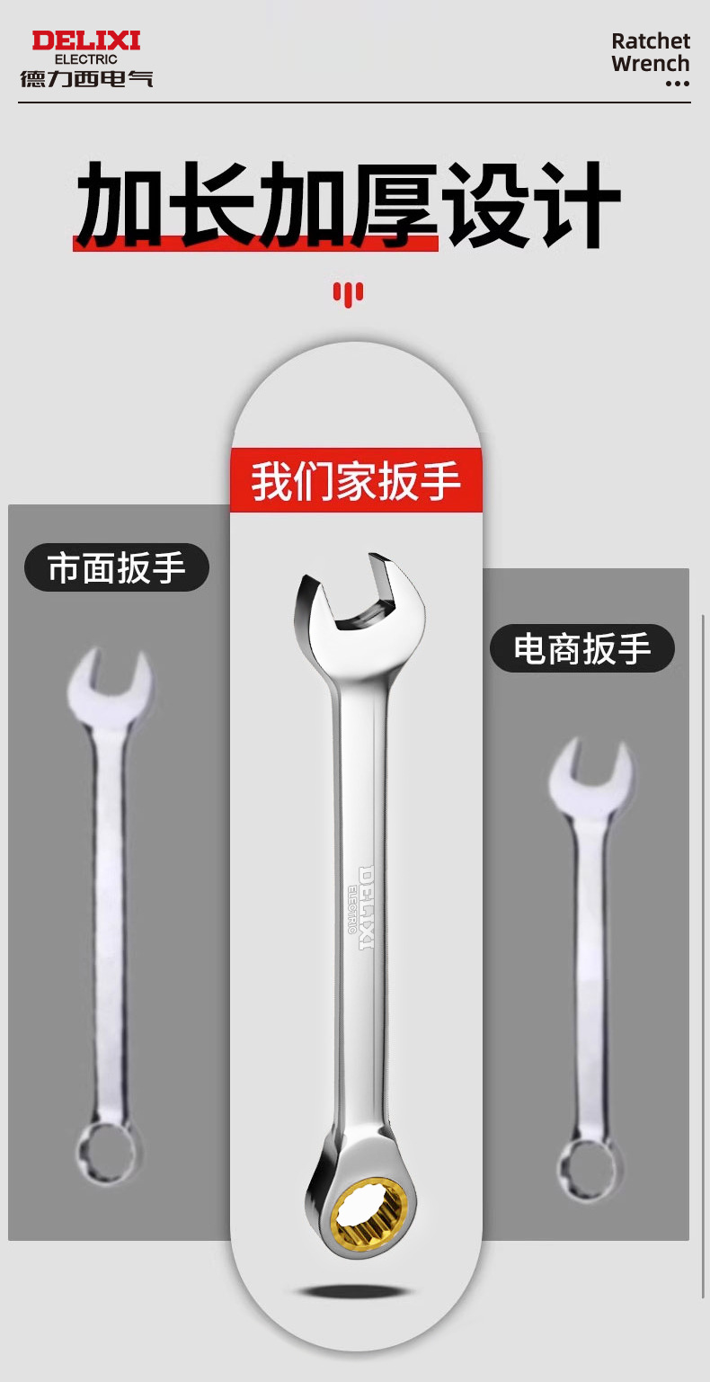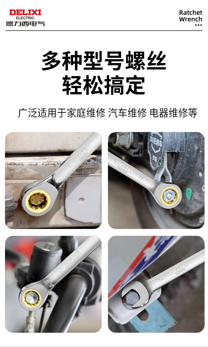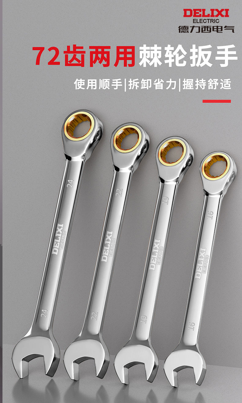 Delixi 전기 이중 목적 렌치 양방향 Torx 오픈 퀵 렌치 72 치아 6-32mm 수동 래칫 렌치스토어 가기