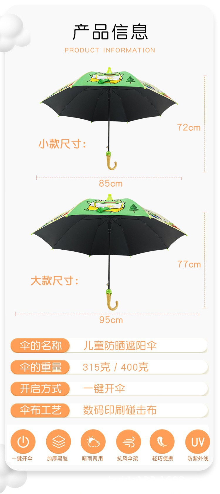 만화 자동 어린이 우산 귀여운 유치원 남성과 여성 초등학교 어린이 우산 태양 보호 우산 비 또는 빛 재고 있음