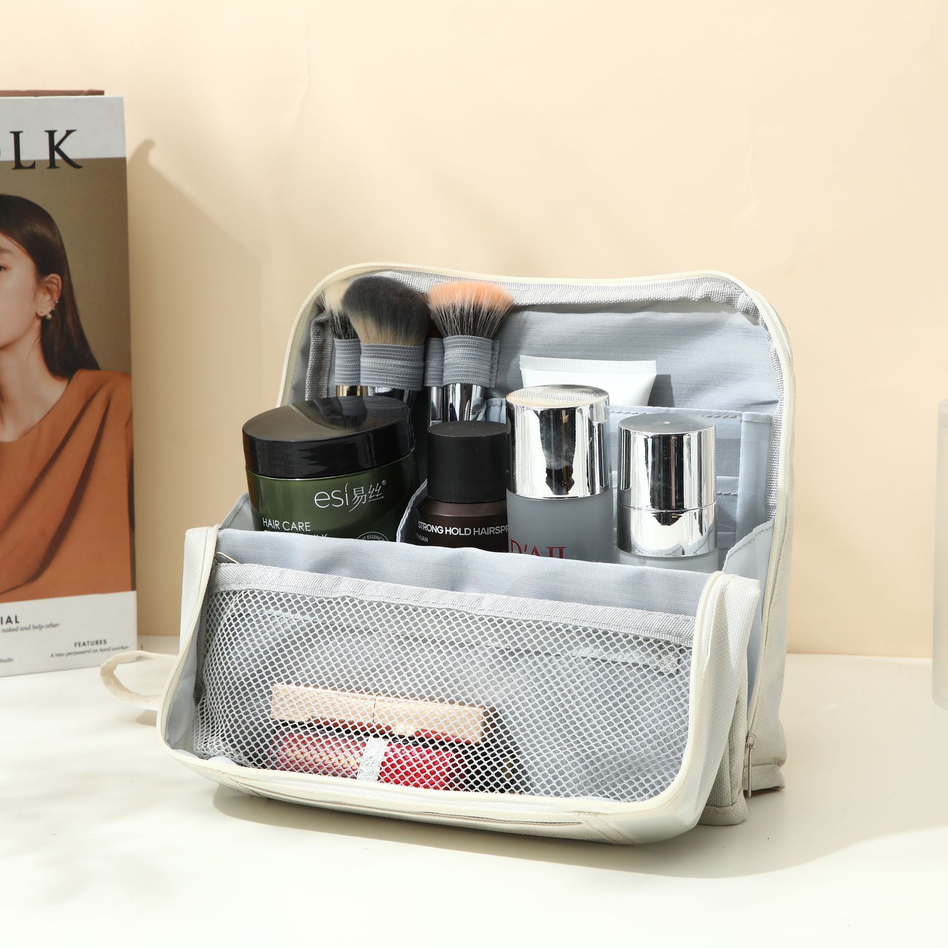 여행용 휴대용 스킨 케어 제품을 보관할 수 있는 새로운 스타일의 크로스보더 화장품 가방 2025 여성용 새로운 스탠딩 세면 용품 가방