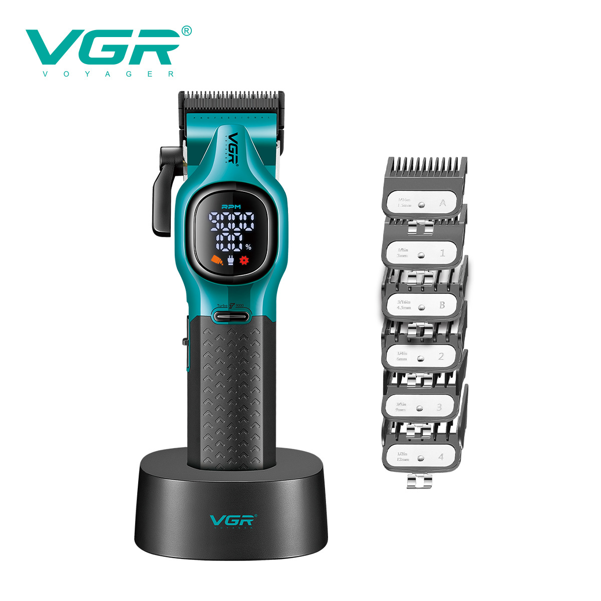 VGR886C 국경 간 전기 LCD 가변 속도 머리 깎기 전문 고속 브러시리스 모터 9000RPM 디지털 디스플레이 클리퍼
