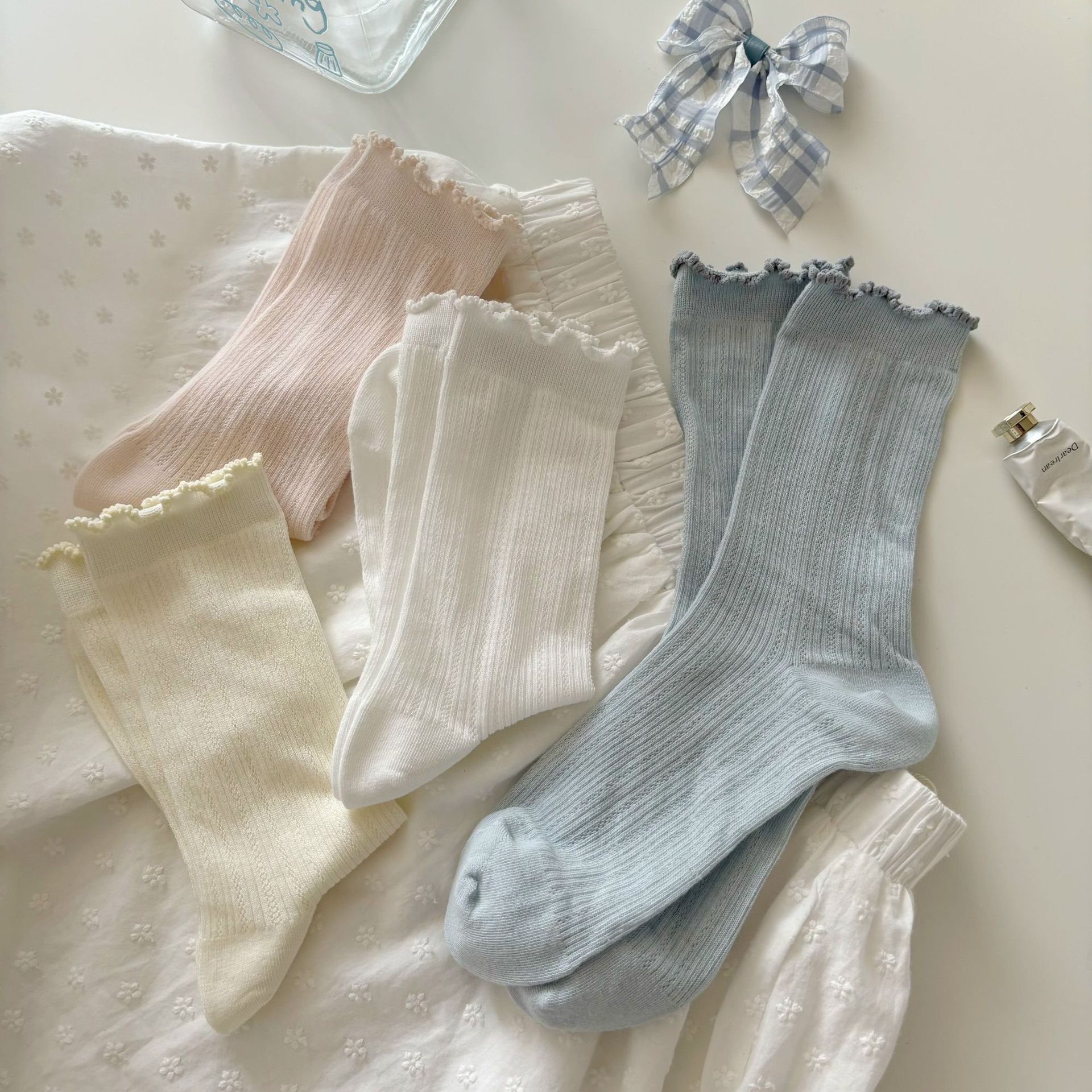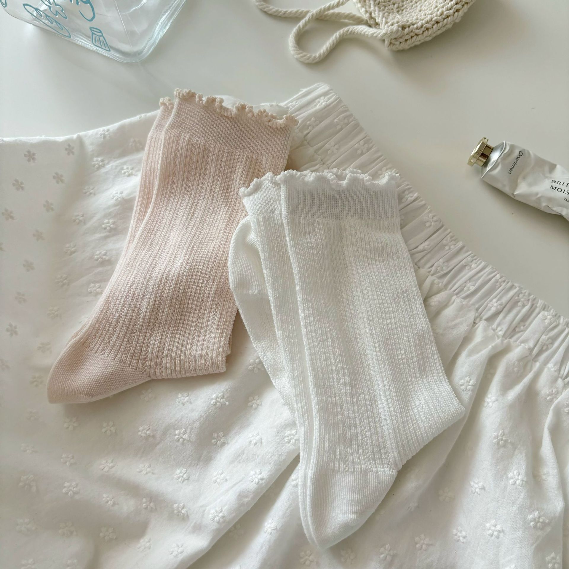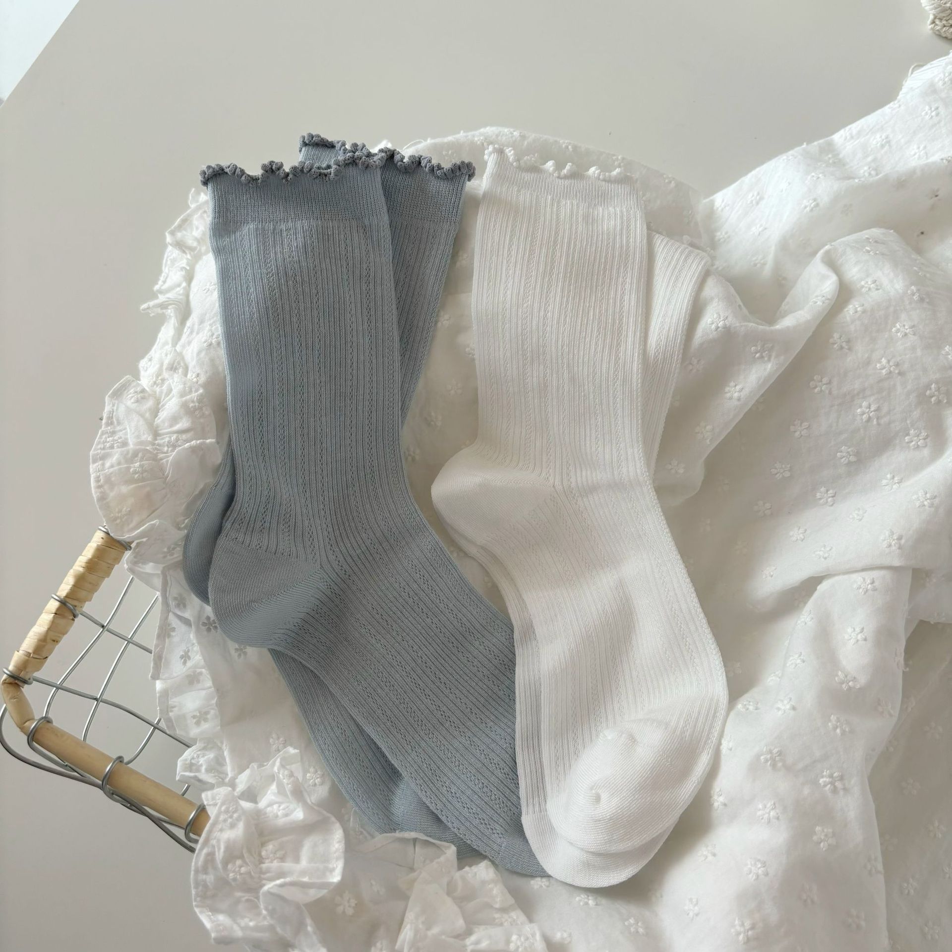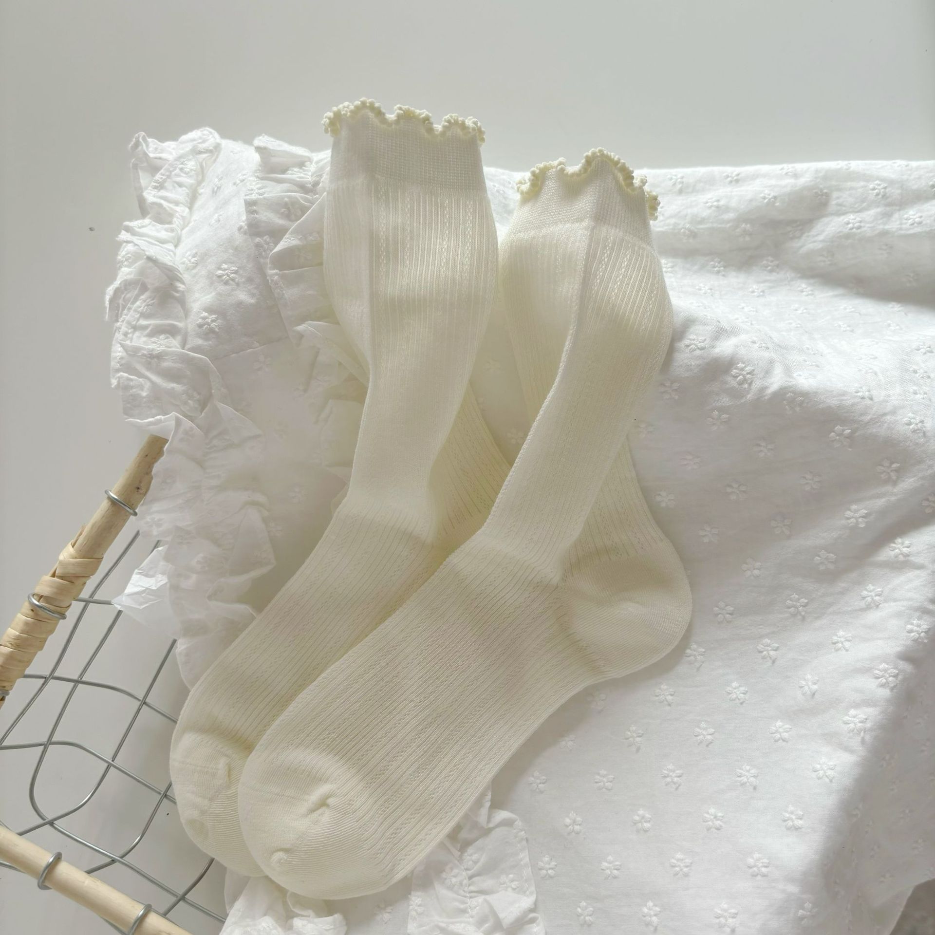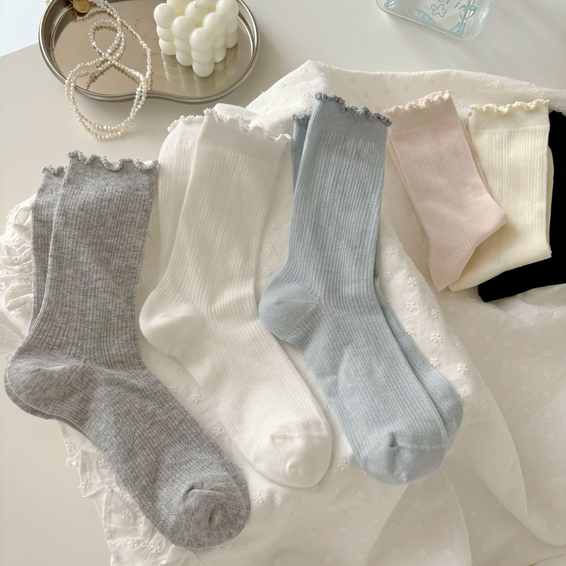 여름 얇은 흰색 양말 여성용 중공 튜브 양말 ins 슈퍼 일본식 달콤한 레이스 양말 뼈없는 면 양말