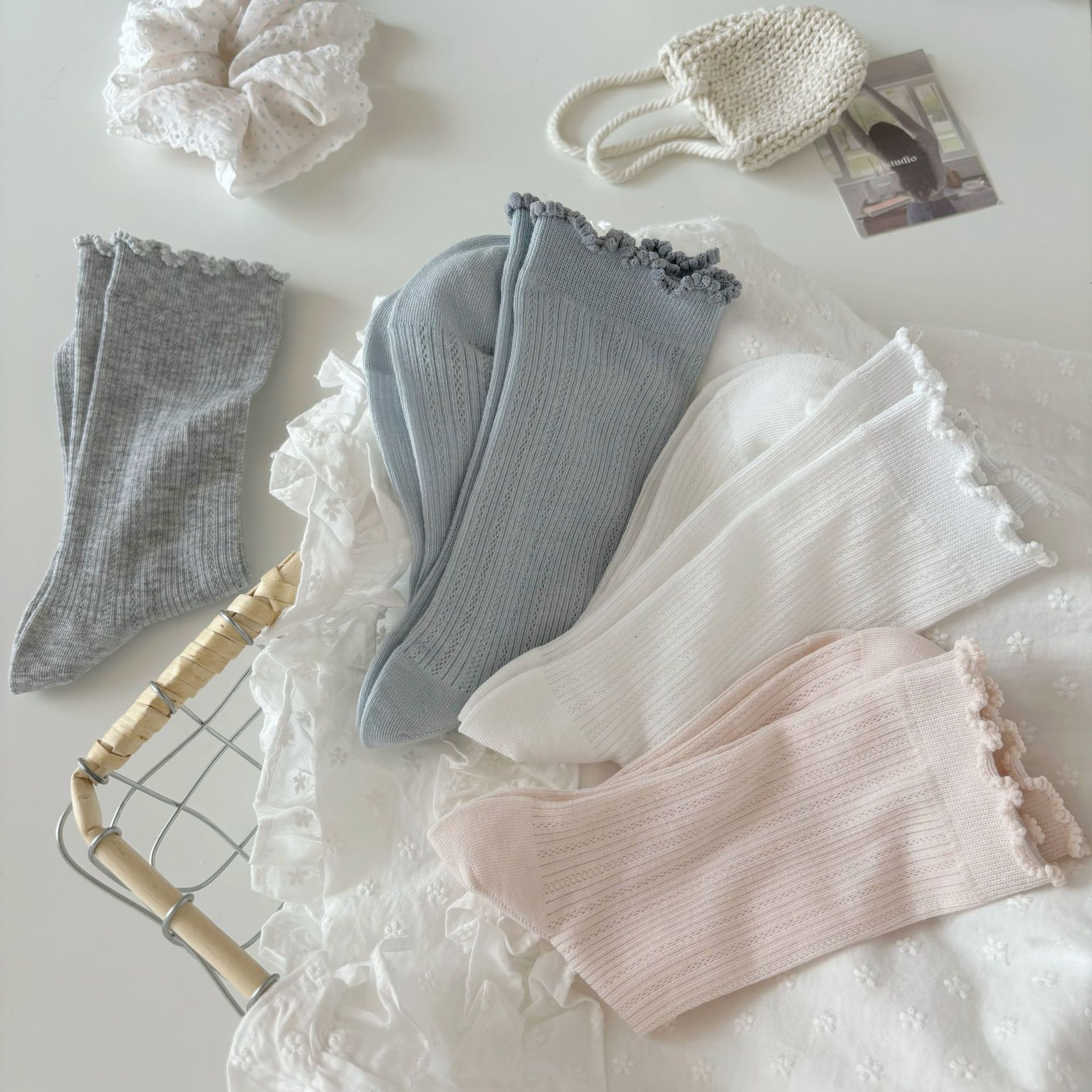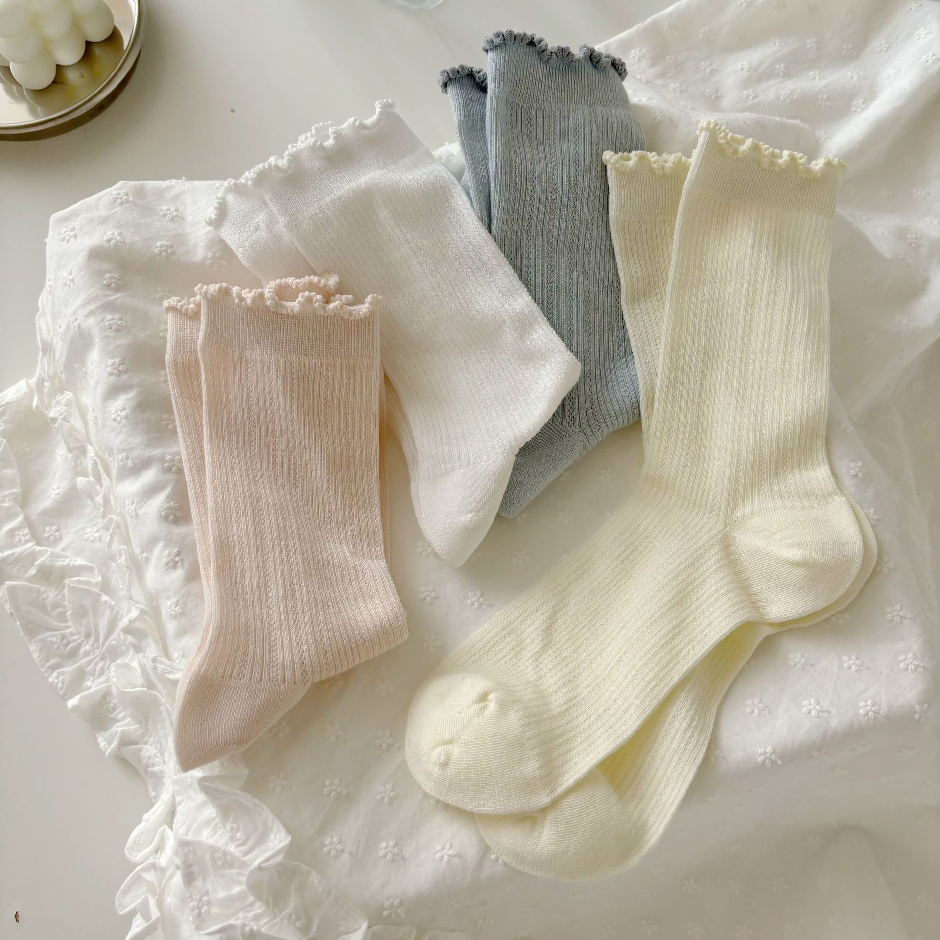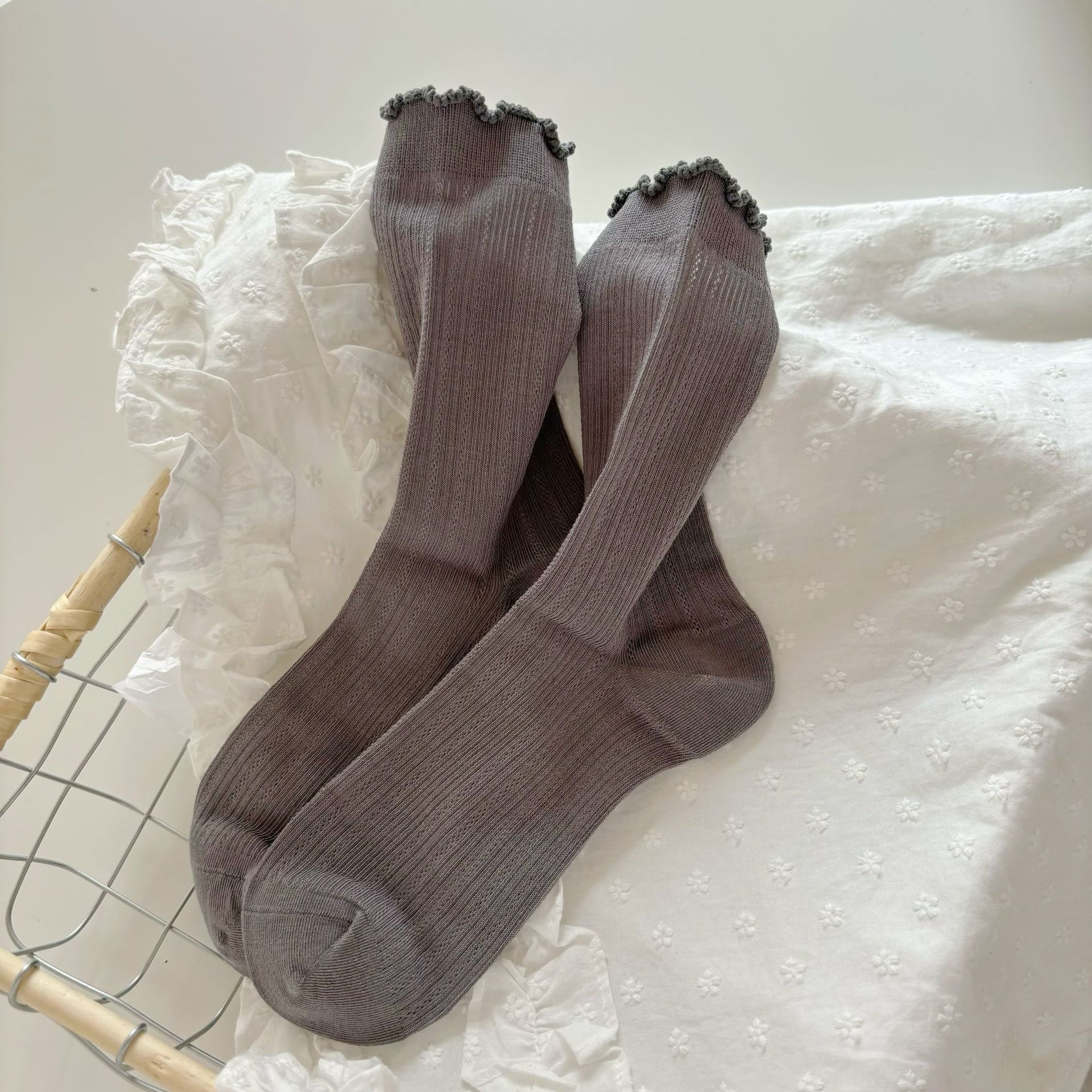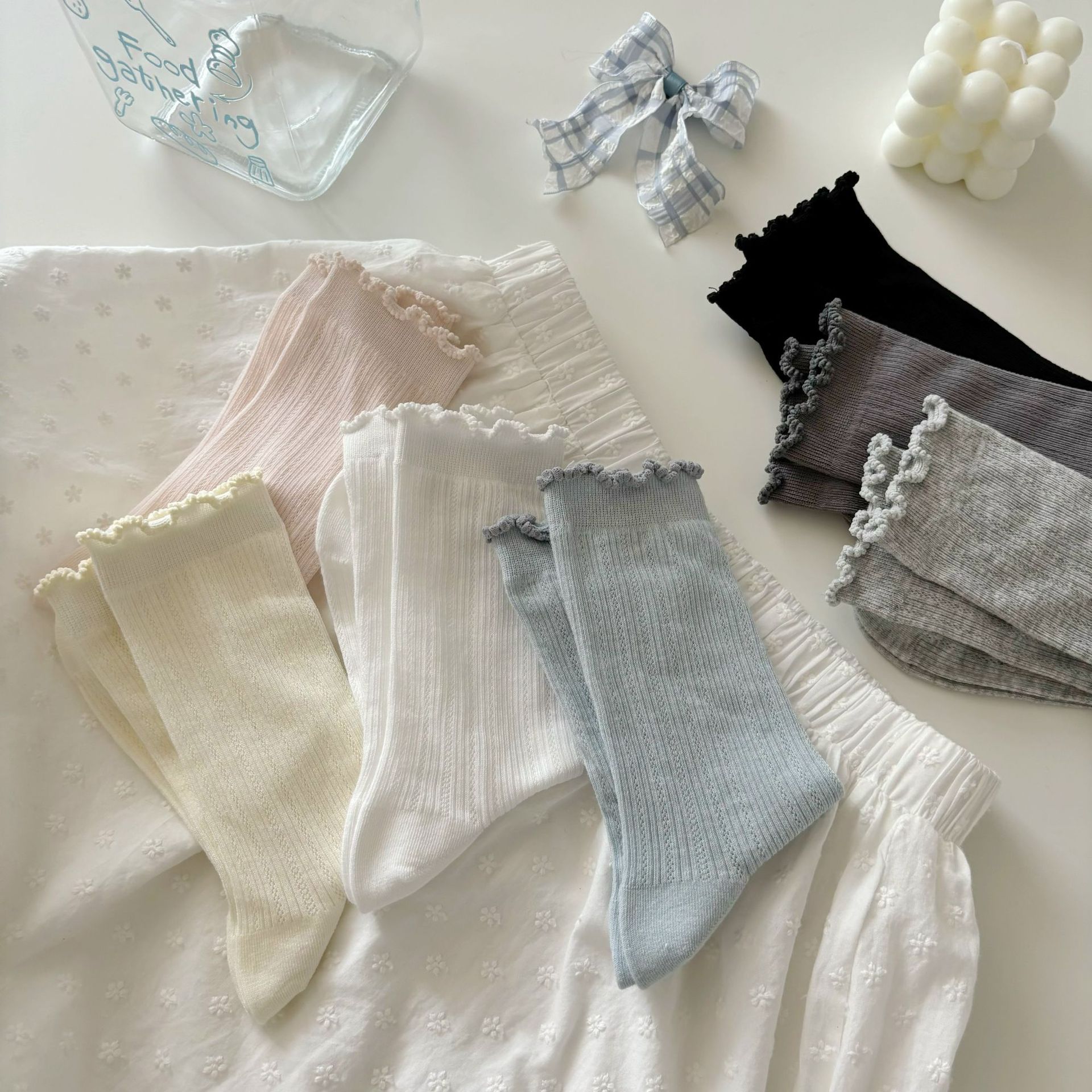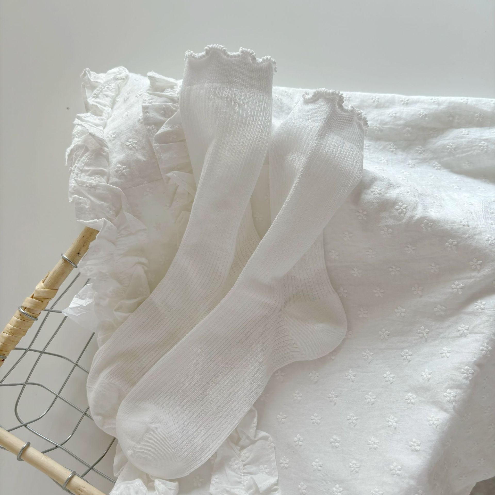 여름 얇은 흰색 양말 여성용 중공 튜브 양말 ins 슈퍼 일본식 달콤한 레이스 양말 뼈없는 면 양말