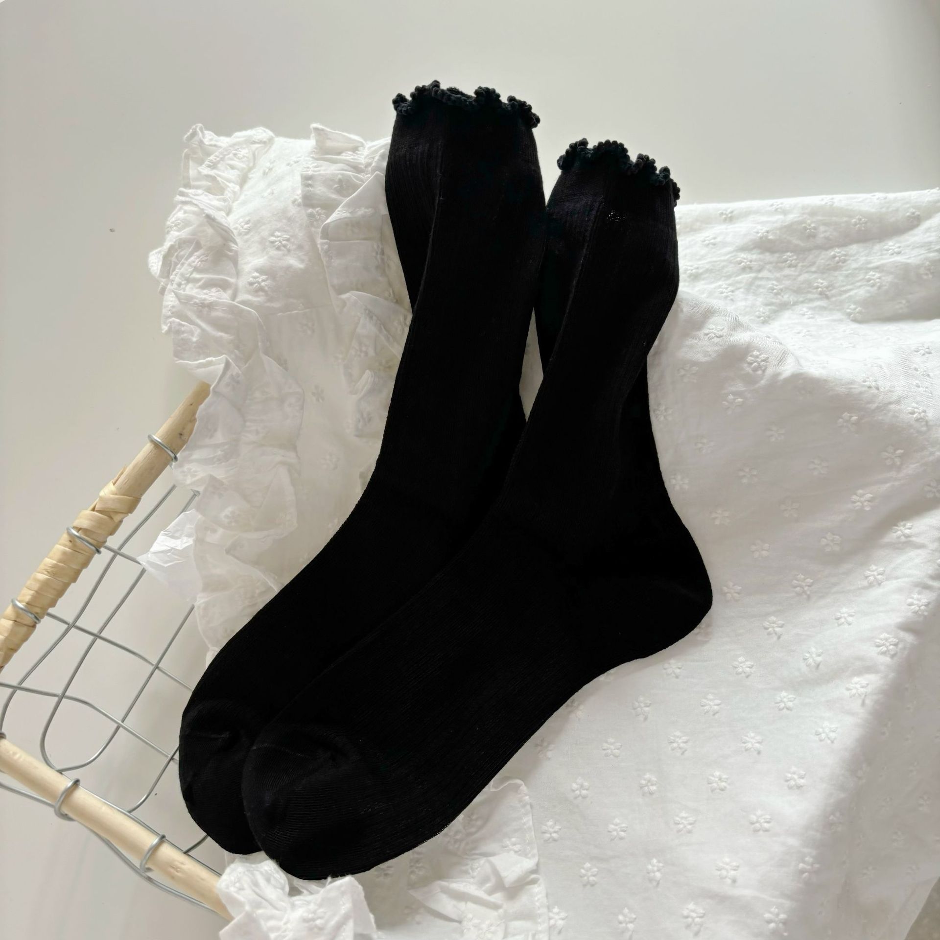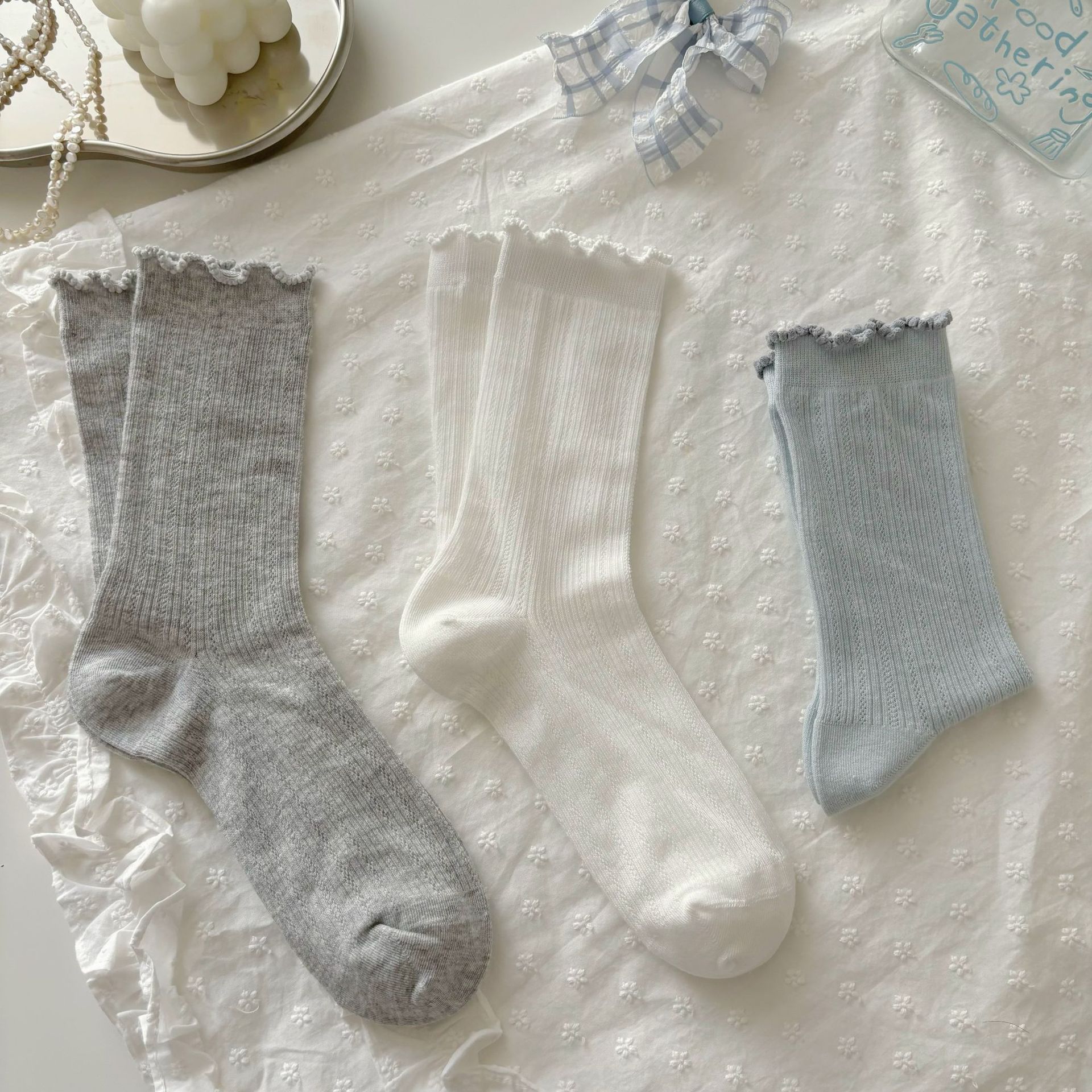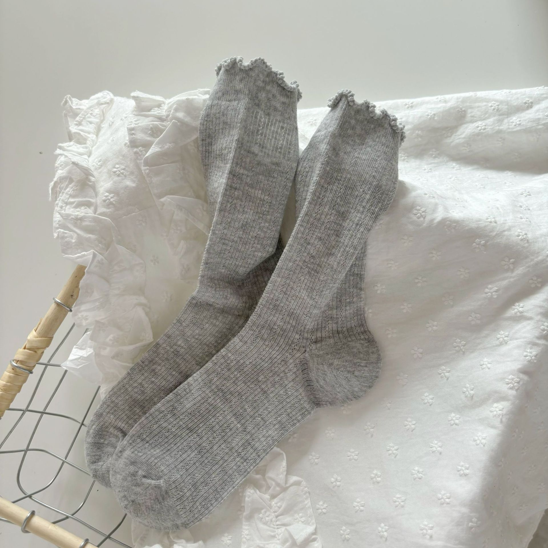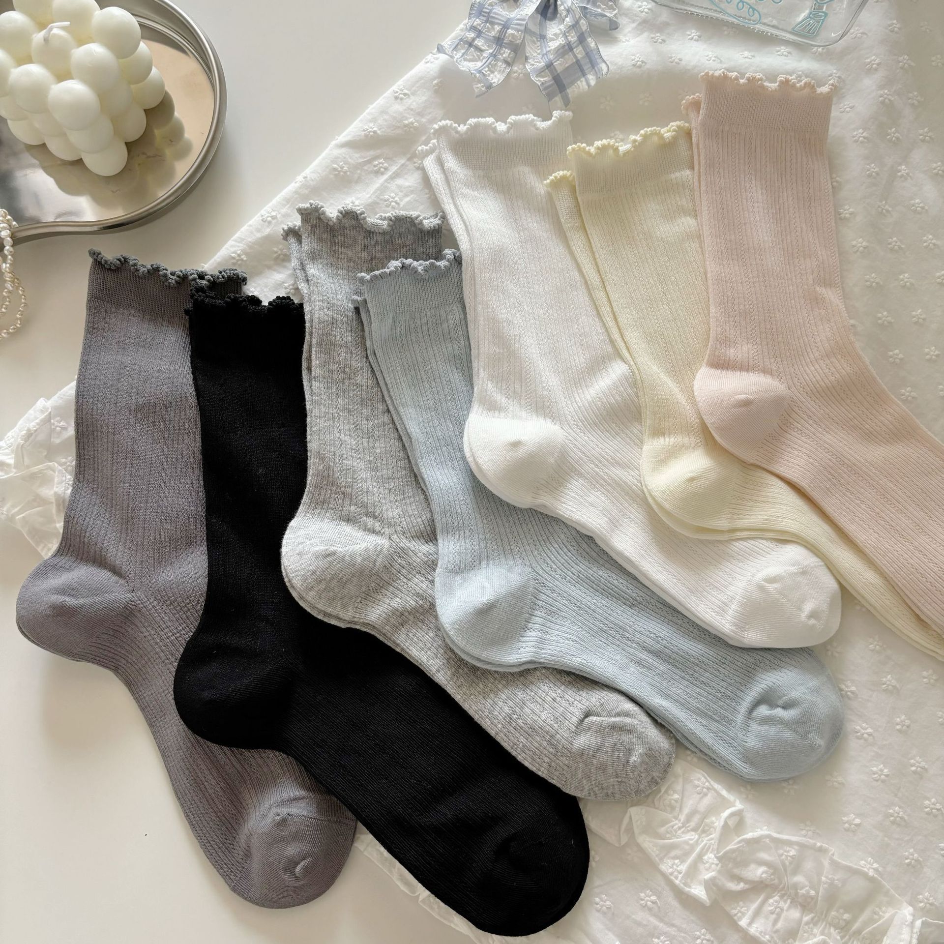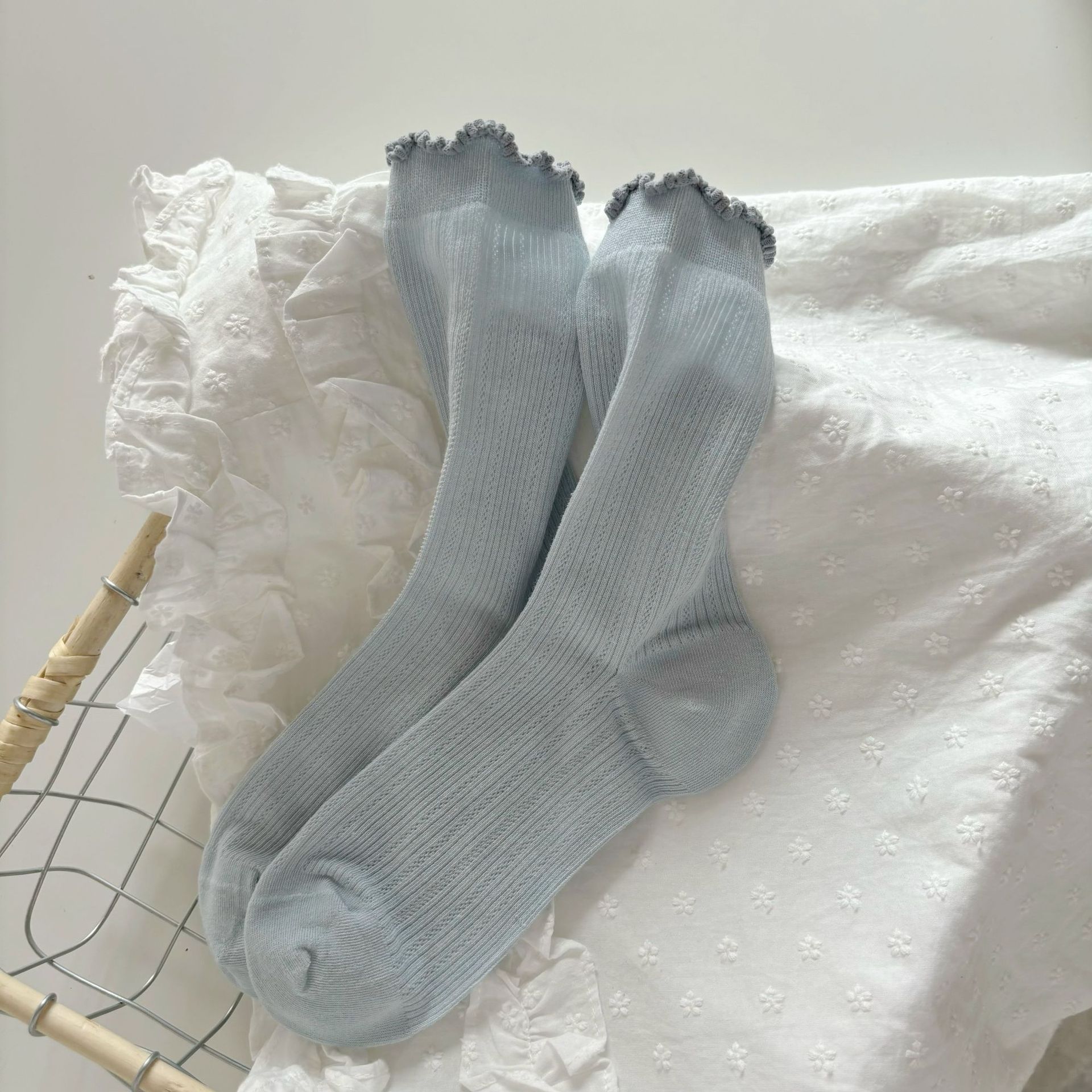 여름 얇은 흰색 양말 여성용 중공 튜브 양말 ins 슈퍼 일본식 달콤한 레이스 양말 뼈없는 면 양말