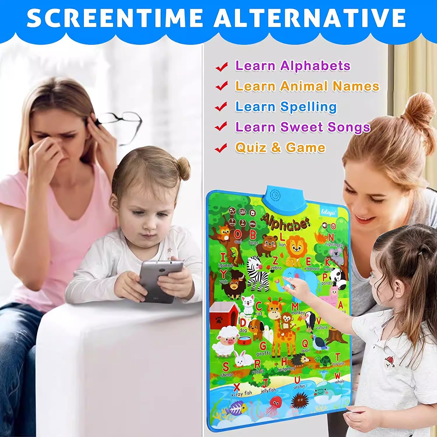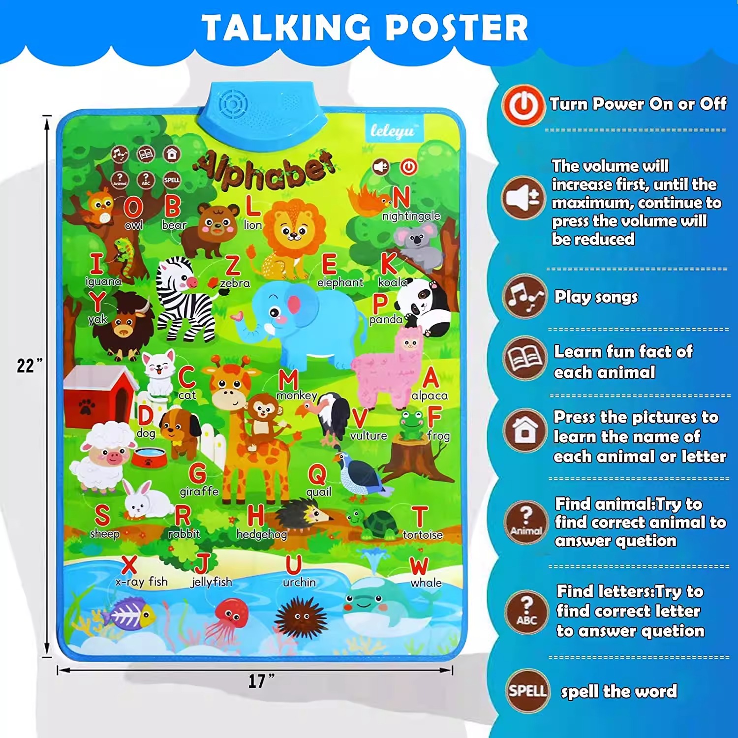 영어 오디오 조기 교육 벽 차트 동물 알파벳 인식 순수 영어 사운드 조기 교육 벽 차트 교육 장난감스토어 가기