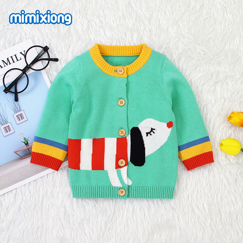 Ins 뜨거운 판매 어린이 코트 만화 개 자카드 니트 카디건스토어 가기