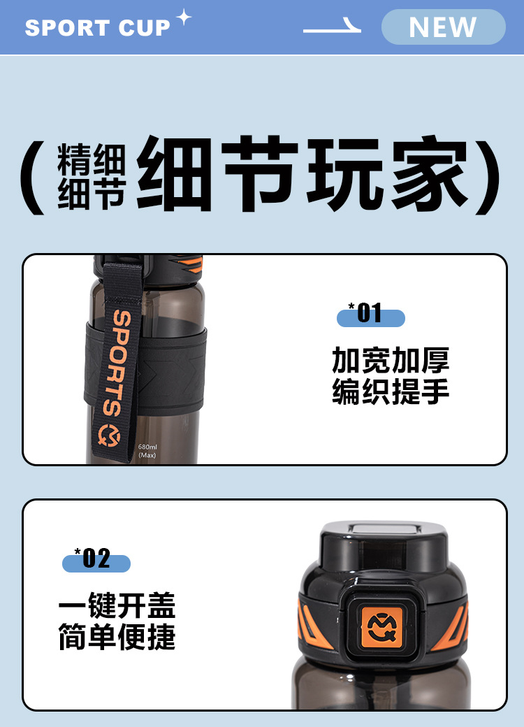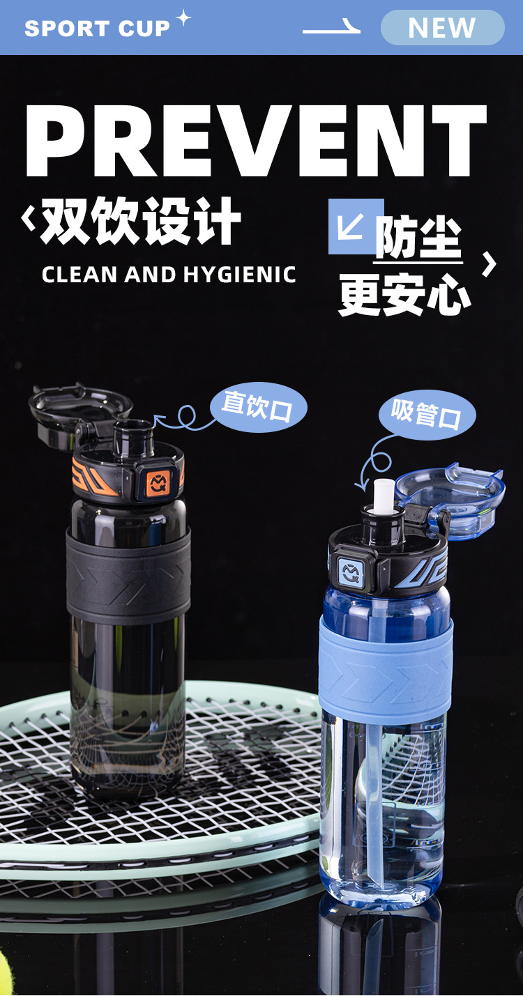 새로운 대용량 스포츠 워터 컵 학생 피트니스 물병 더블 마시는 밀짚 컵 휴대용 농구 컵 플라스틱 컵