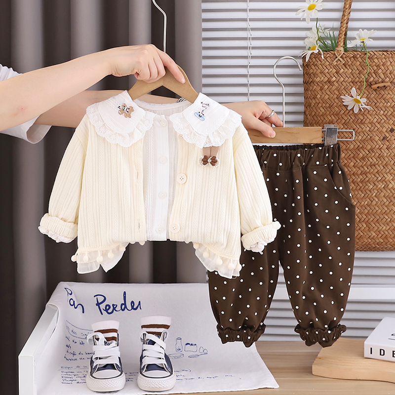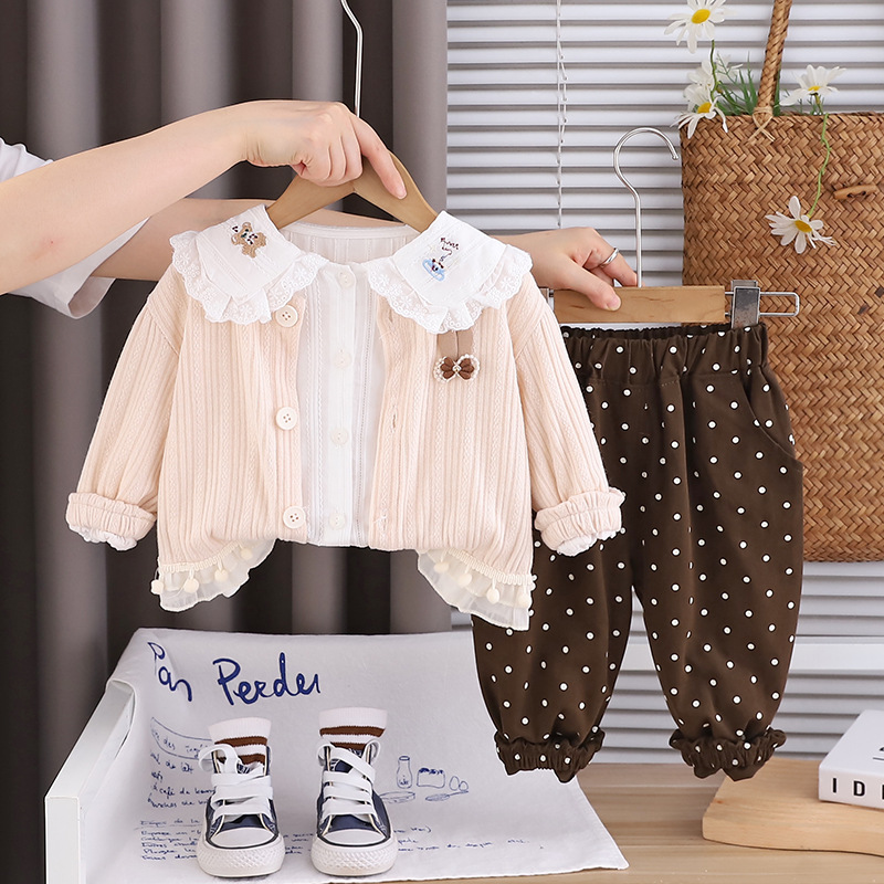 여자 가을 정장 공주 카디건 코트 아기 2025 새로운 봄, 가을 옷 아기 소녀 가을 3 피스 세트스토어 가기