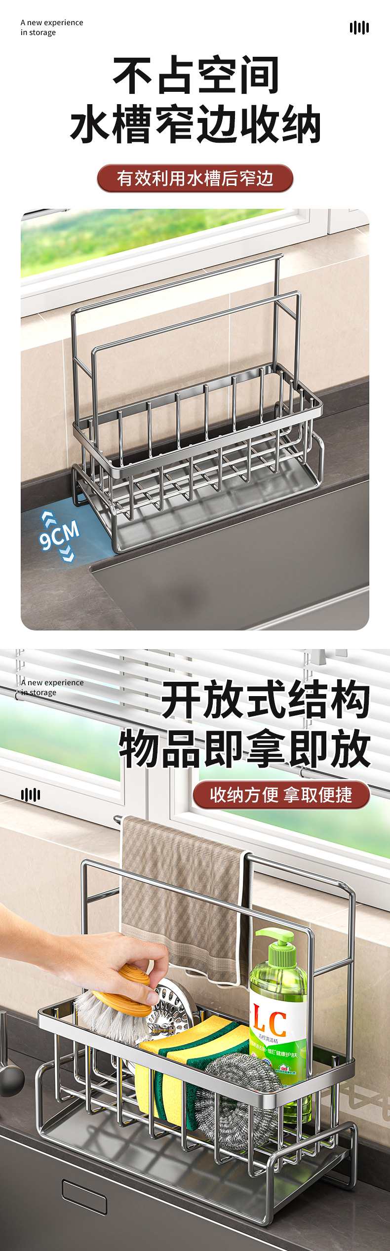 스테인레스 스틸 주방 조리대 스폰지 배수구 싱크대 주방 세제 행주 보관함 가정용스토어 가기