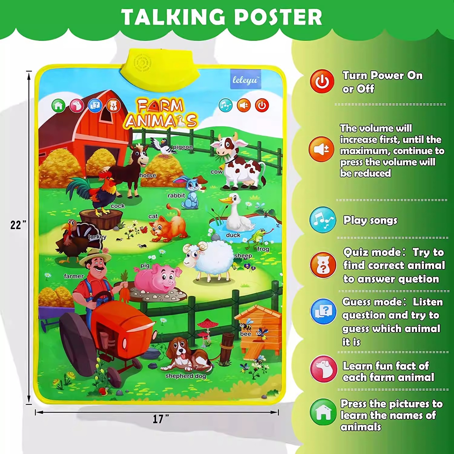 영어 오디오 조기 교육 벽 차트 농장 동물 인식 순수 영어 오디오 조기 교육 벽 차트 교육 장난감