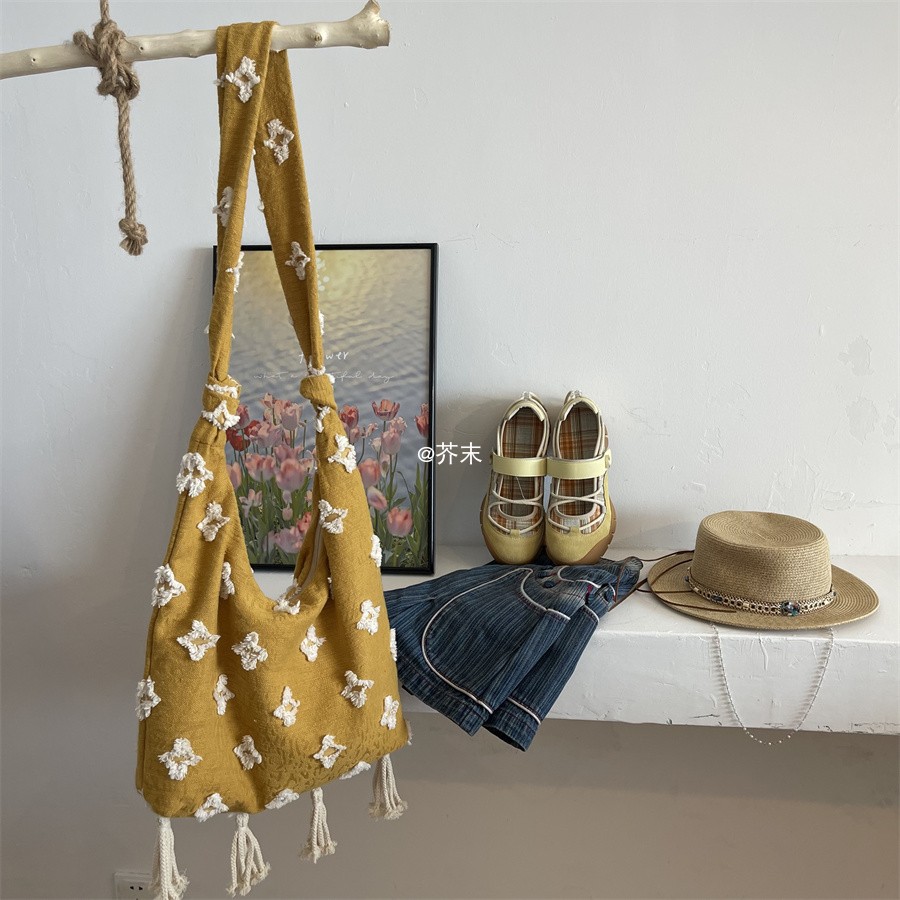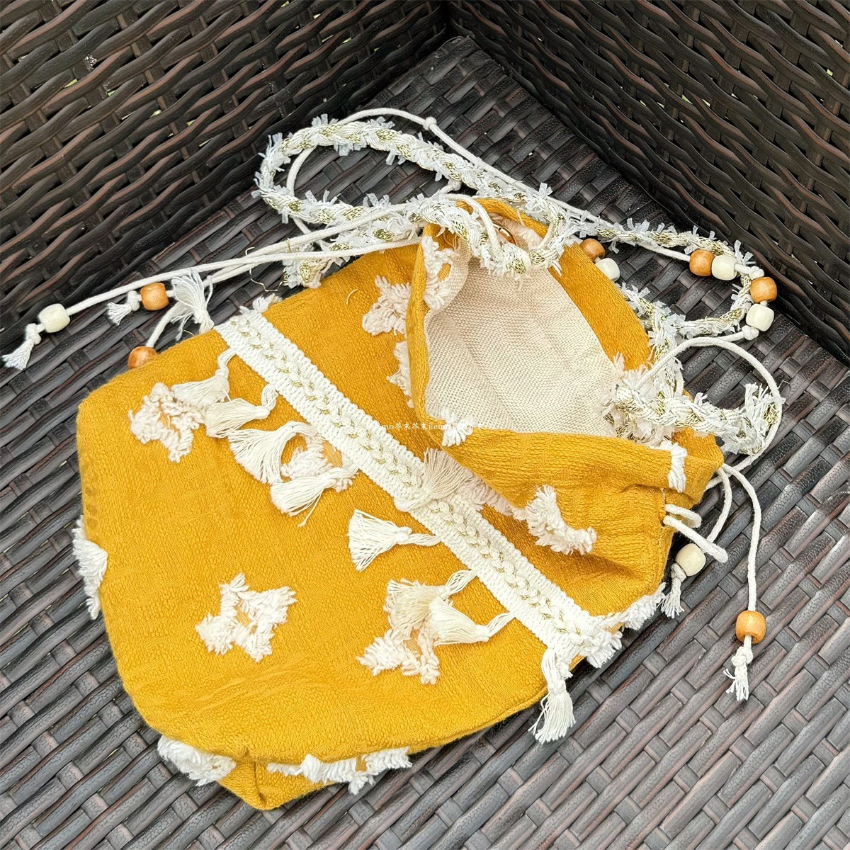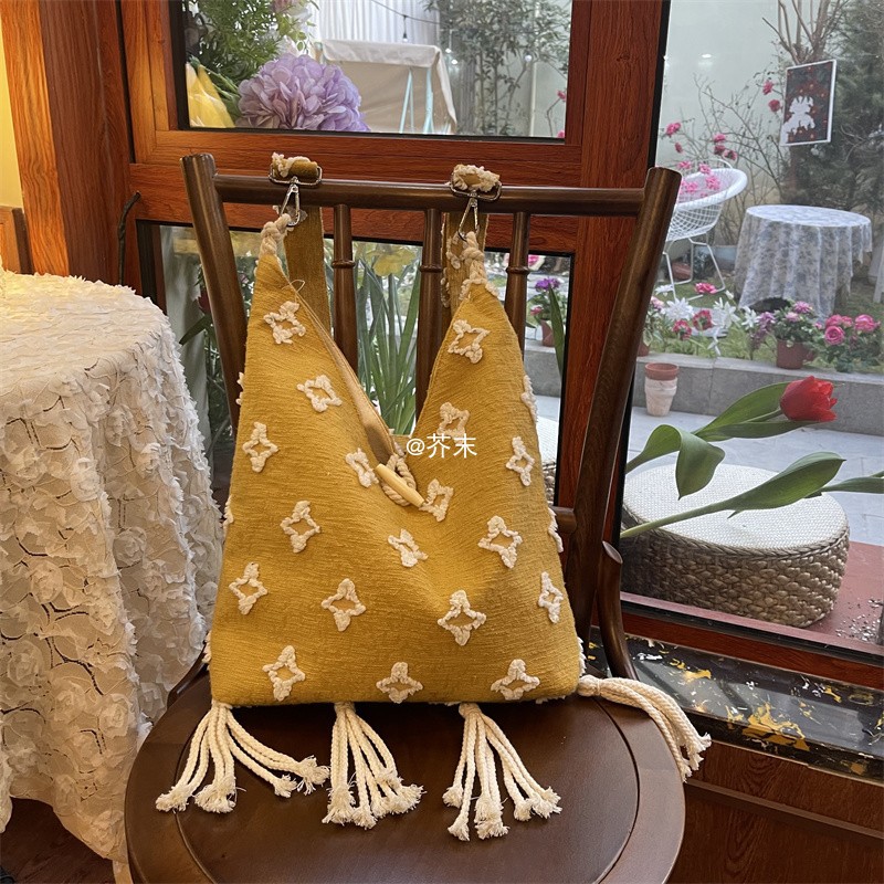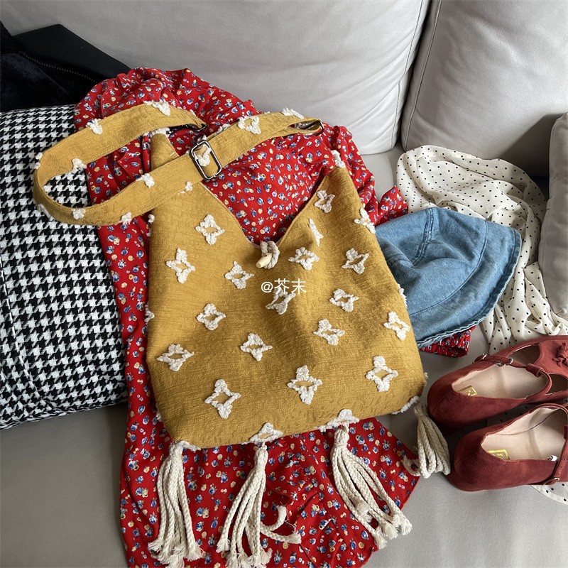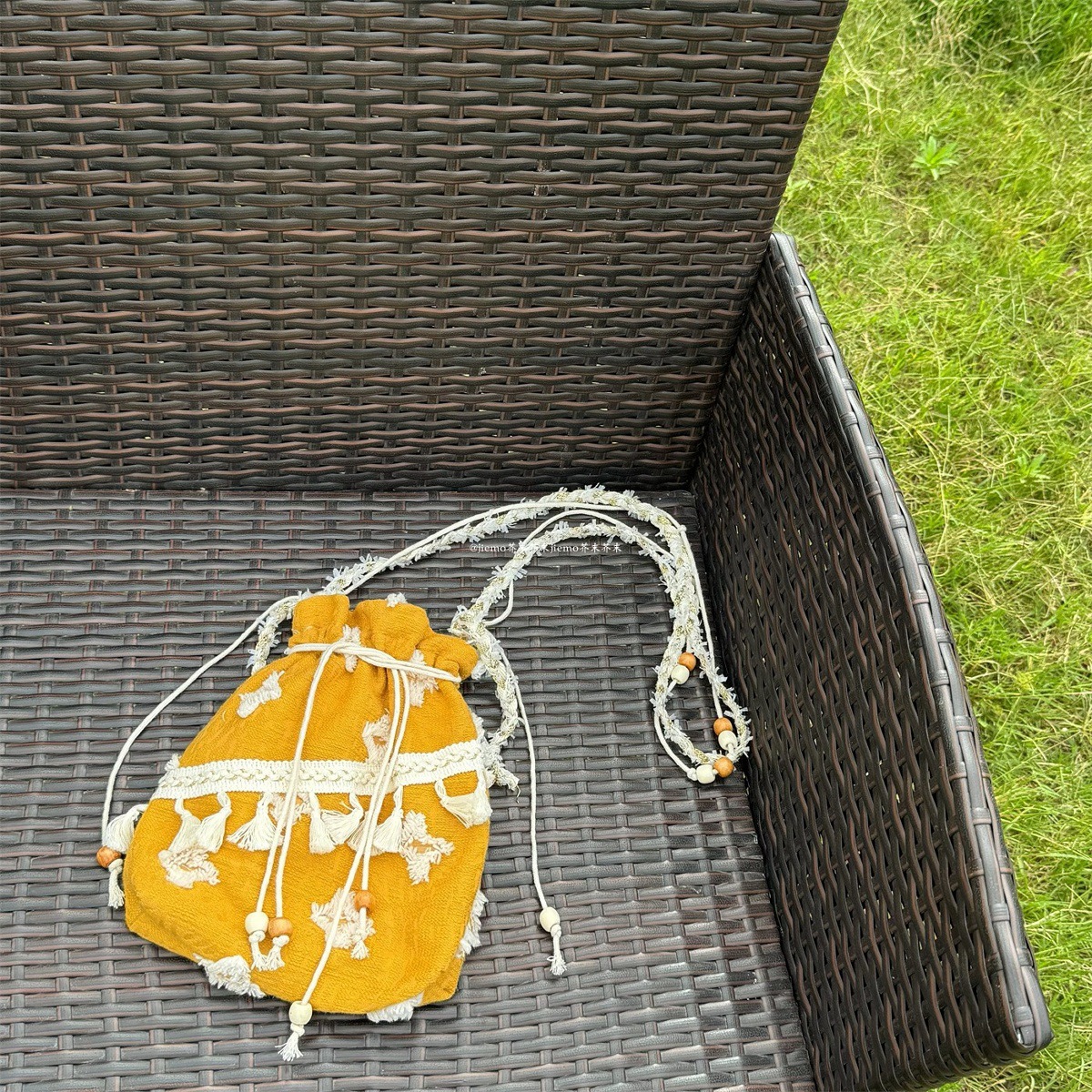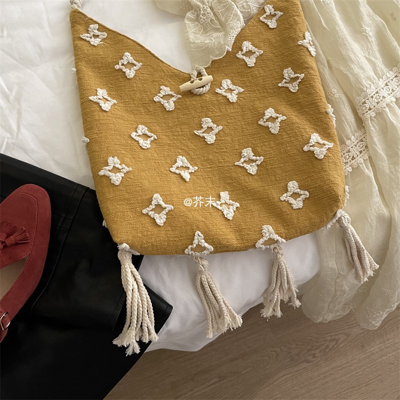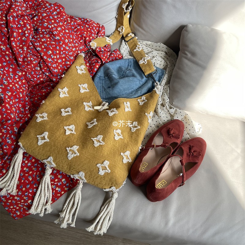 여행 크로스백 노란색 태슬 캔버스 백 보헤미안 콘트라스트 컬러 여성용 가방 대용량 다용도 숄더백스토어 가기