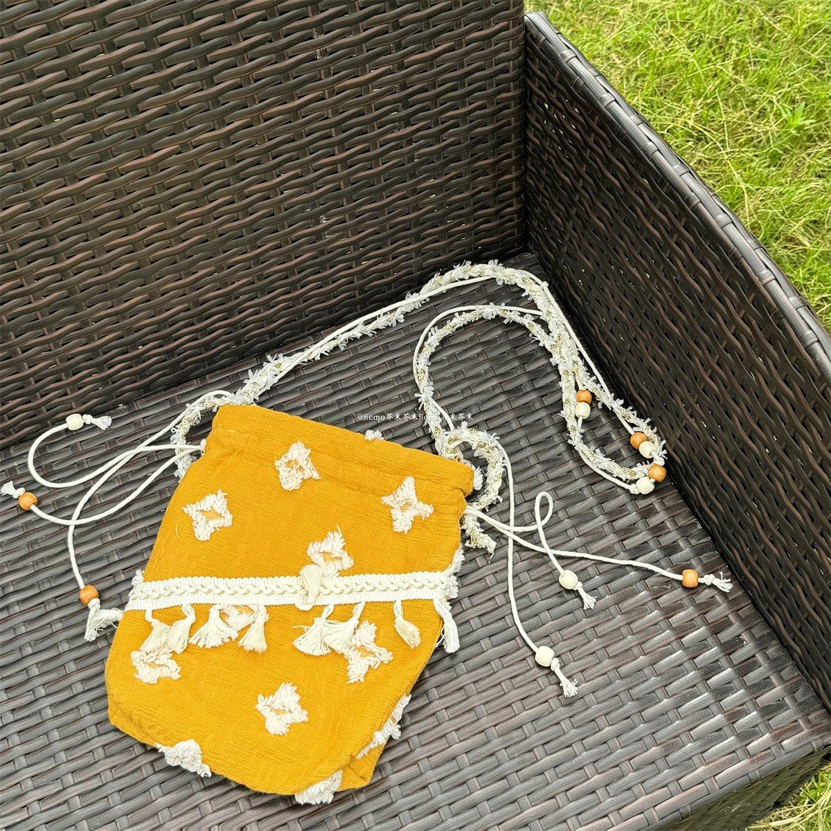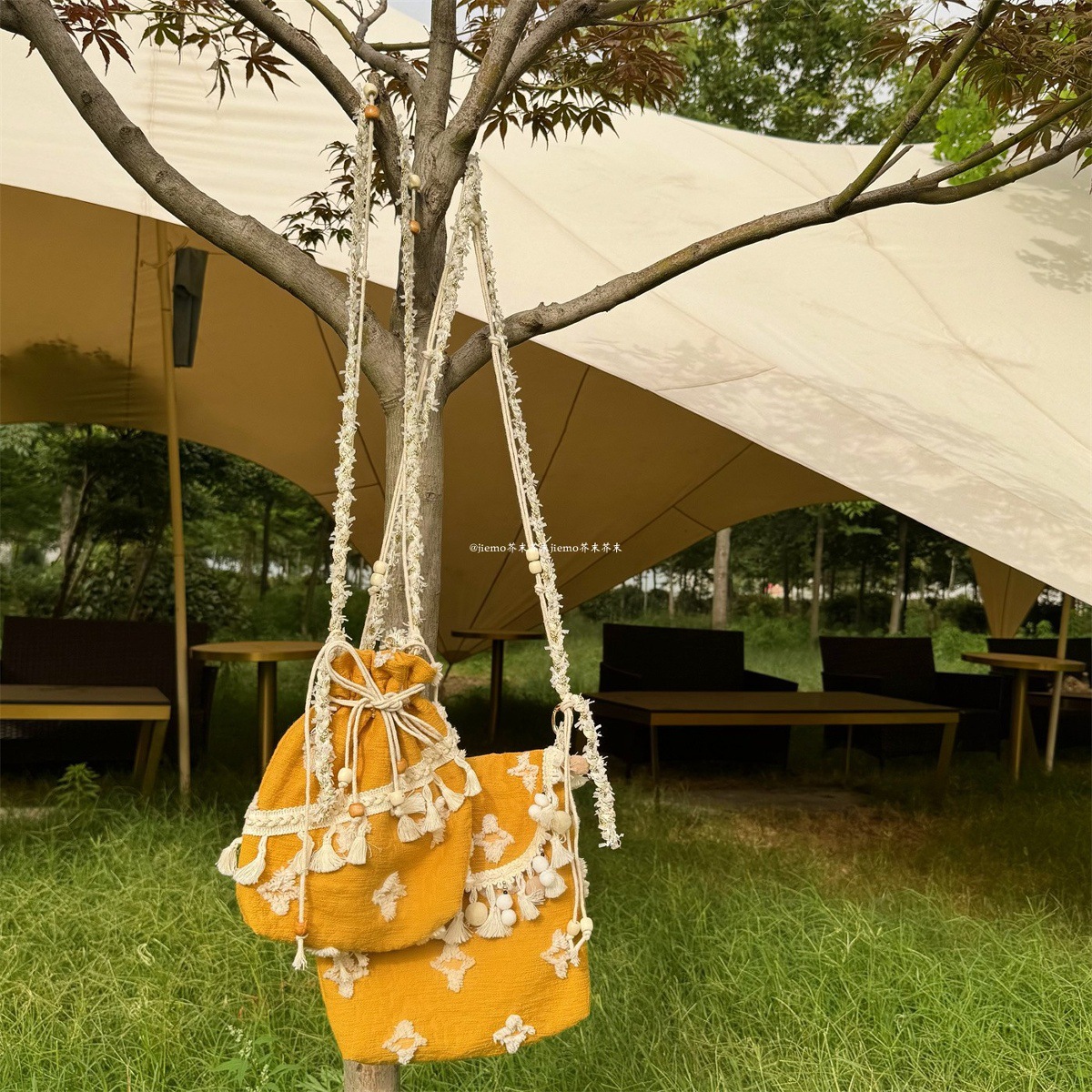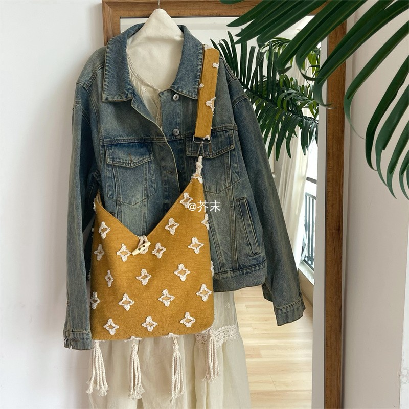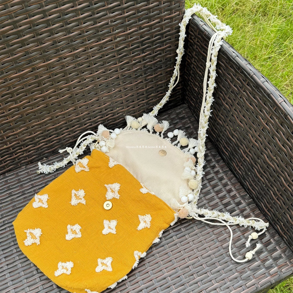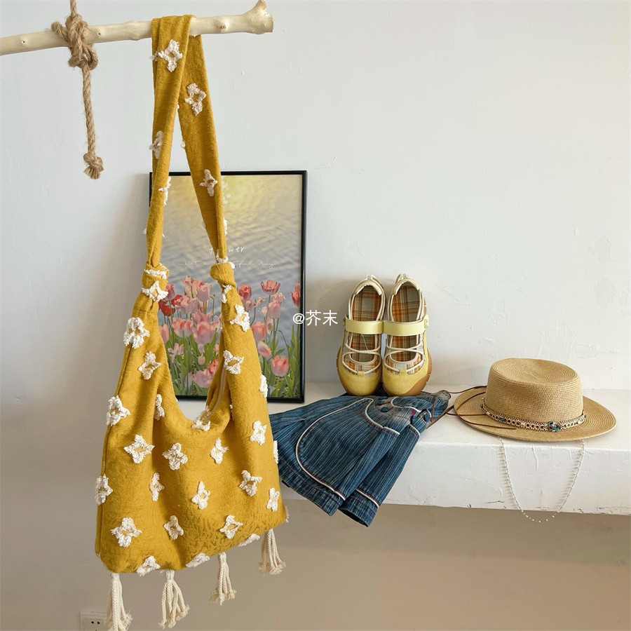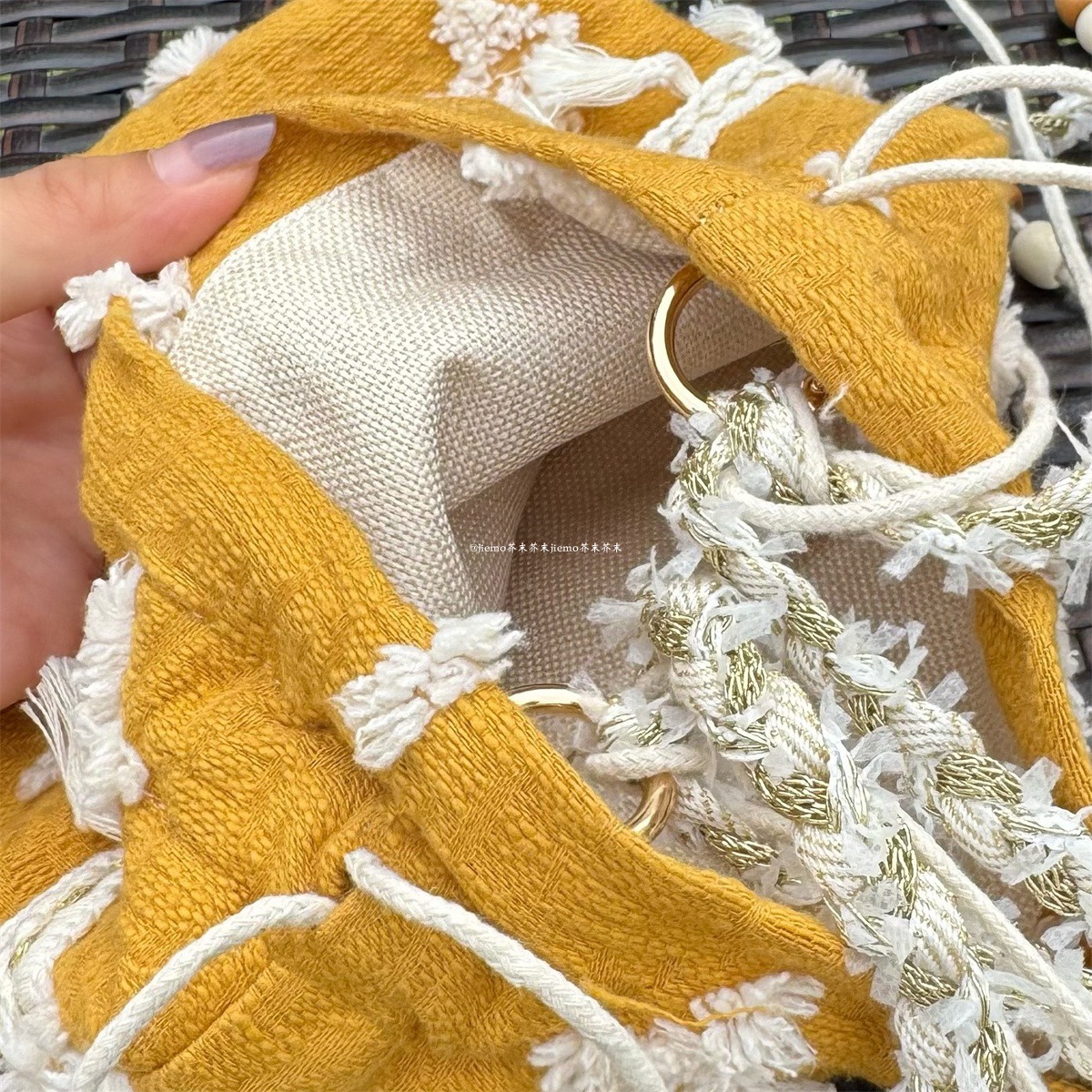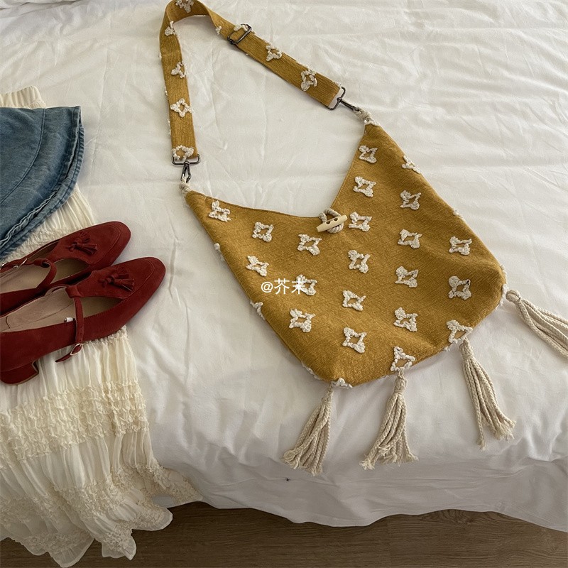 여행 크로스백 노란색 태슬 캔버스 백 보헤미안 콘트라스트 컬러 여성용 가방 대용량 다용도 숄더백스토어 가기