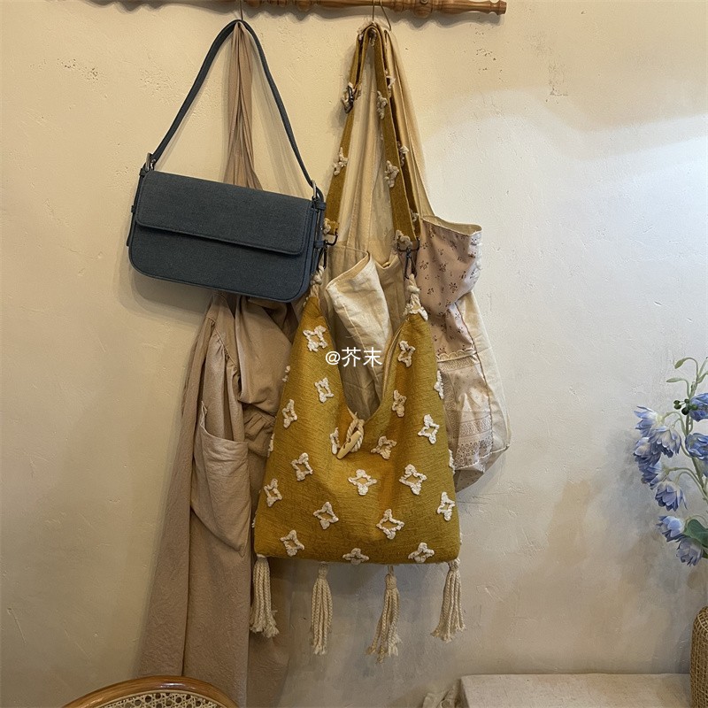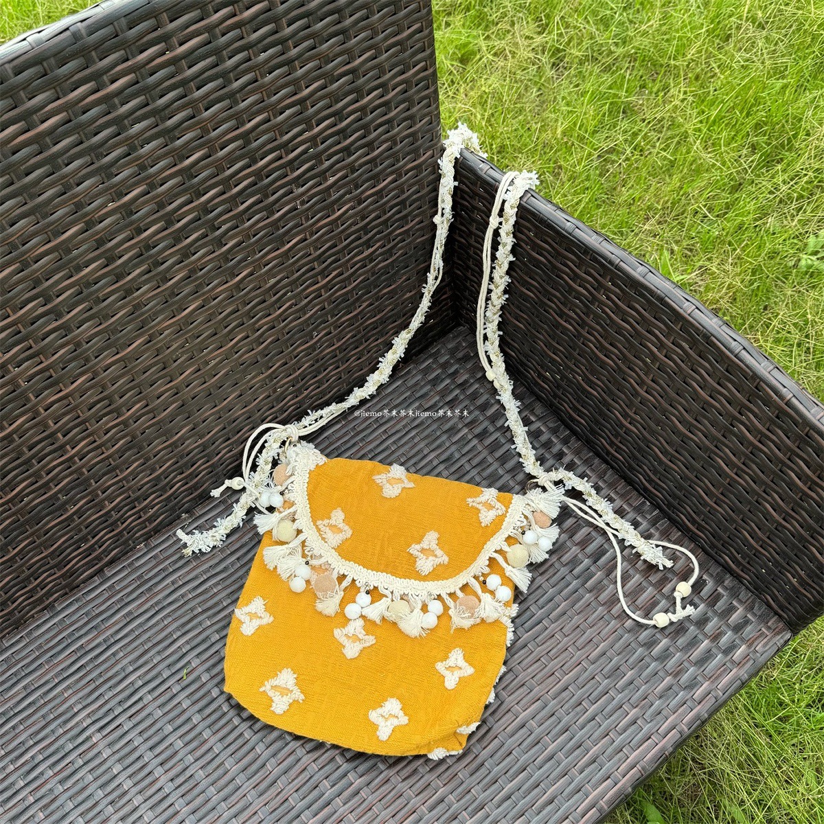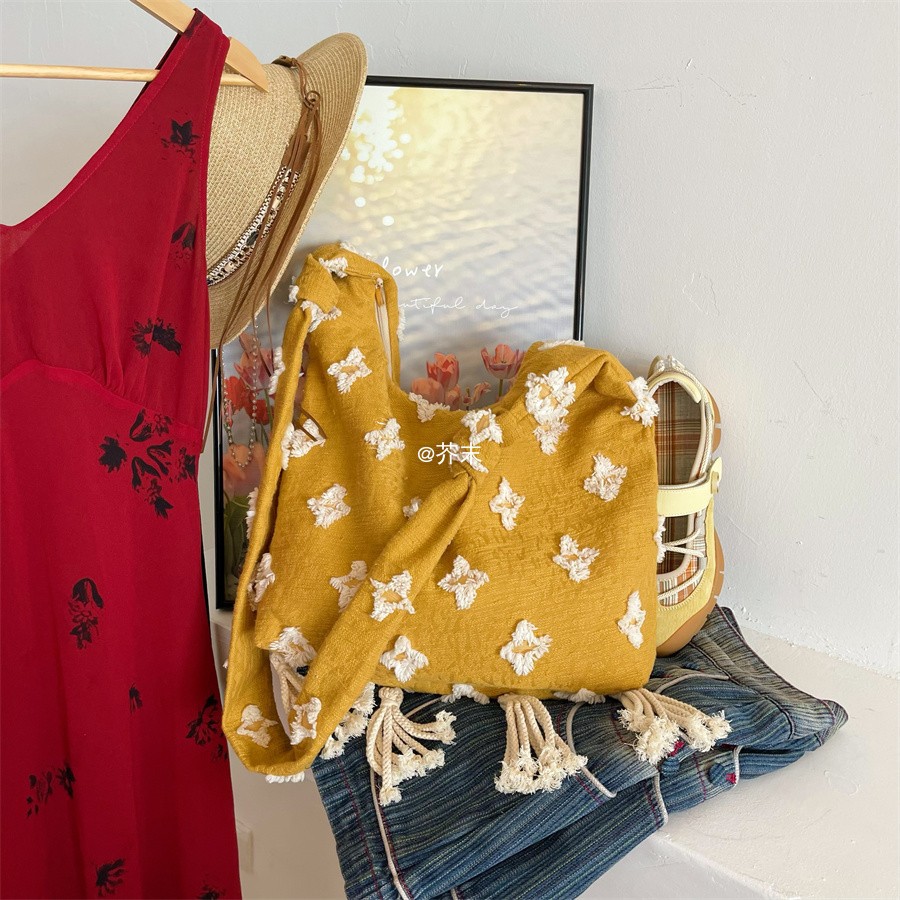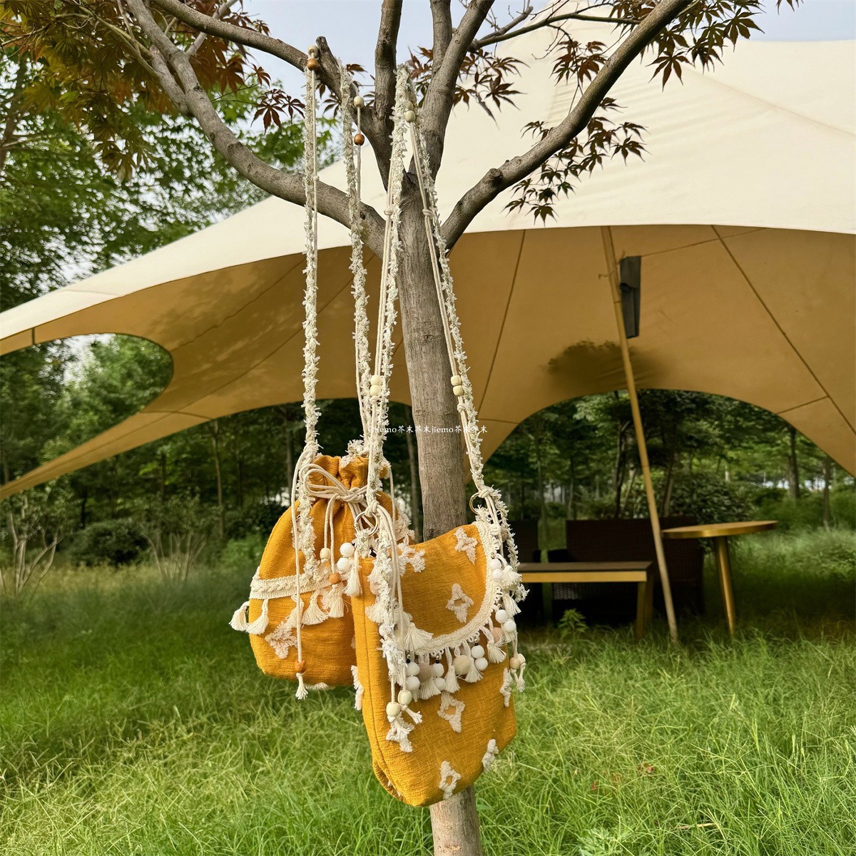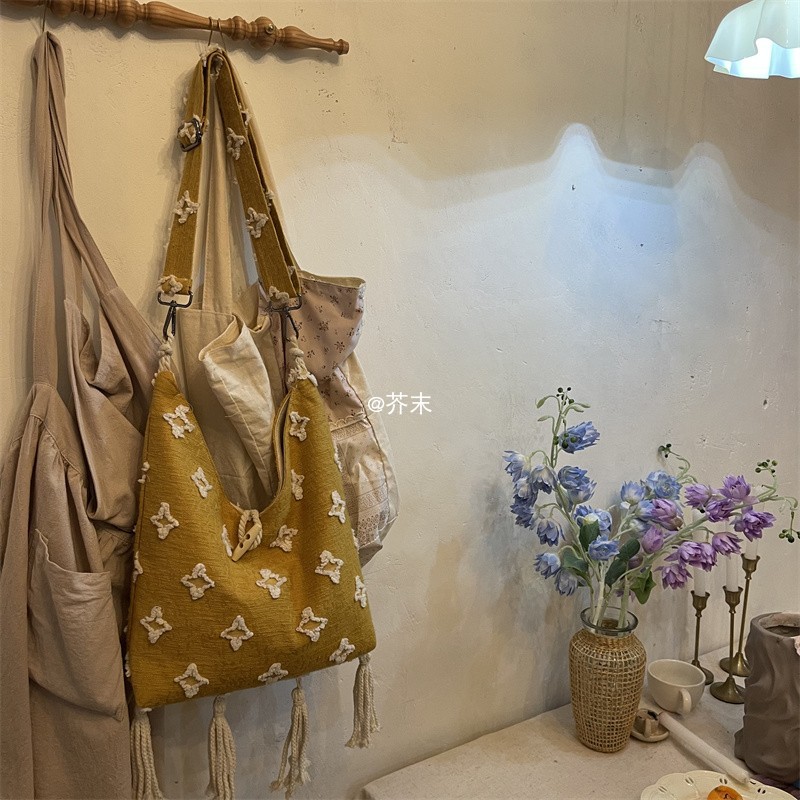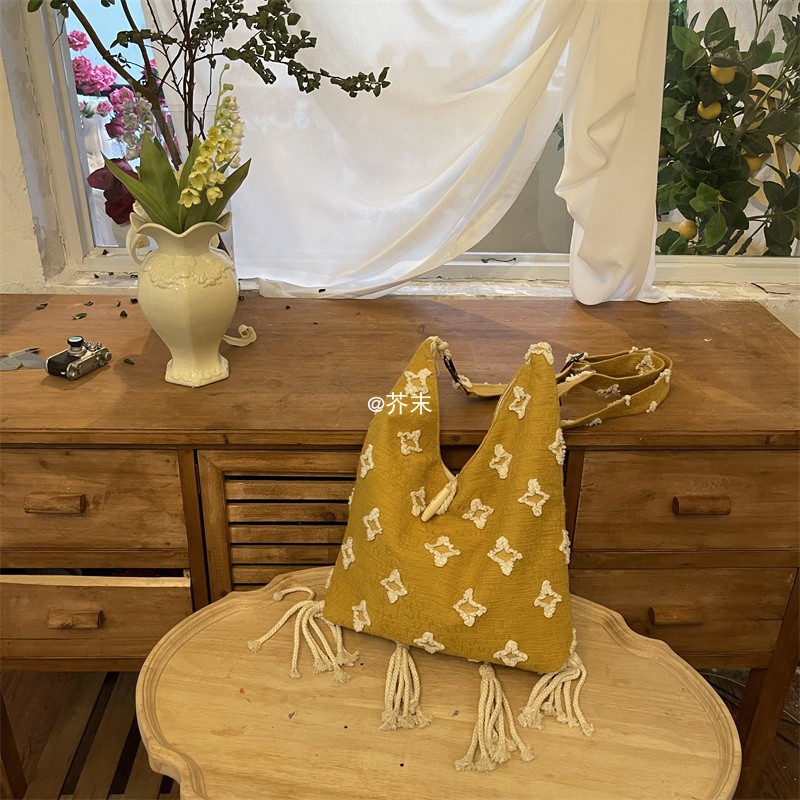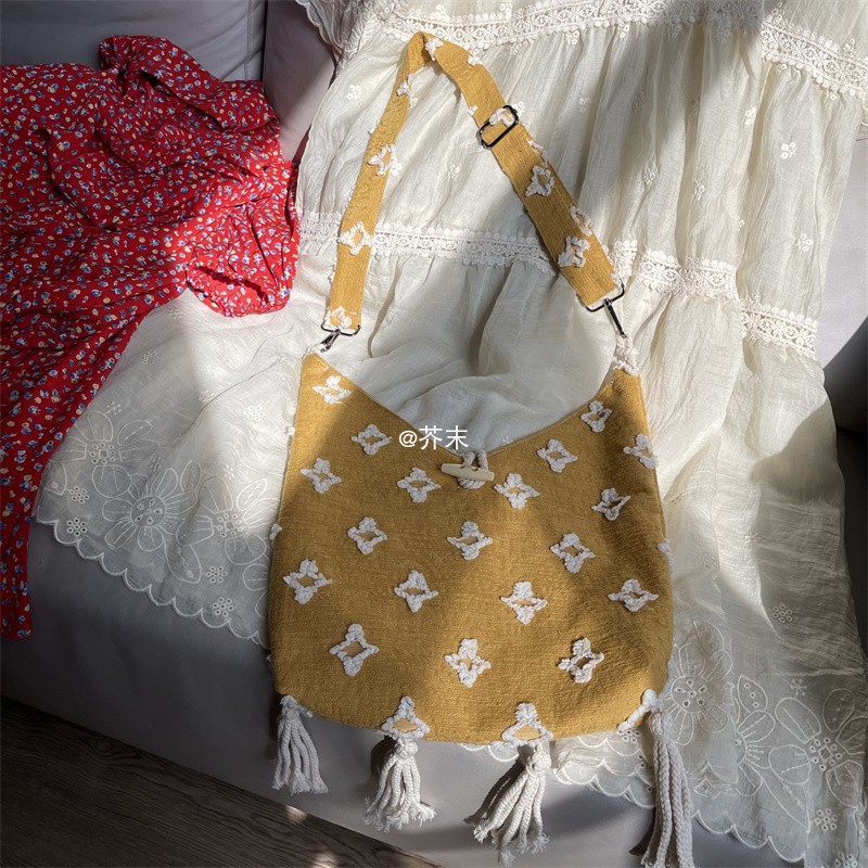 여행 크로스백 노란색 태슬 캔버스 백 보헤미안 콘트라스트 컬러 여성용 가방 대용량 다용도 숄더백스토어 가기