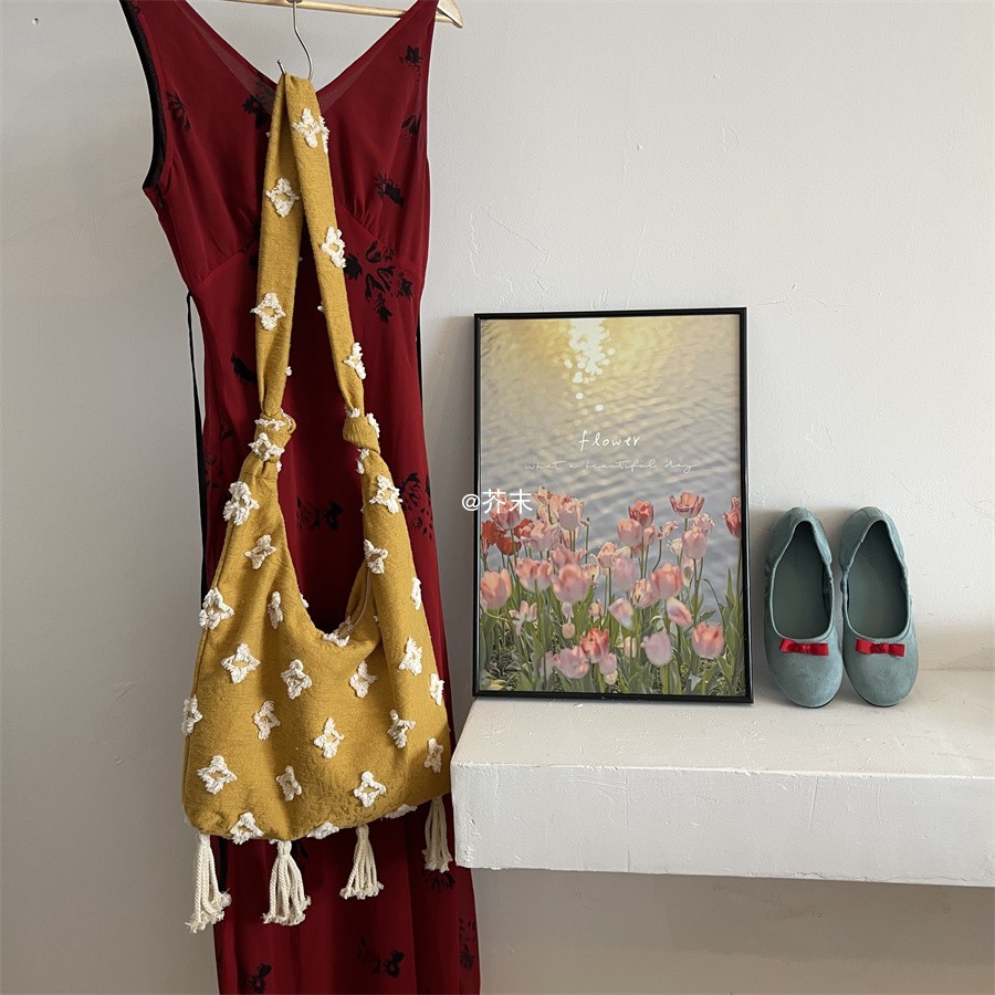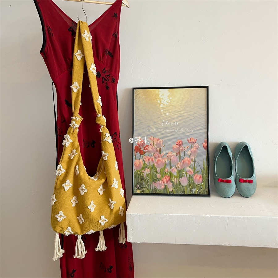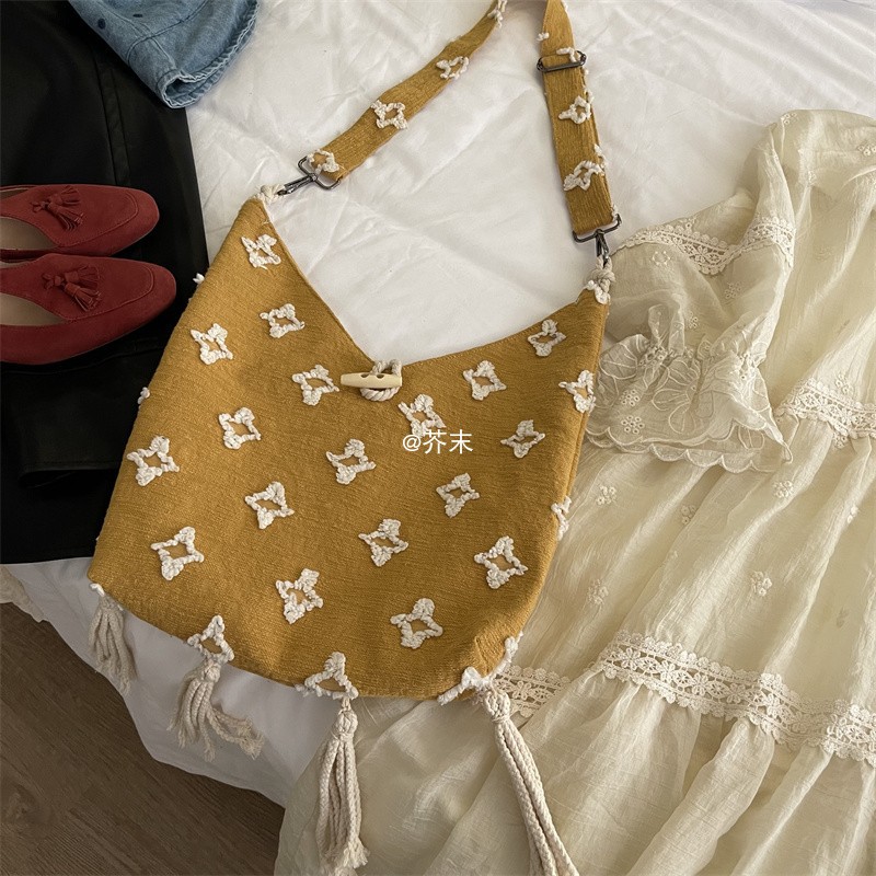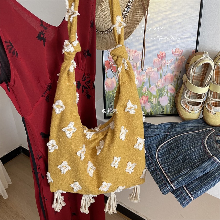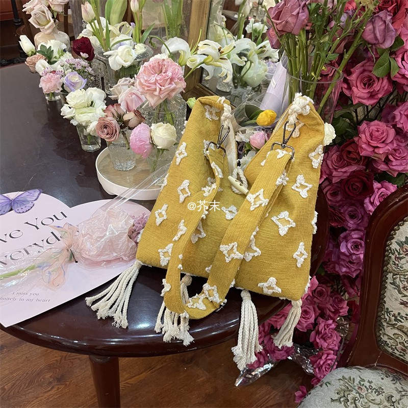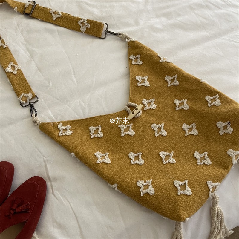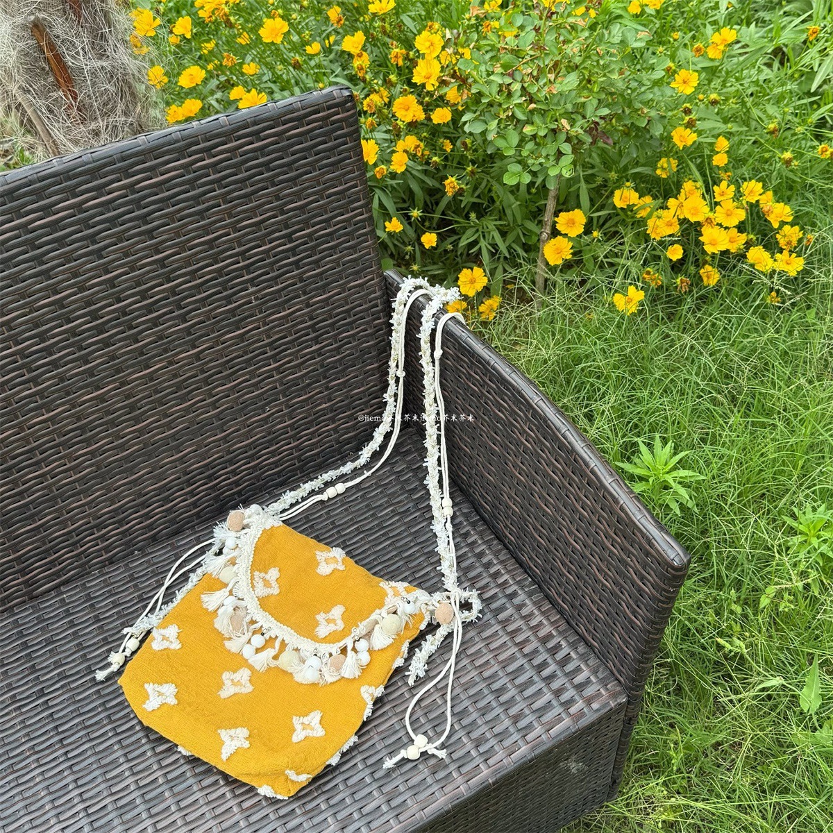 여행 크로스백 노란색 태슬 캔버스 백 보헤미안 콘트라스트 컬러 여성용 가방 대용량 다용도 숄더백스토어 가기