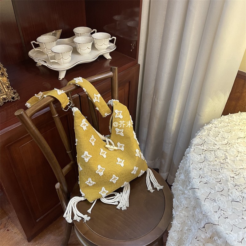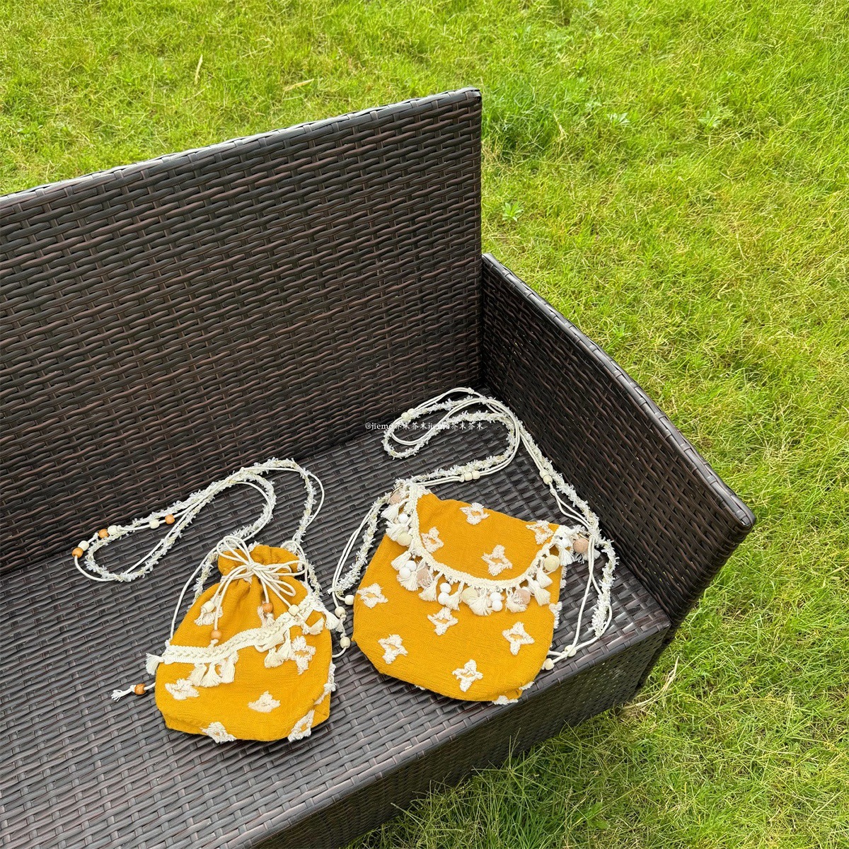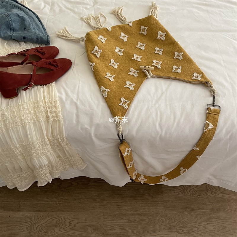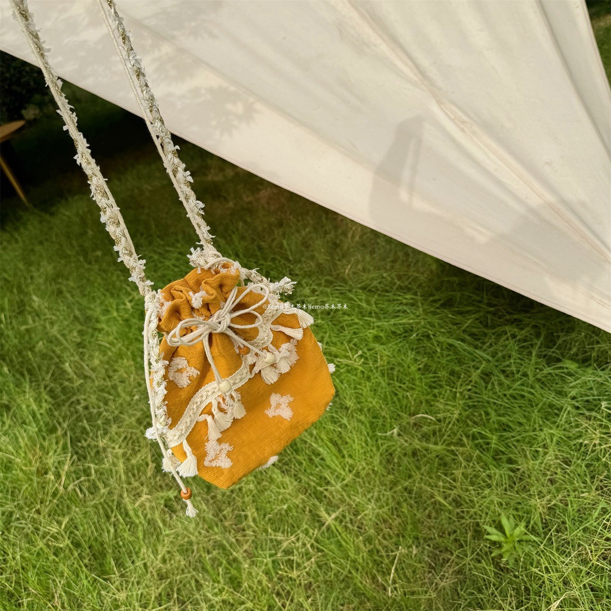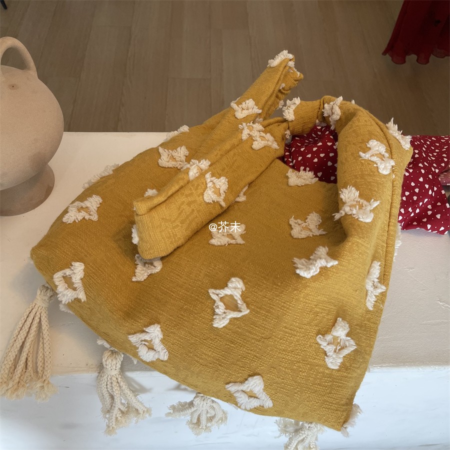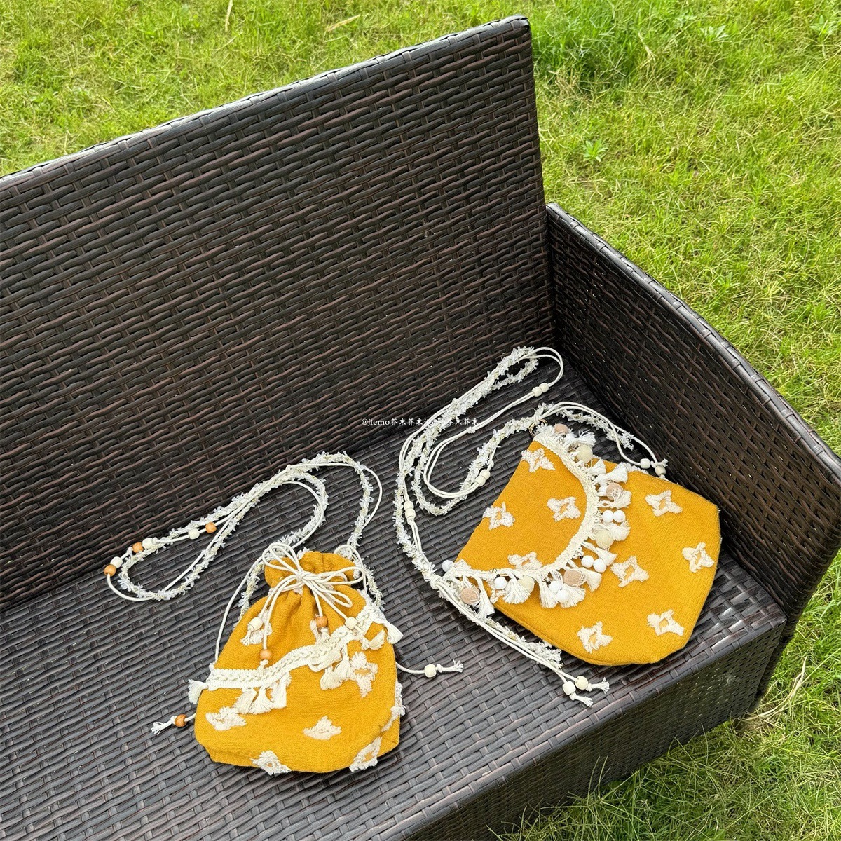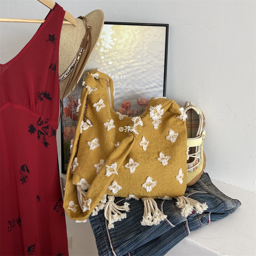 여행 크로스백 노란색 태슬 캔버스 백 보헤미안 콘트라스트 컬러 여성용 가방 대용량 다용도 숄더백스토어 가기