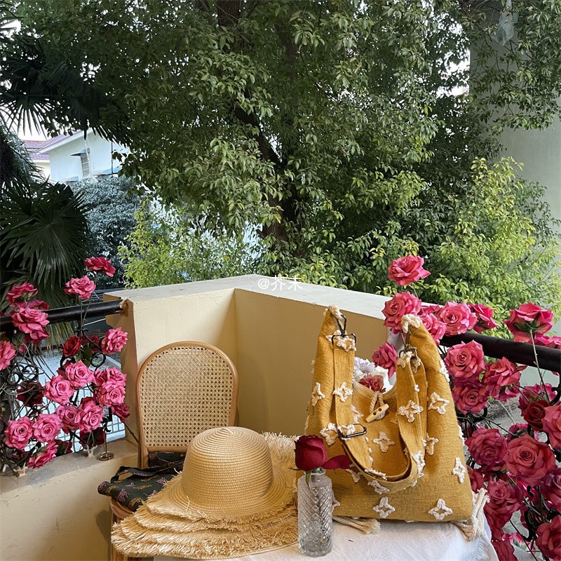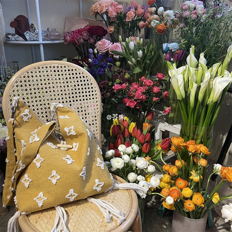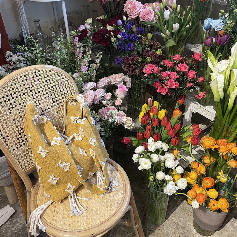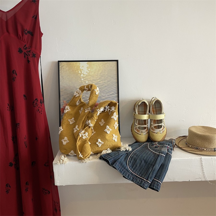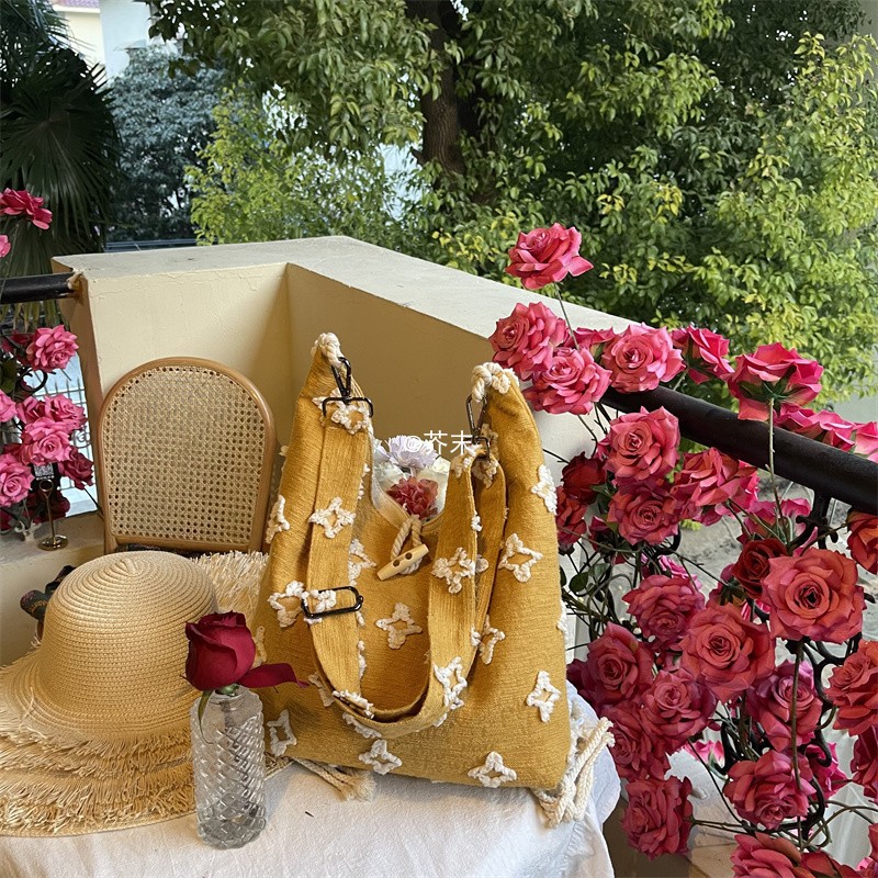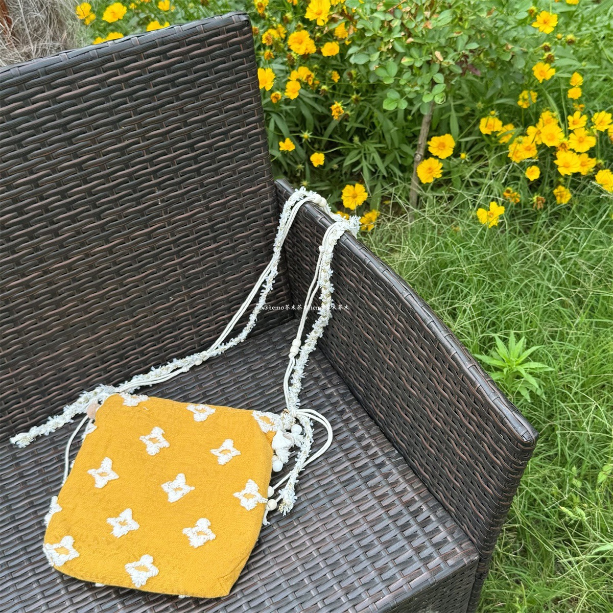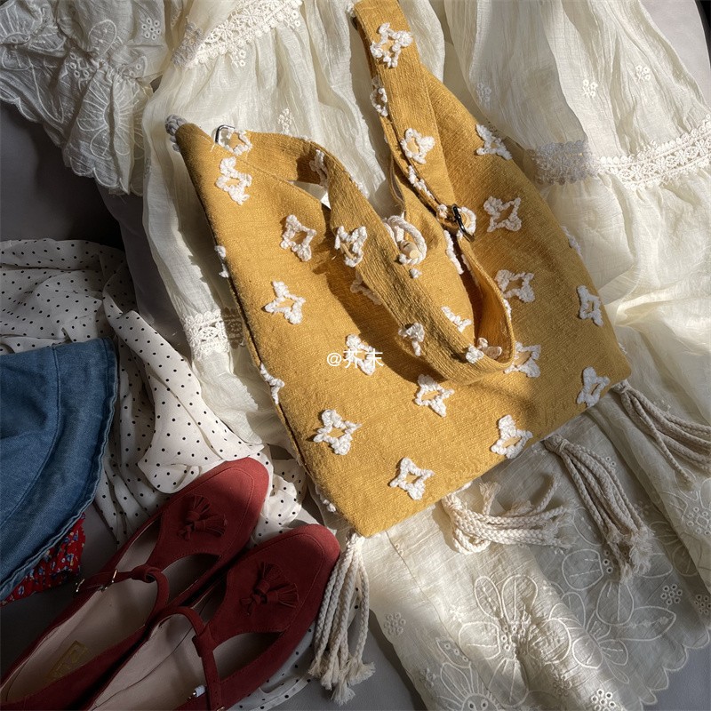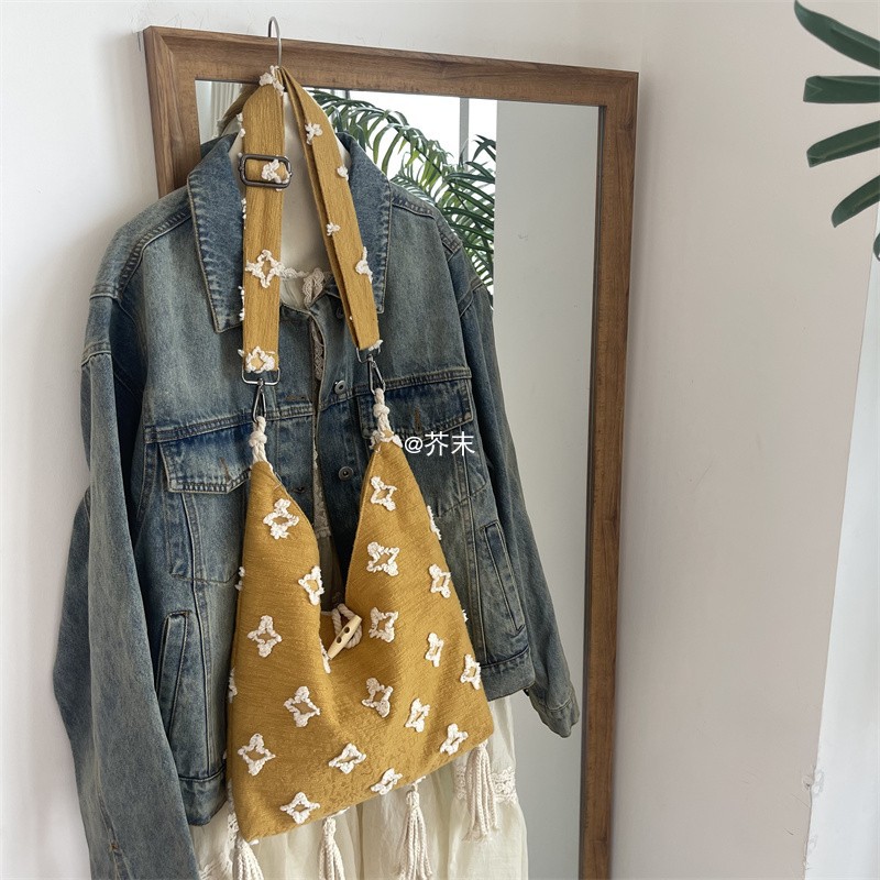 여행 크로스백 노란색 태슬 캔버스 백 보헤미안 콘트라스트 컬러 여성용 가방 대용량 다용도 숄더백스토어 가기