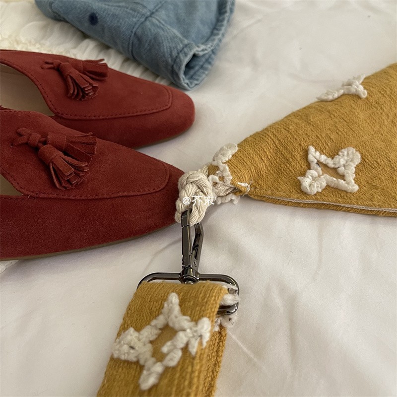 여행 크로스백 노란색 태슬 캔버스 백 보헤미안 콘트라스트 컬러 여성용 가방 대용량 다용도 숄더백