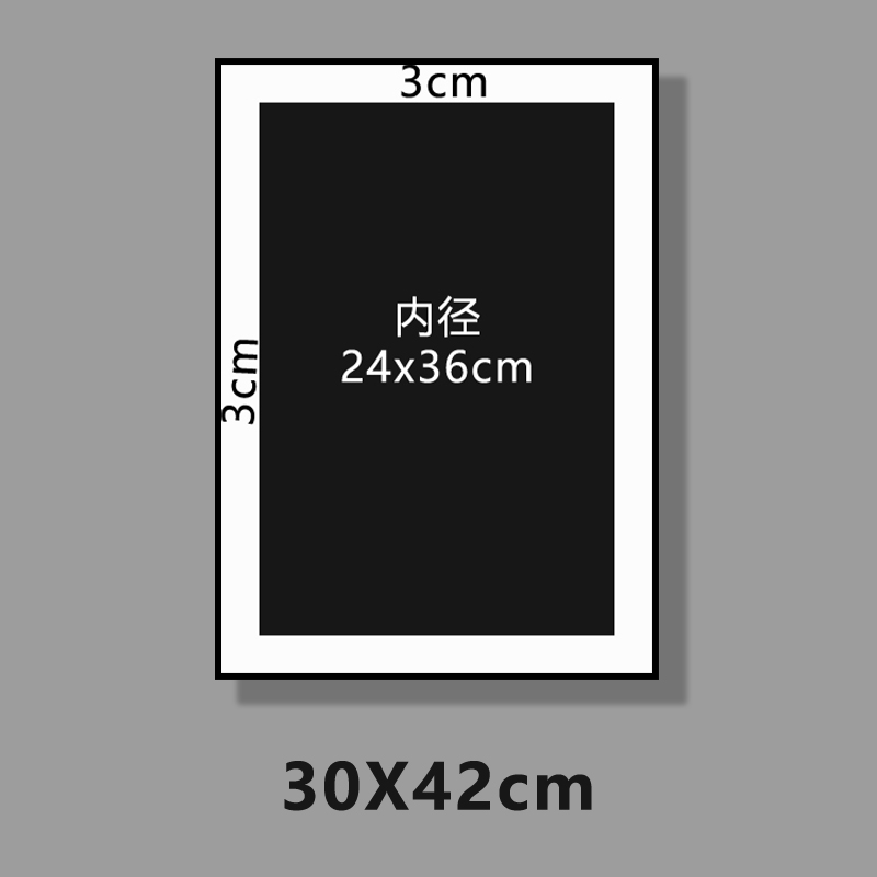 • A3 [30X42cm] 판지 개구부 24X36, 공백 3cm, 선택 프레임 + 무료 플렉시글라스