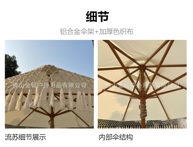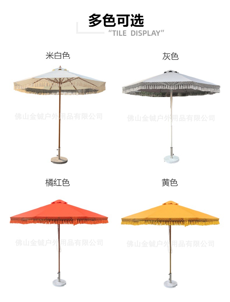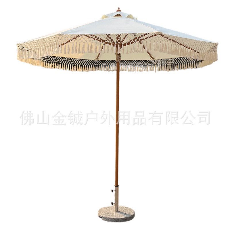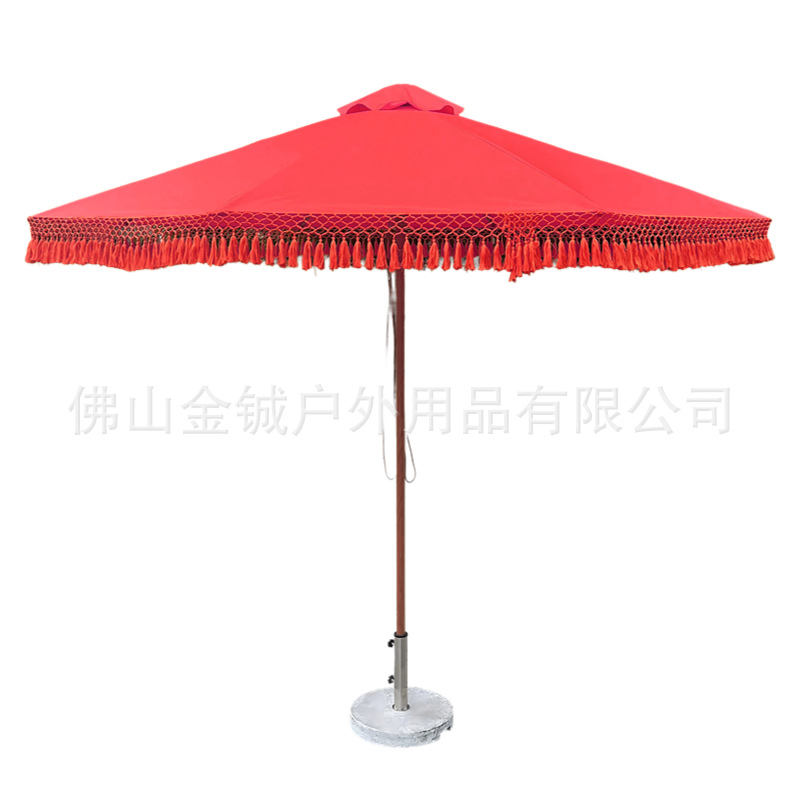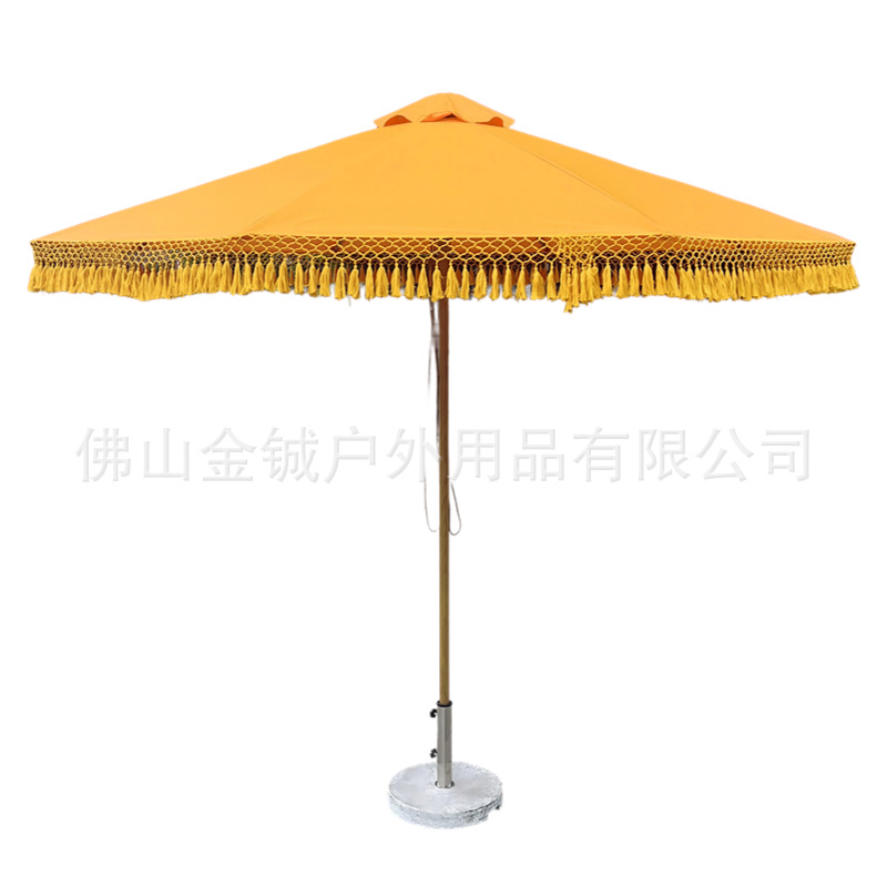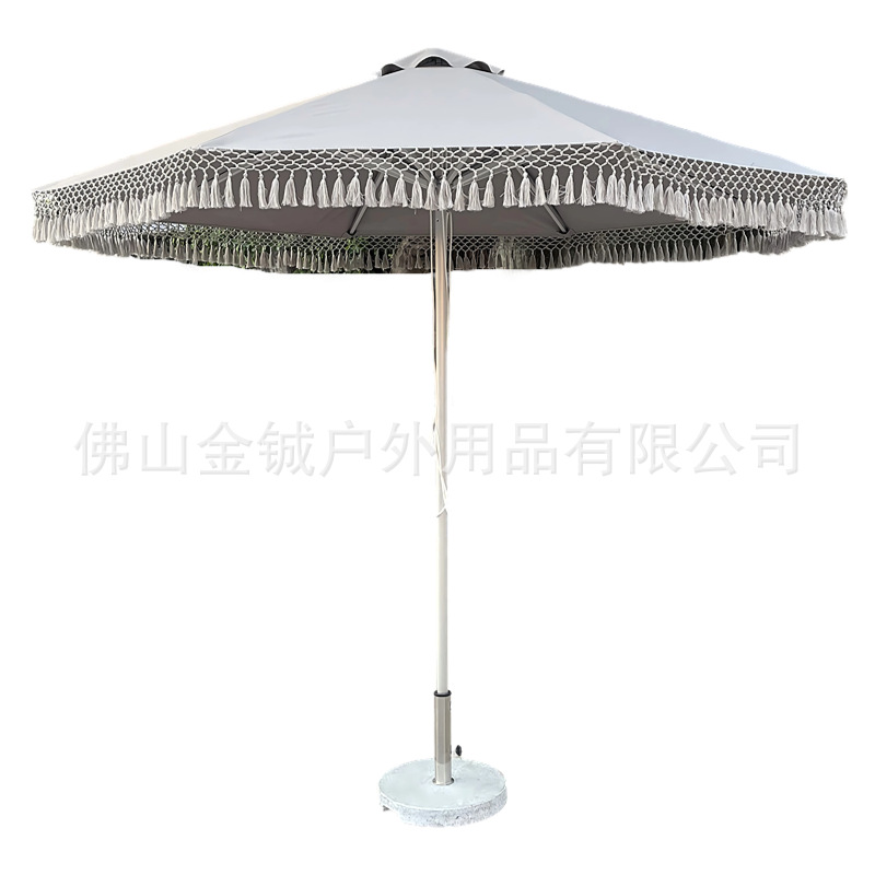 그리드형 프린지 장식 파라솔, 해변 호텔 수영장 정원용 차양 중앙 기둥 파라솔, 야외 상업용스토어 가기