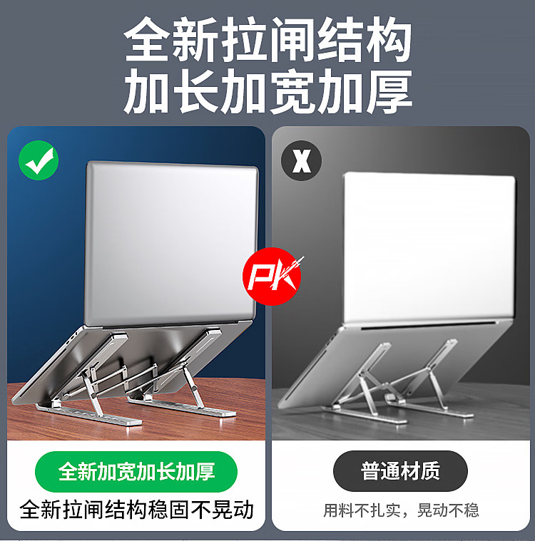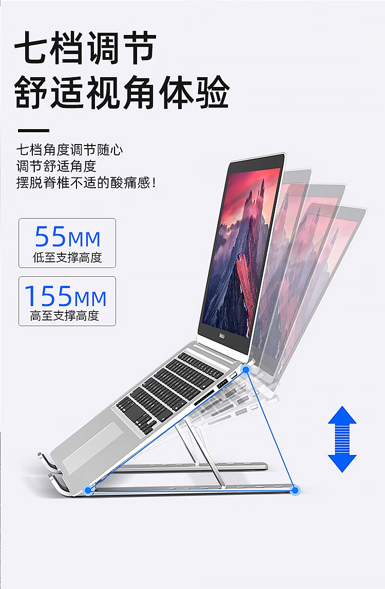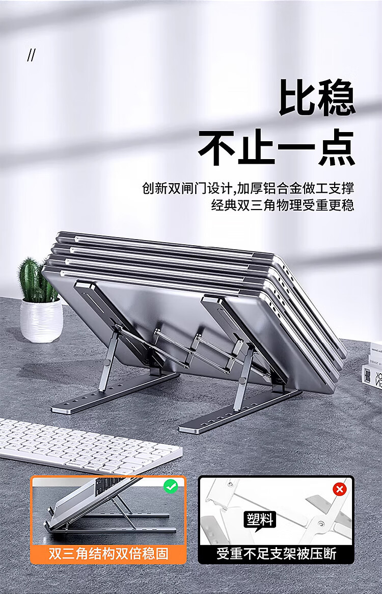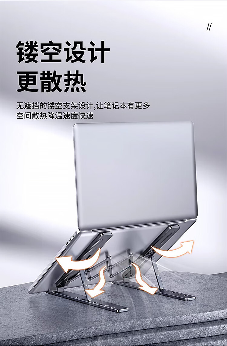 노트북 스탠드, 공중 냉각 리프팅 테이블, 높이 조절 스탠드, 휴대용 접이식 수직 금속 지지대스토어 가기