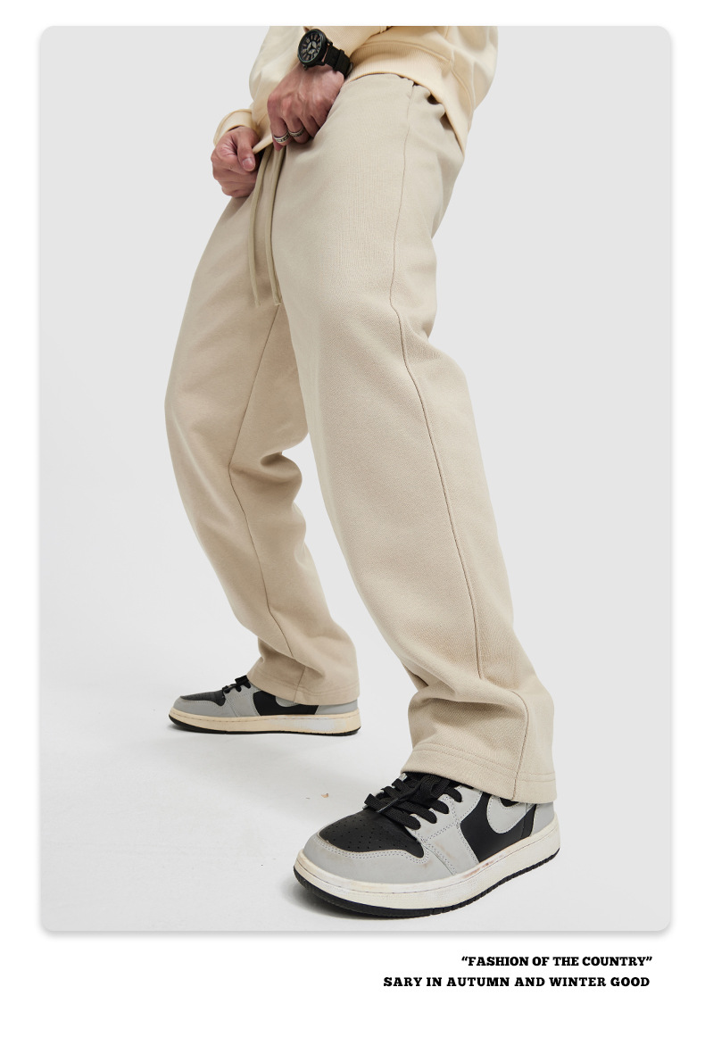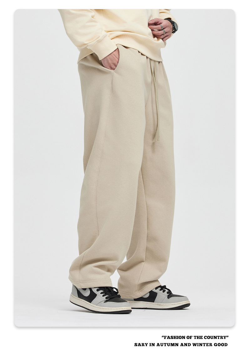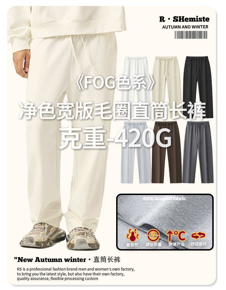 RS 남성복 | 크로스보더 420G 헤비웨이트 테리 와이드 레그 스웨트팬츠 클린핏 아메리칸 스트레이트 캐주얼 바지 남성용