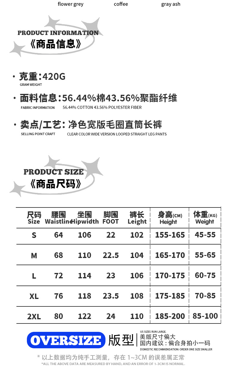RS 남성복 | 크로스보더 420G 헤비웨이트 테리 와이드 레그 스웨트팬츠 클린핏 아메리칸 스트레이트 캐주얼 바지 남성용스토어 가기