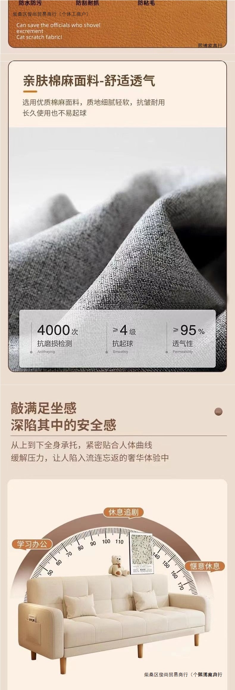 • 오염 방지 고양이 발톱 가죽 - 오렌지색과 미색, 방수 및 내마모성