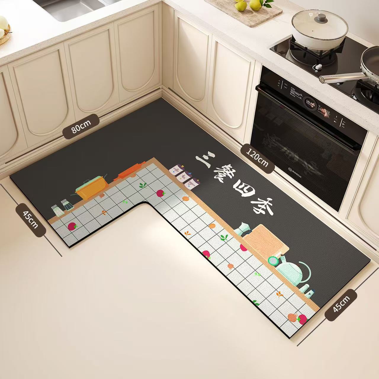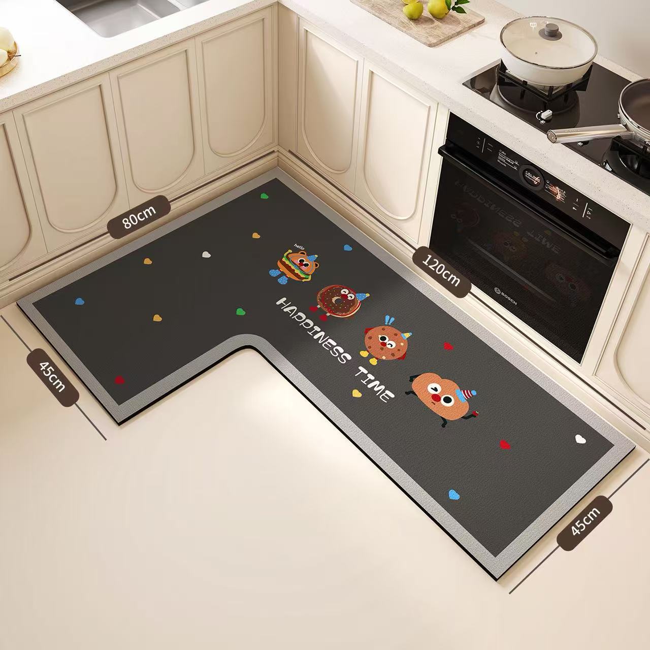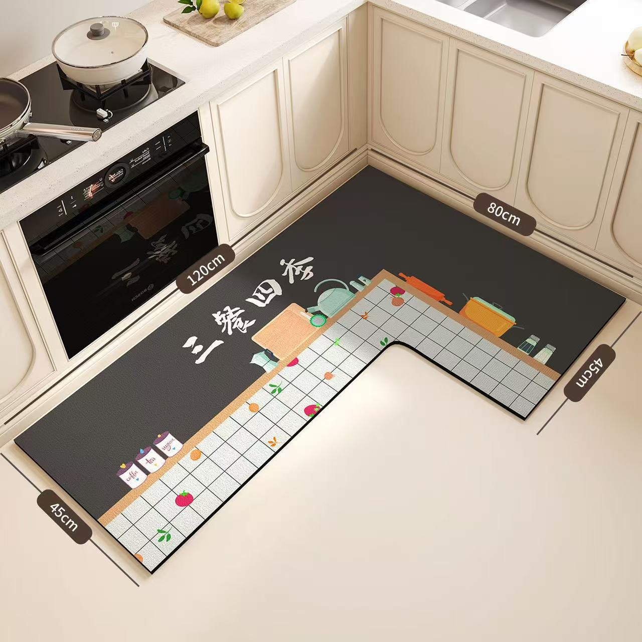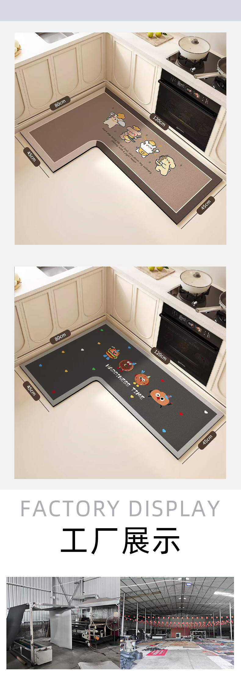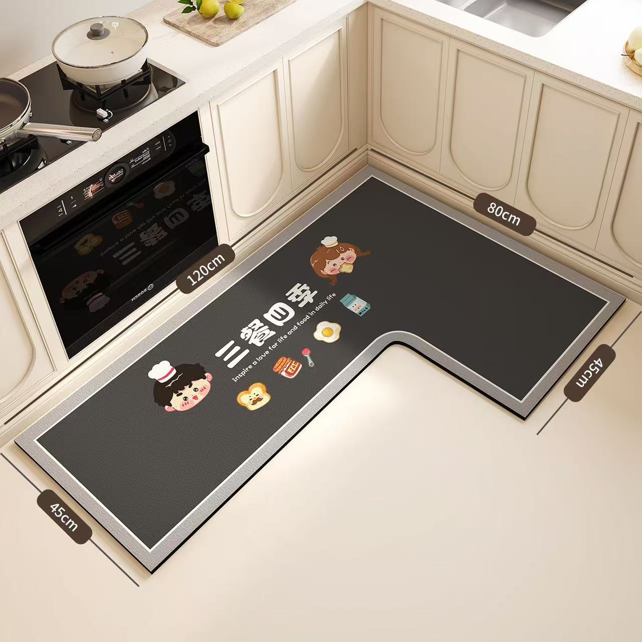 새로운 규조토 진흙 바닥 매트 L자형 주방 얼룩 방지 및 내마모성 바닥 매트 만화 주방 특수 방습 및 관리가 쉬운 카펫