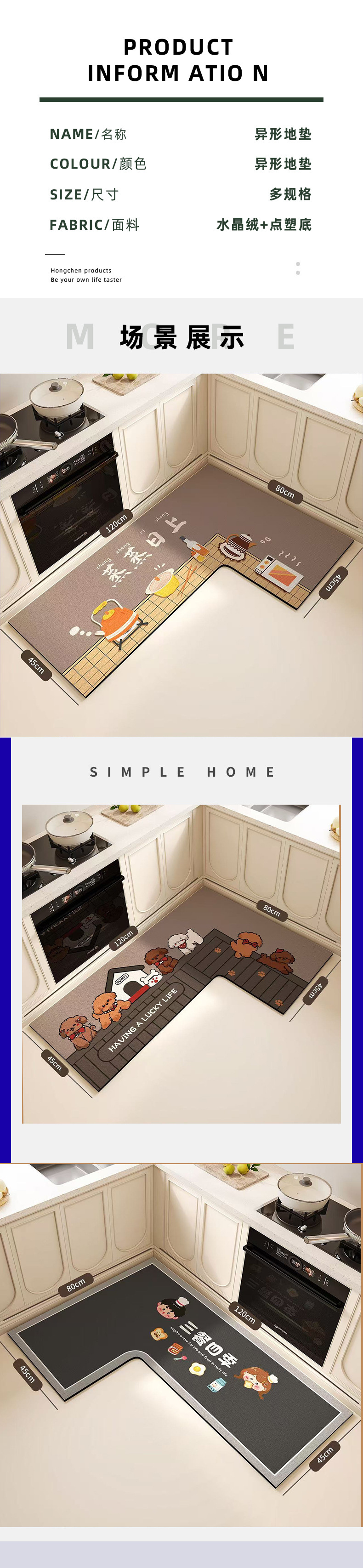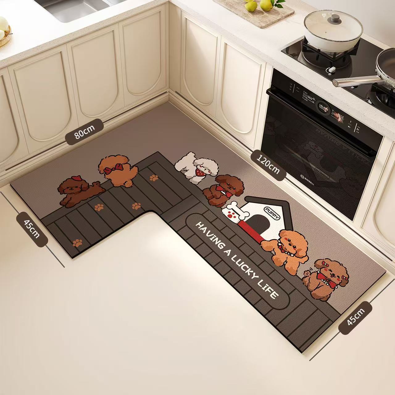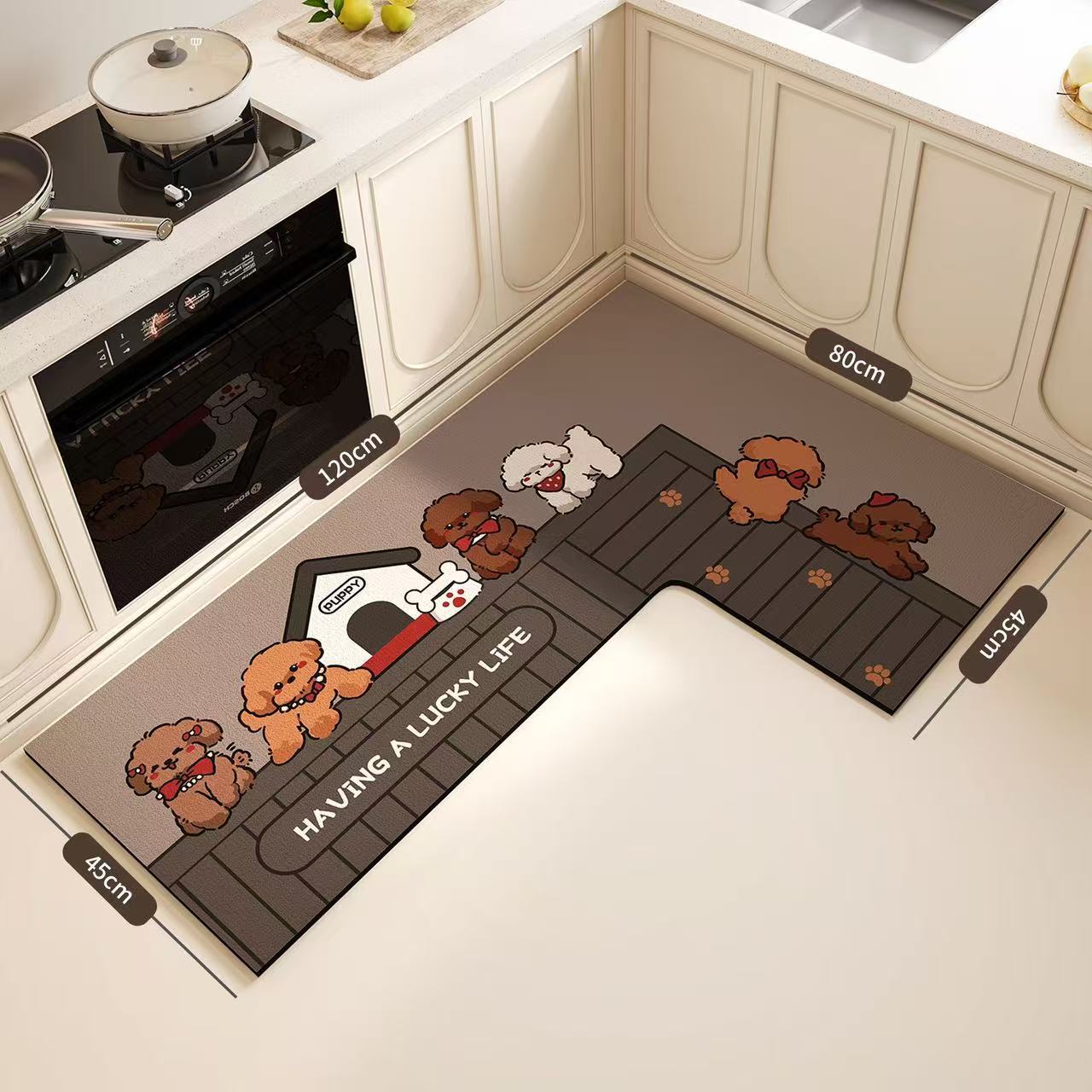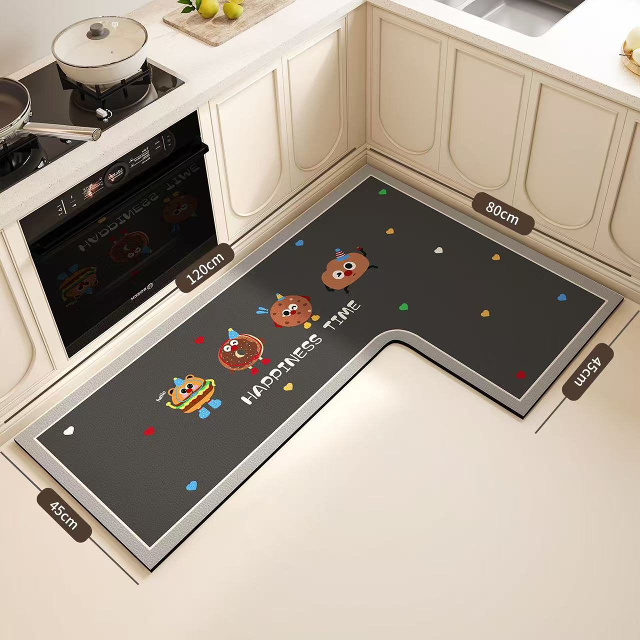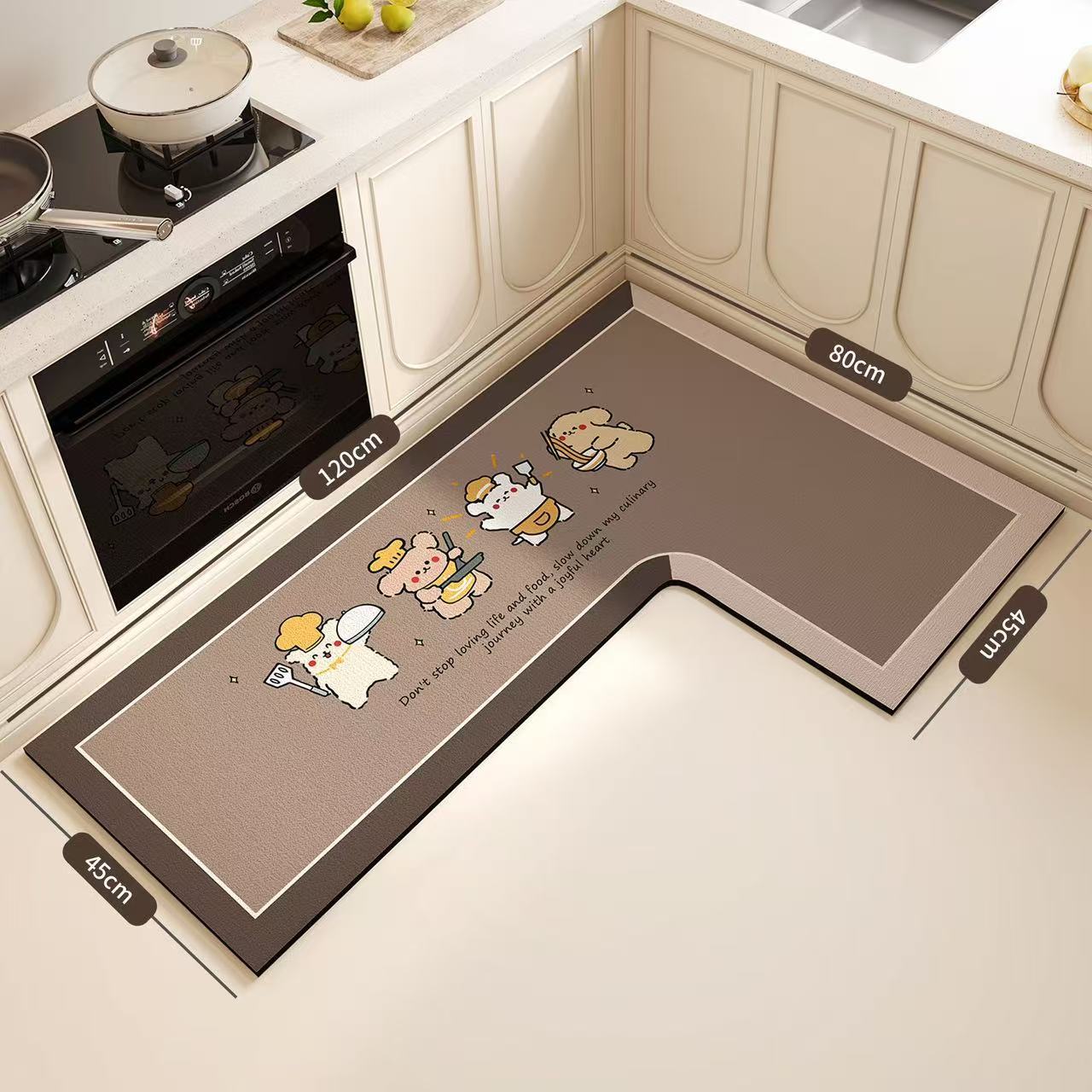 새로운 규조토 진흙 바닥 매트 L자형 주방 얼룩 방지 및 내마모성 바닥 매트 만화 주방 특수 방습 및 관리가 쉬운 카펫