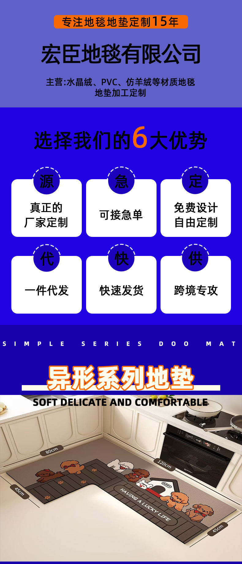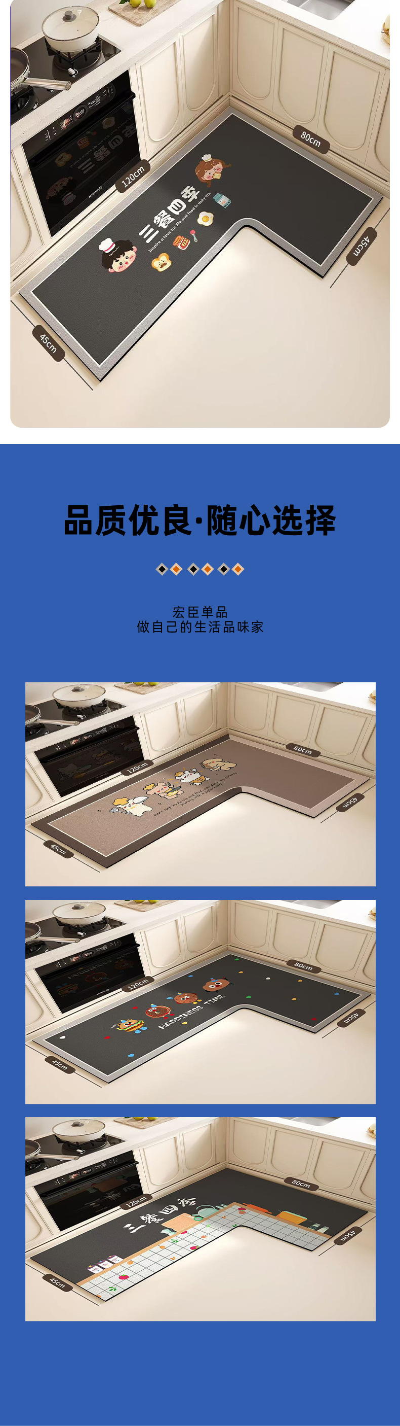 新款硅藻泥地垫L形厨房耐脏耐磨脚垫卡通厨房专用防潮易打理地毯